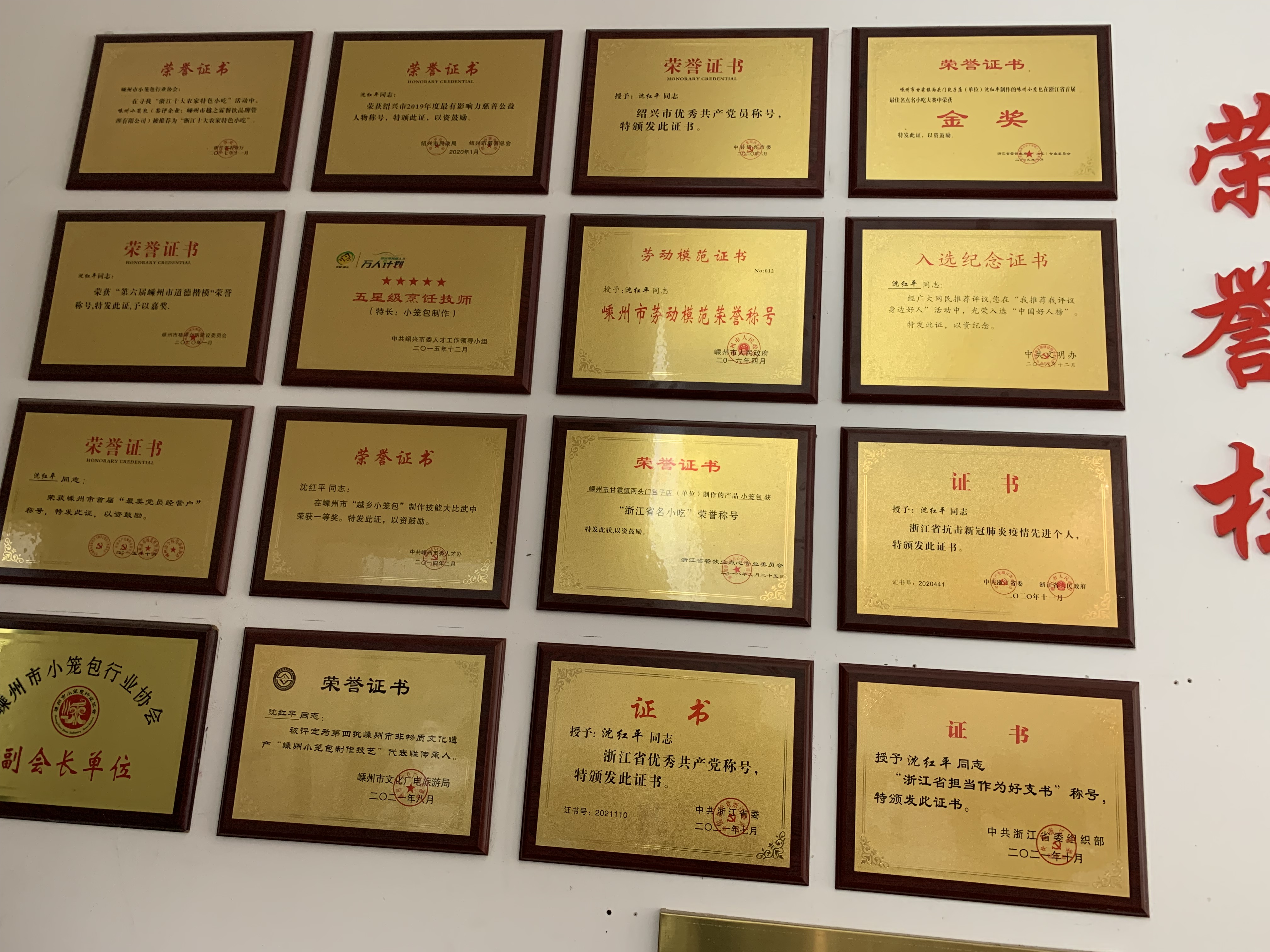 正是由于对小笼包的精益求精地改良,让沈红平的小笼包生意逐渐火起来。在2014年2月,在嵊州市小笼包制作技艺比赛中,沈红平参评的小笼包荣获一等奖。自此她名声鹊起,2015年以来先后荣获绍兴市五星级烹饪技师(特长:小笼包制作)、嵊州市劳动模范、浙江名小吃、嵊州市非物质文化遗产“嵊州小笼包制作技艺“代表性传承人、浙江省首届“最佳名点名小吃金奖”、“浙江十大农家特色小吃”等众多专业领域荣誉。
