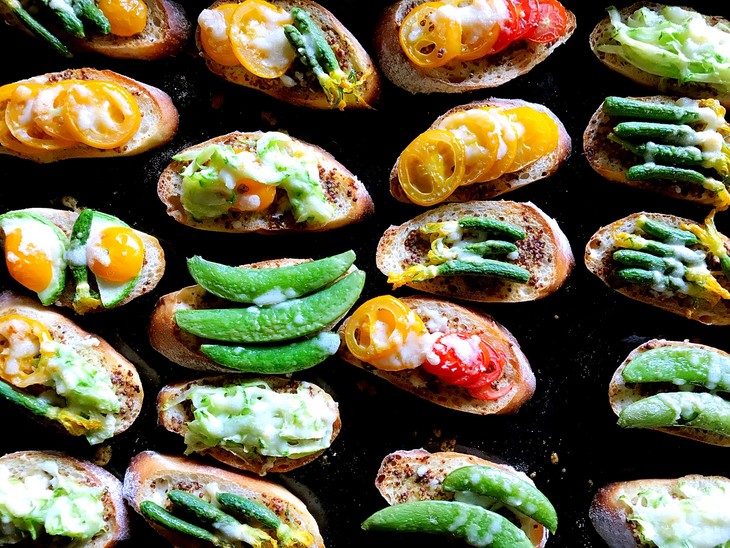 在一块看似普通的面包上,你想要的无素+当季的蔬果,便变成这样多彩而有食欲的甜点。
