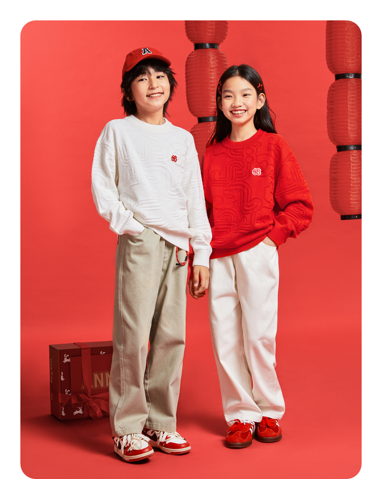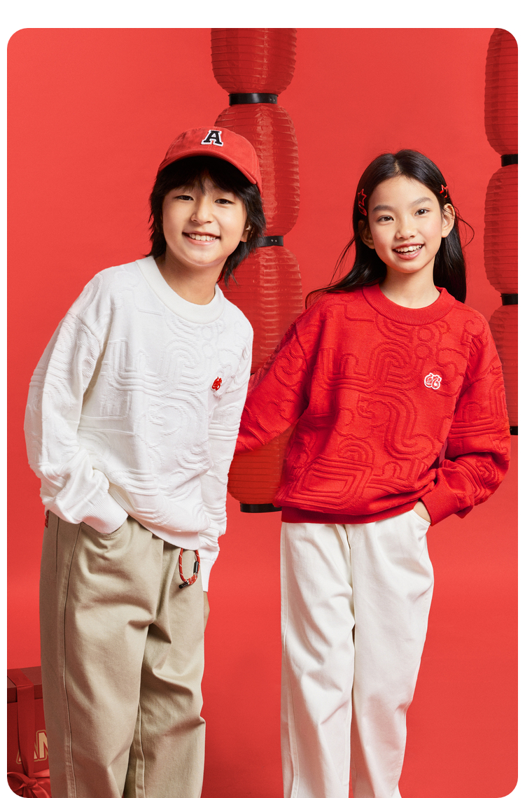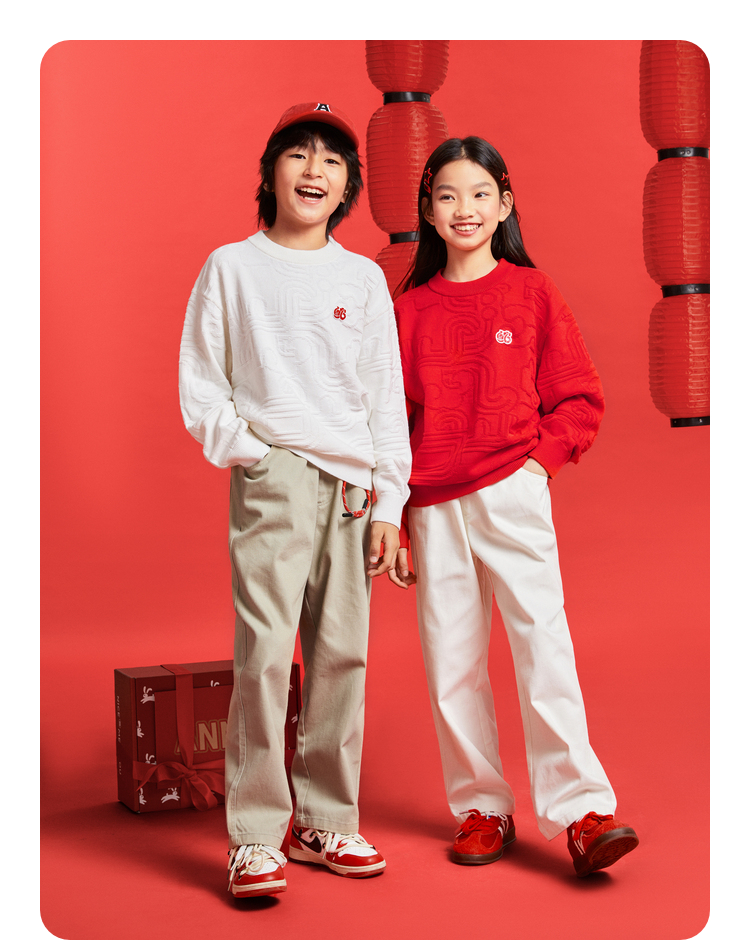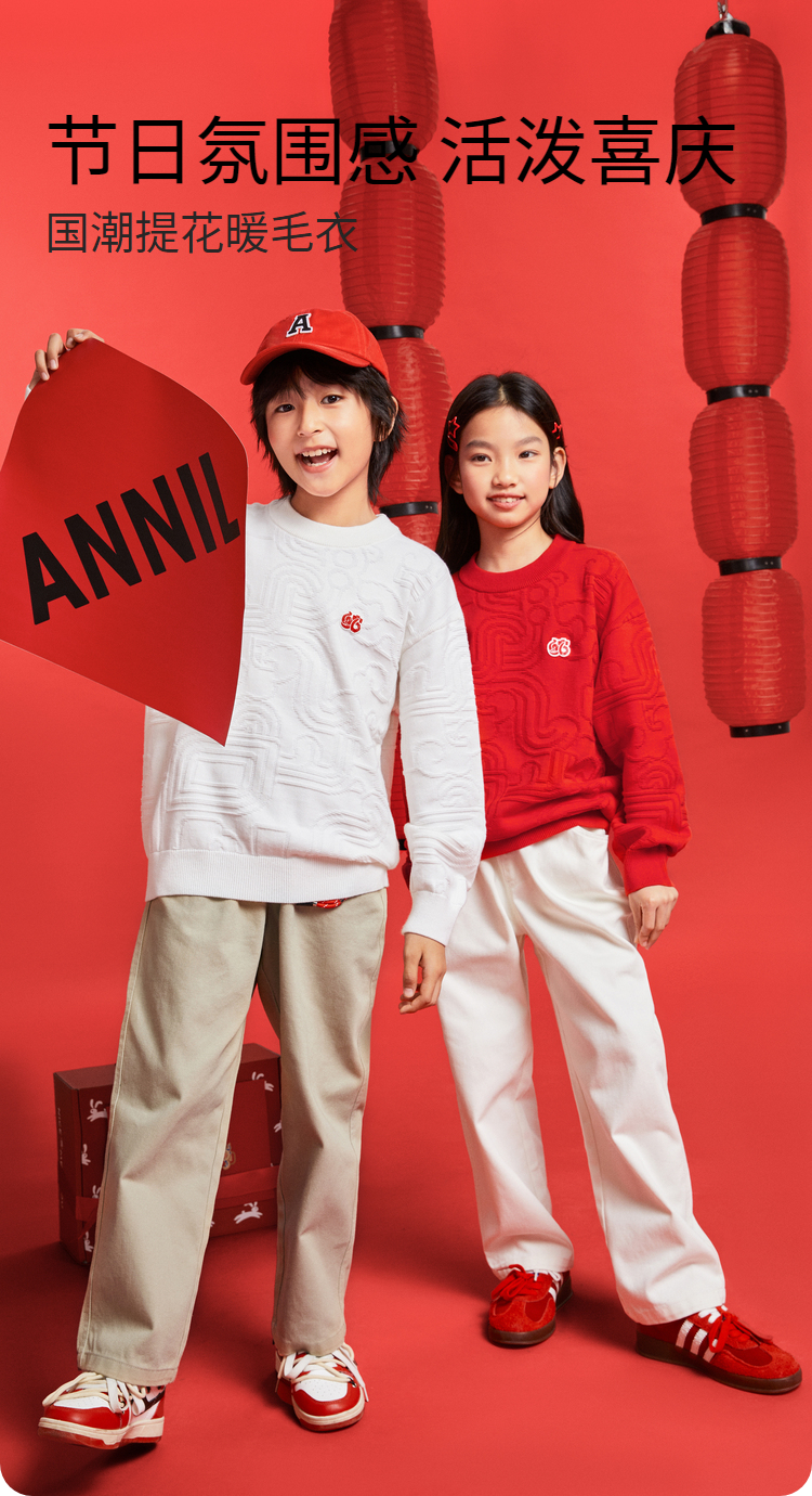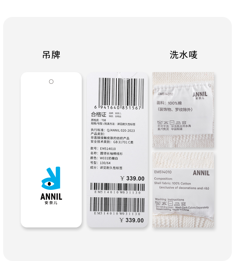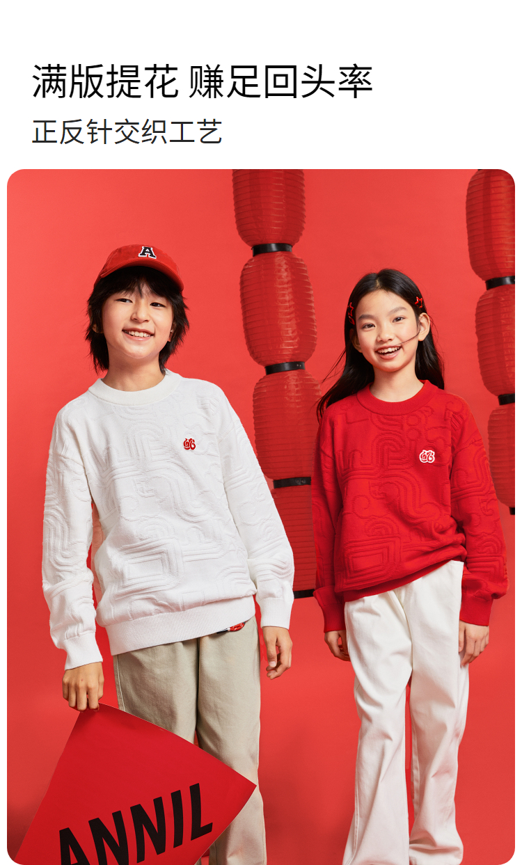 男女童圆领长袖棉线衫春季新款安奈儿童装EM514010