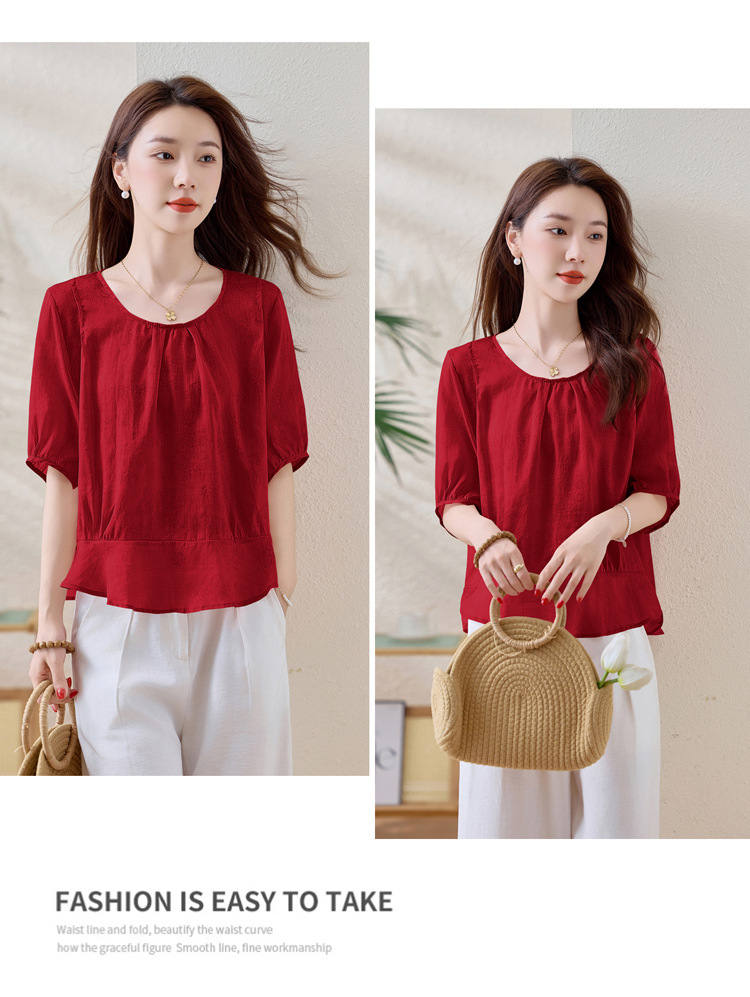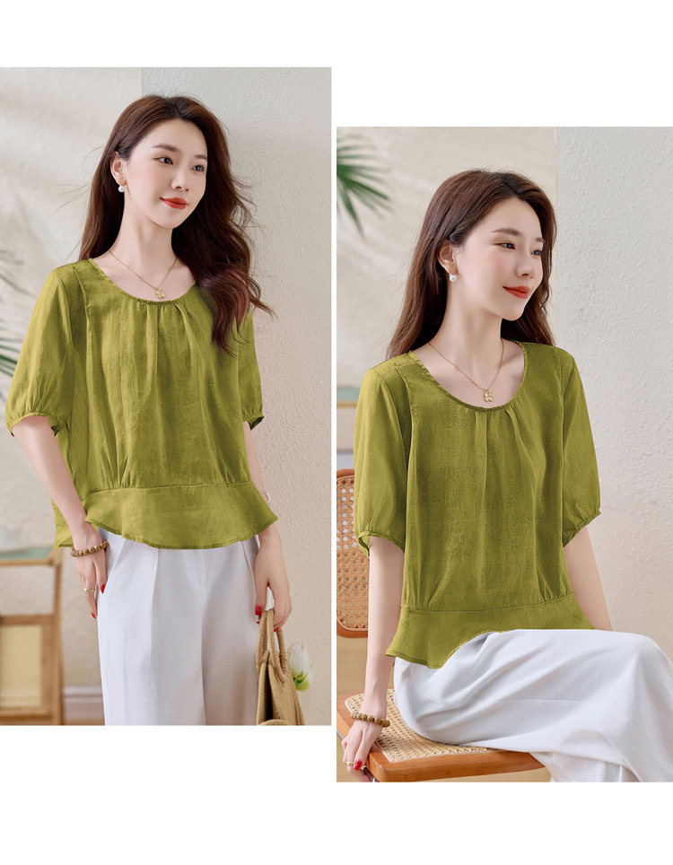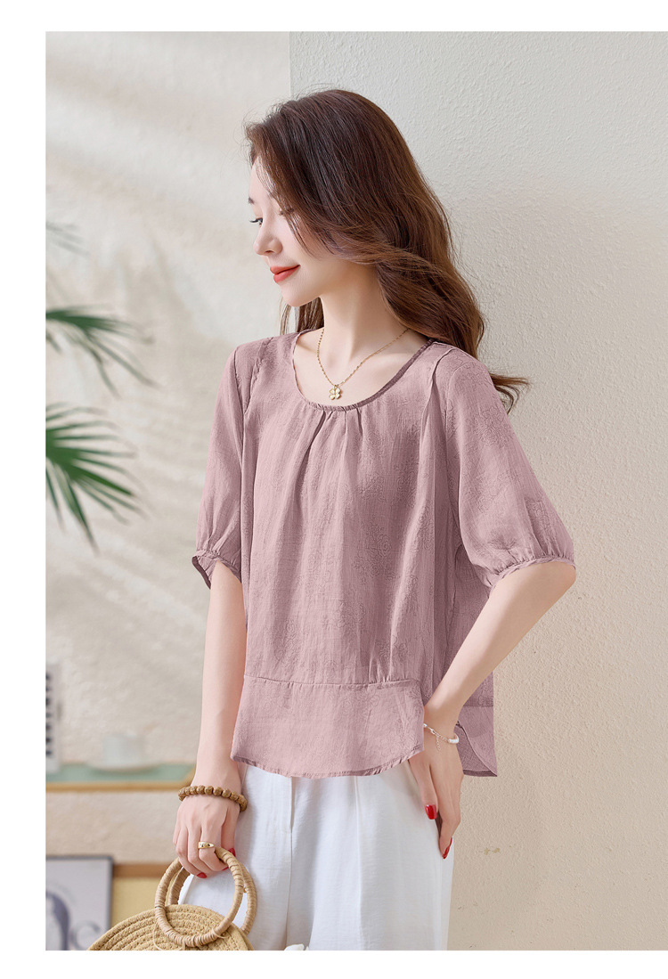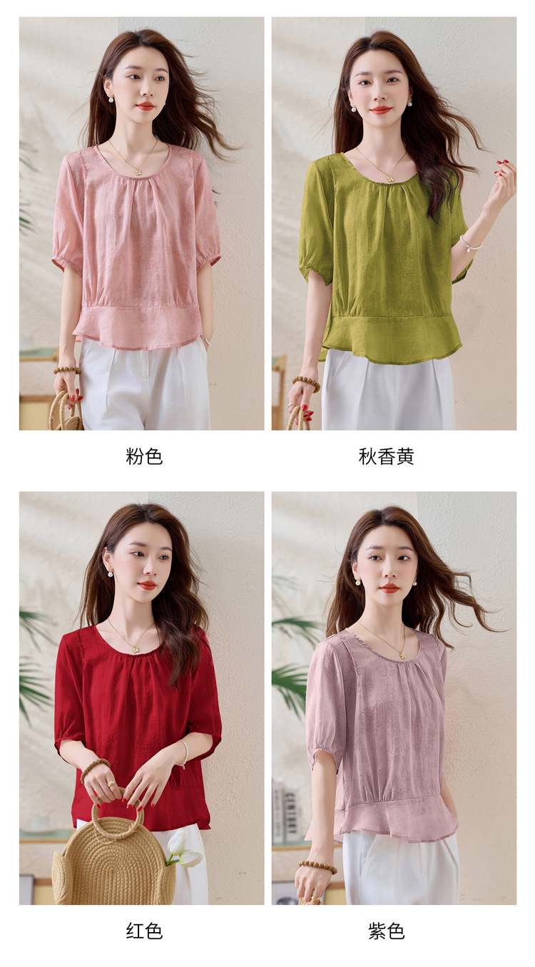 苎麻宽松薄款小衫,时尚气质棉麻上衣潮HR-YUMO8950