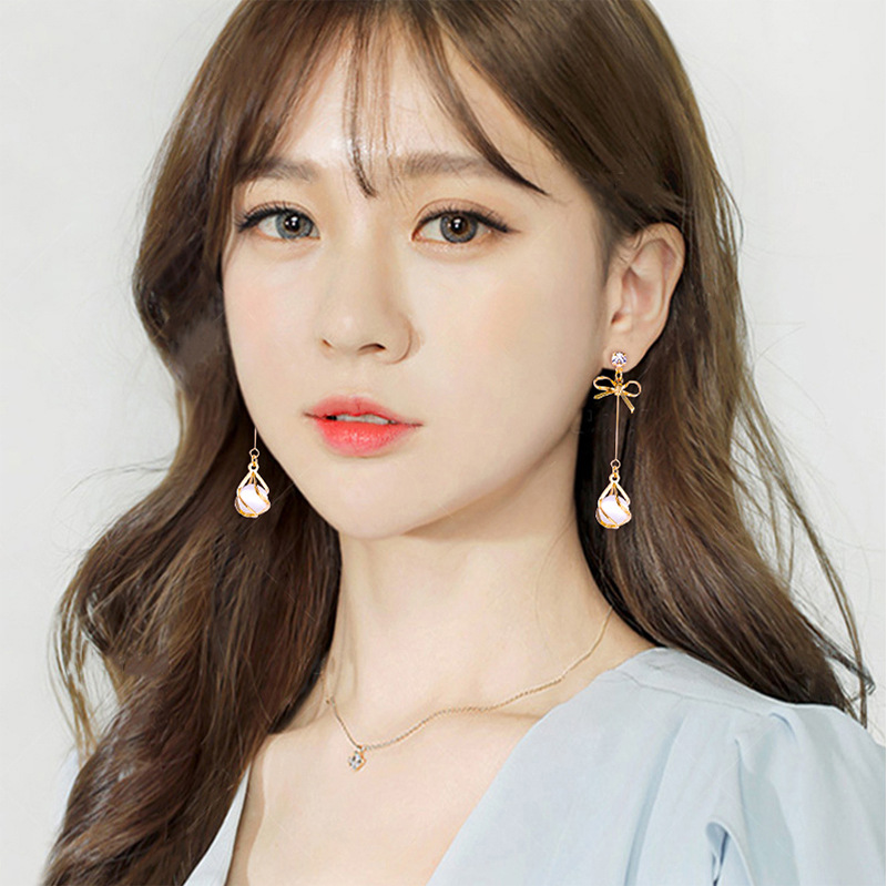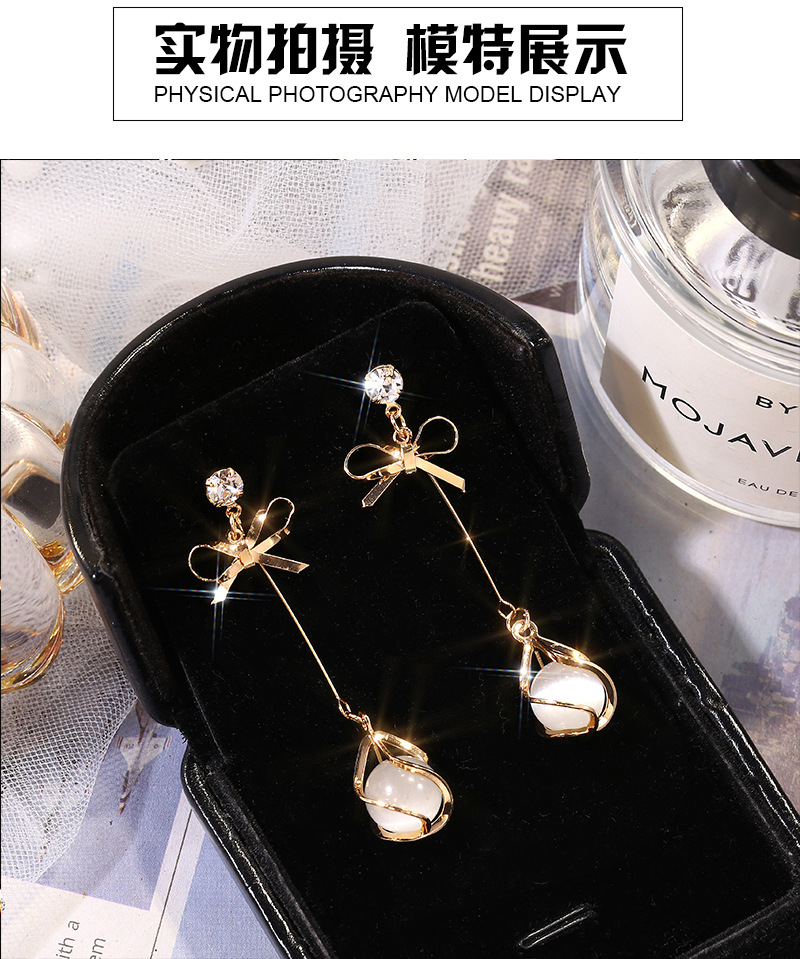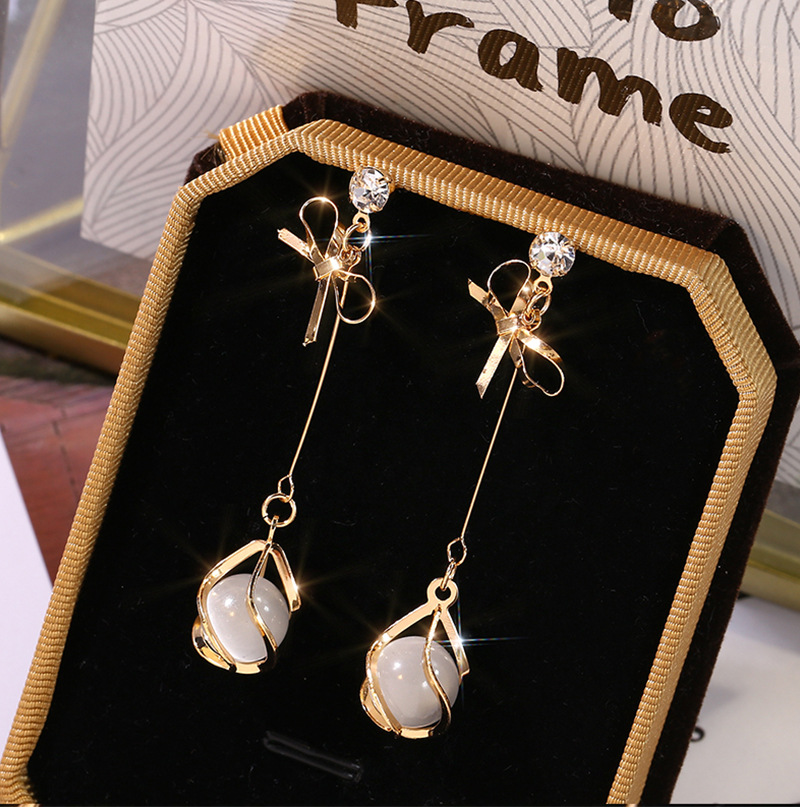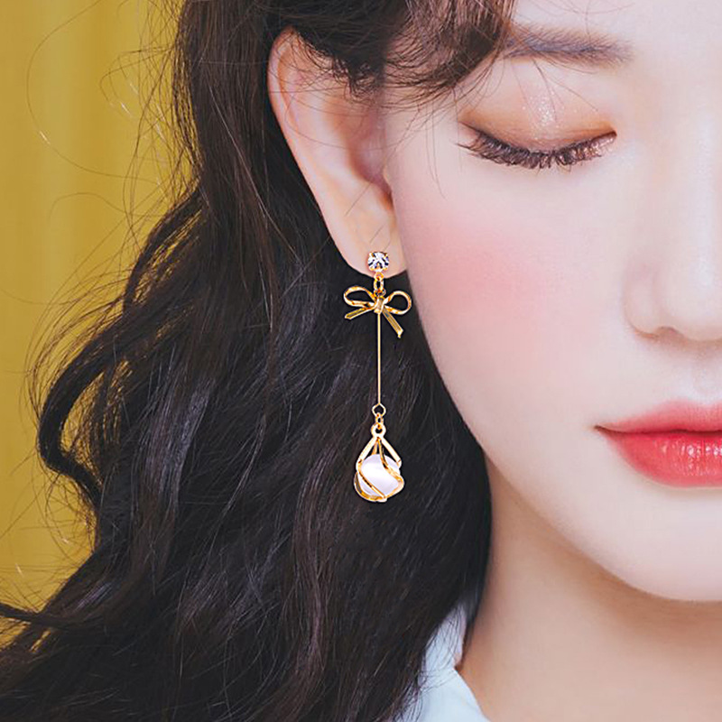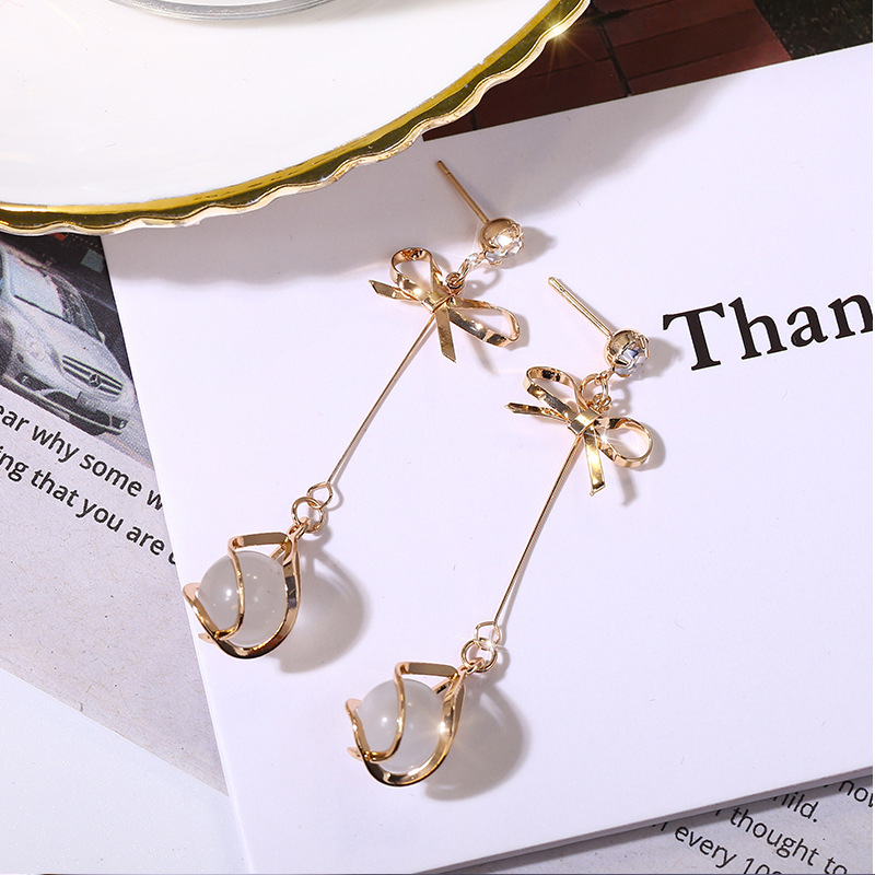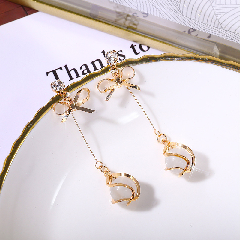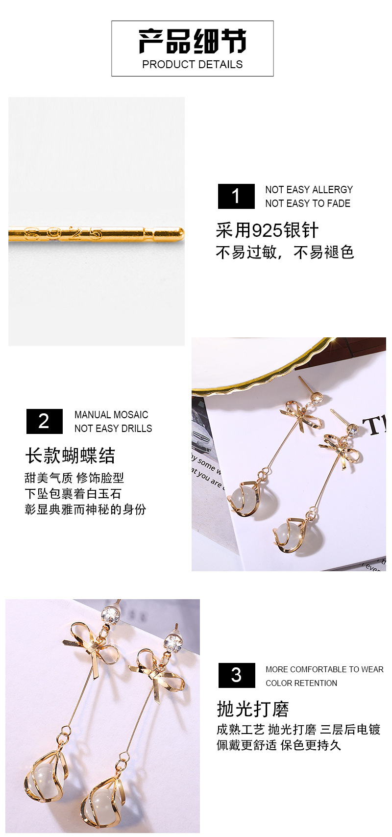 HJ-E736简约个性韩国百搭长款气质猫眼石时尚蝴蝶结镶钻耳坠 TZW