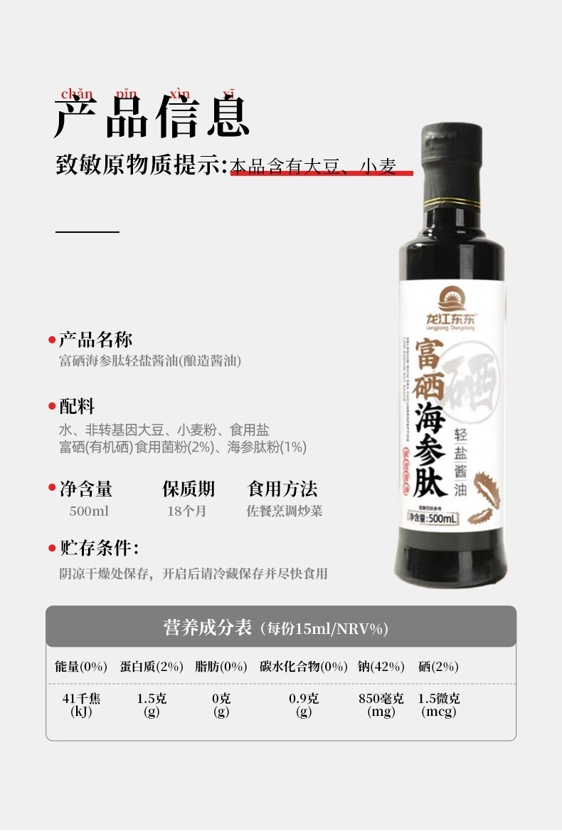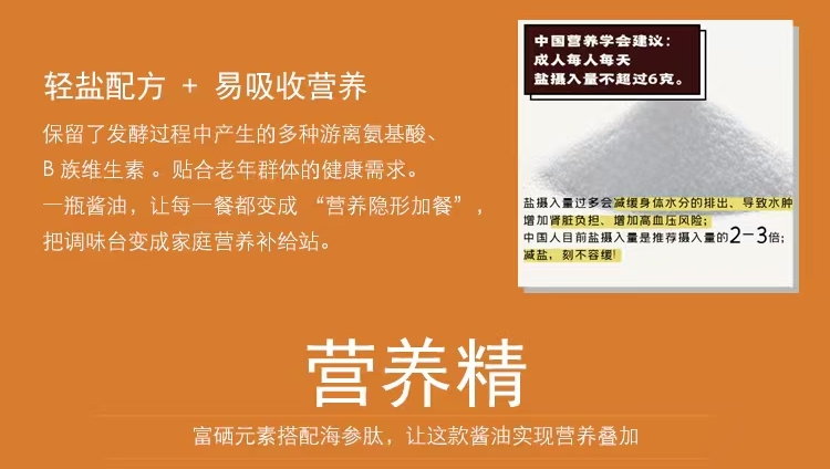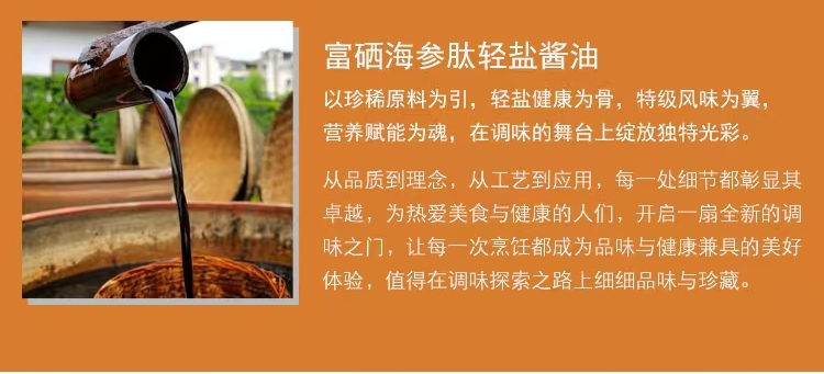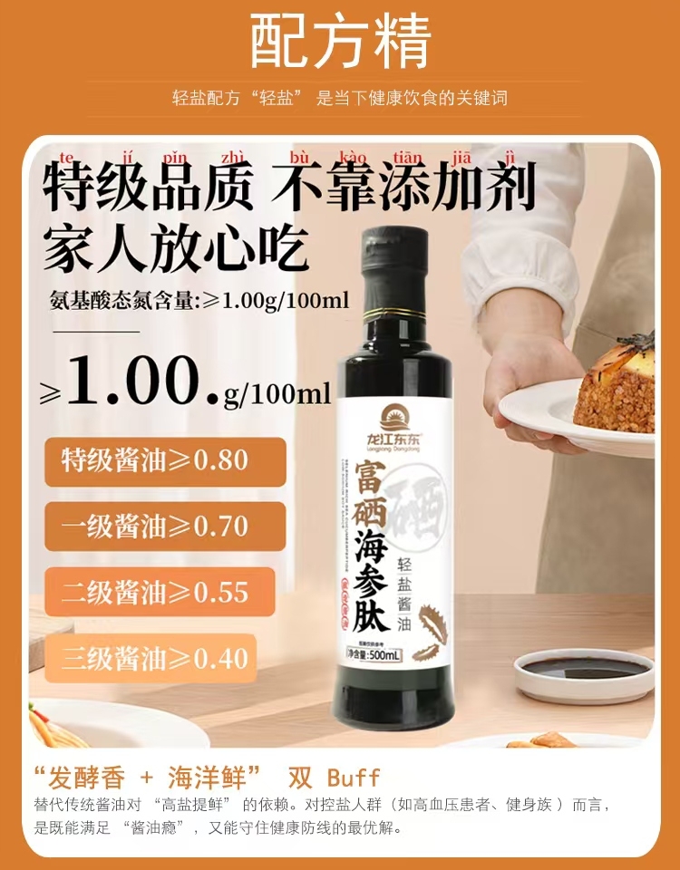 【龙江东东 富硒海参肽轻盐酱油】特级酱油 传统酿造 海参肽×富硒 高盐稀态轻盐配方 自然发酵 0化学添加 炒菜/凉拌/蘸料通用
