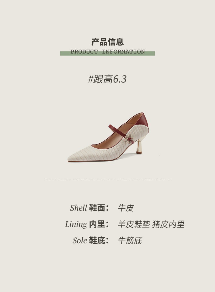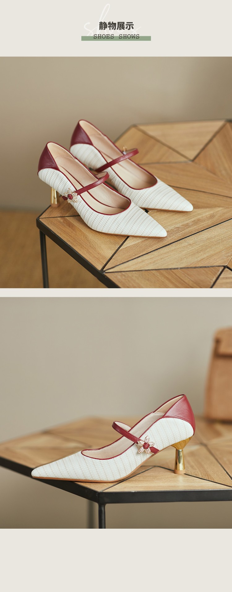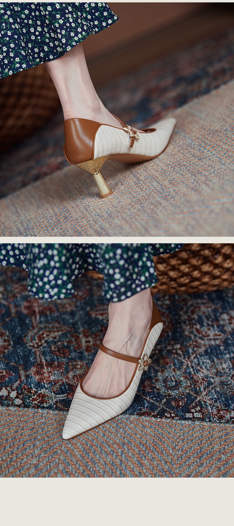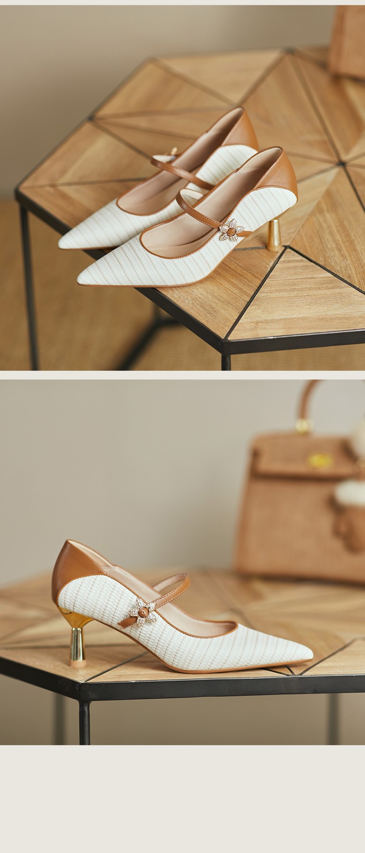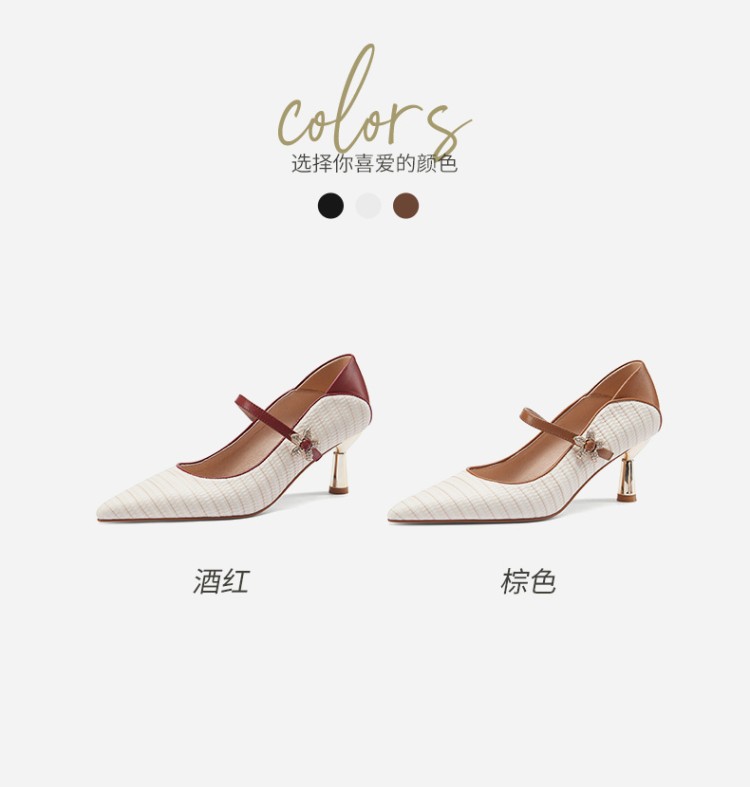 【预售5天】春季新款气质拼色尖头高跟鞋法式玛丽珍女鞋浅口细跟单鞋HBP&1387