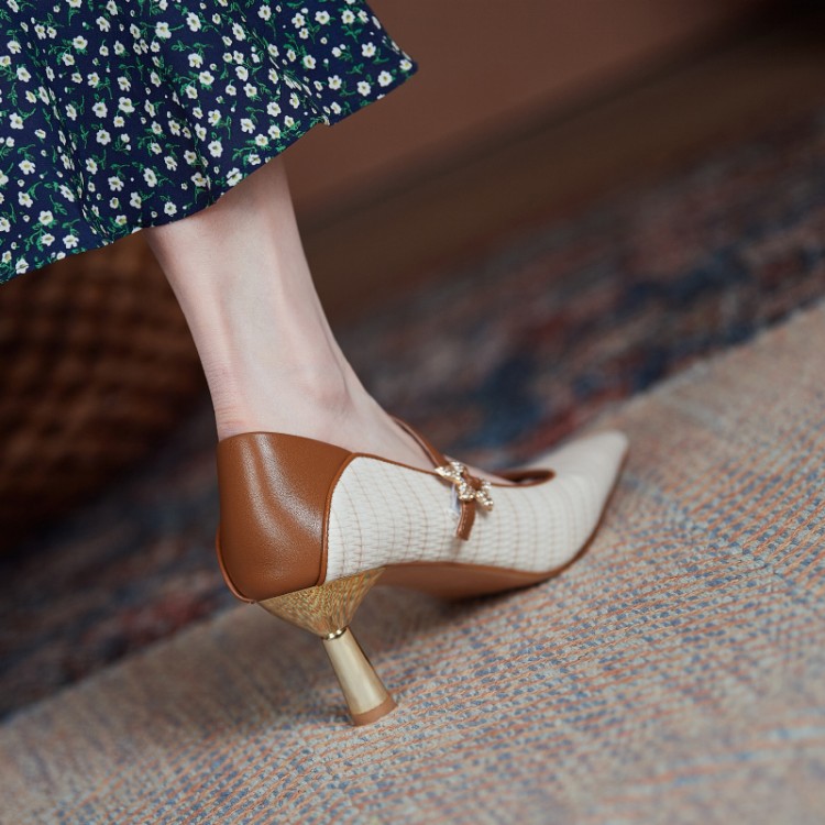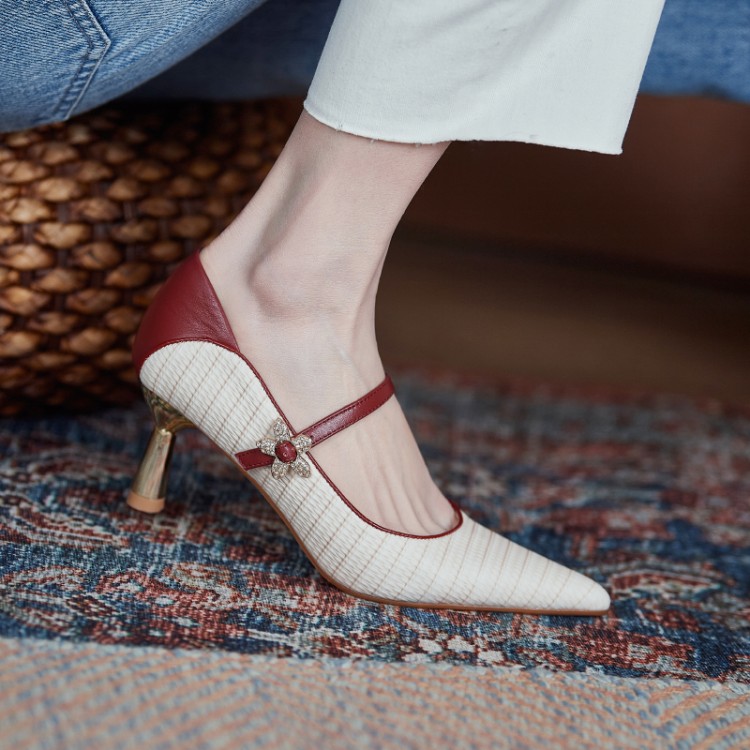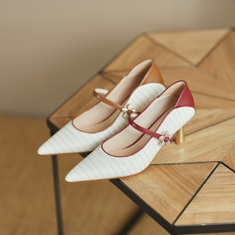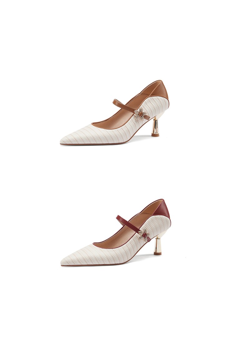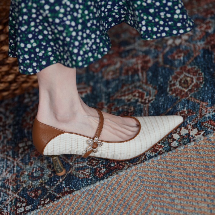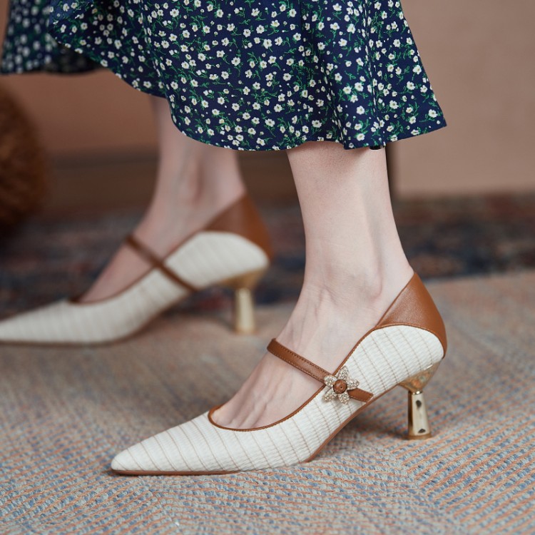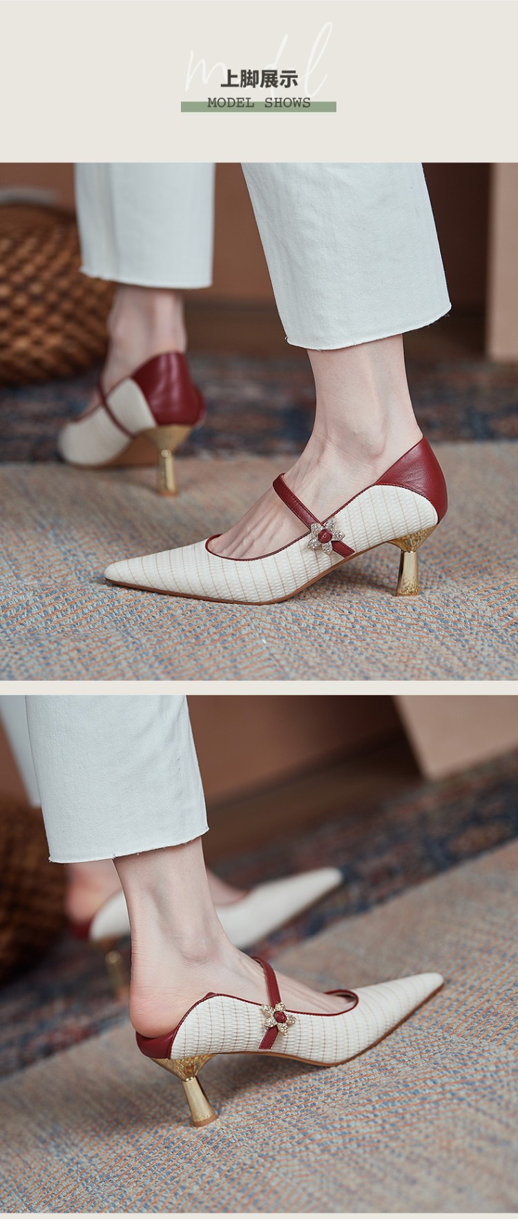 【预售5天】春季新款气质拼色尖头高跟鞋法式玛丽珍女鞋浅口细跟单鞋HBP&1387