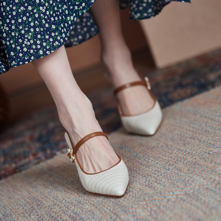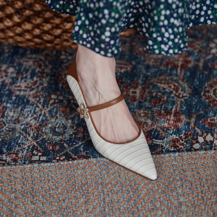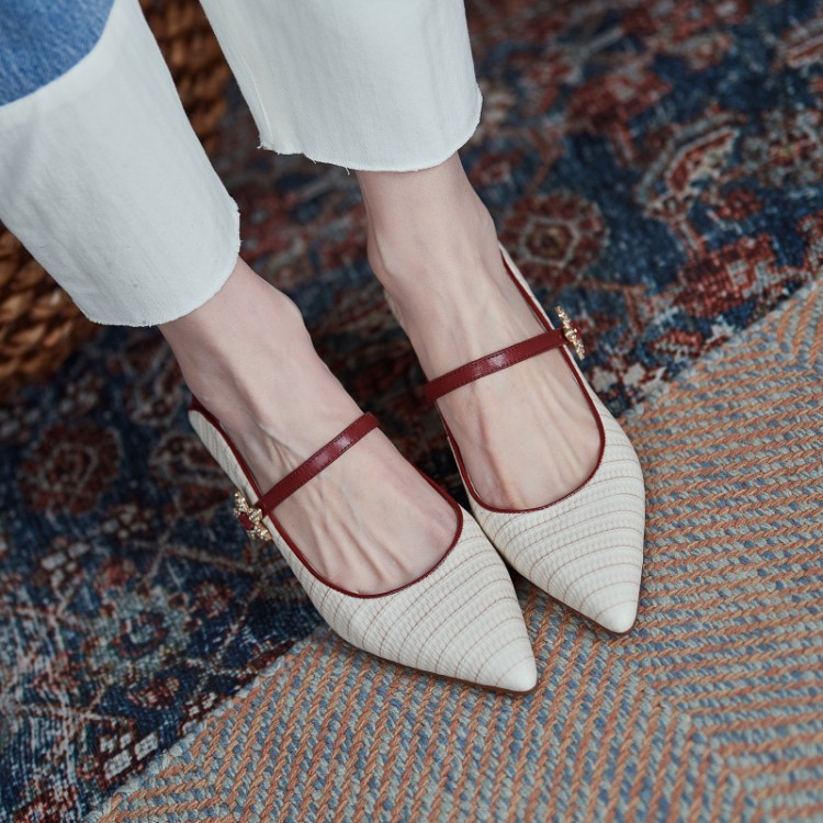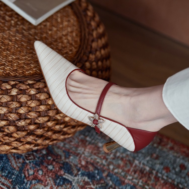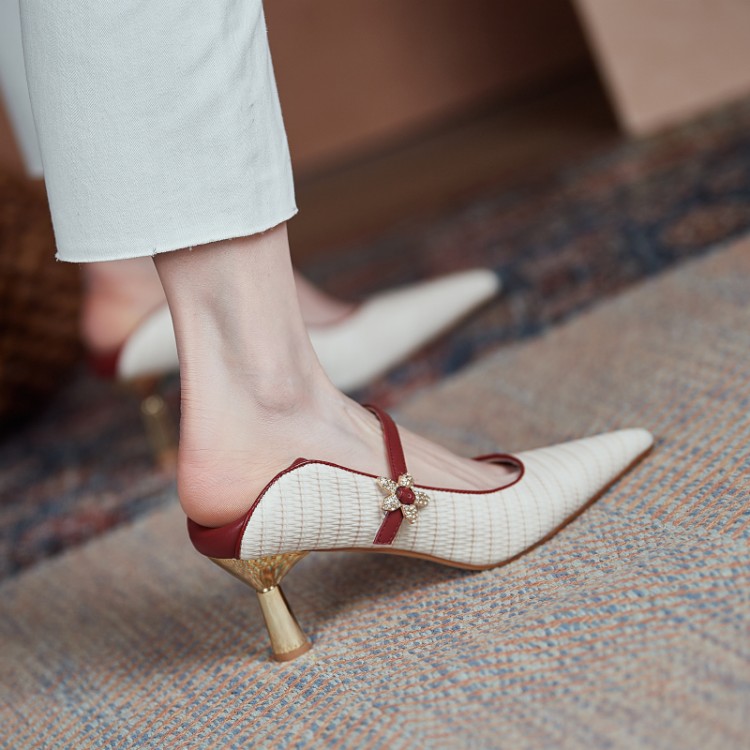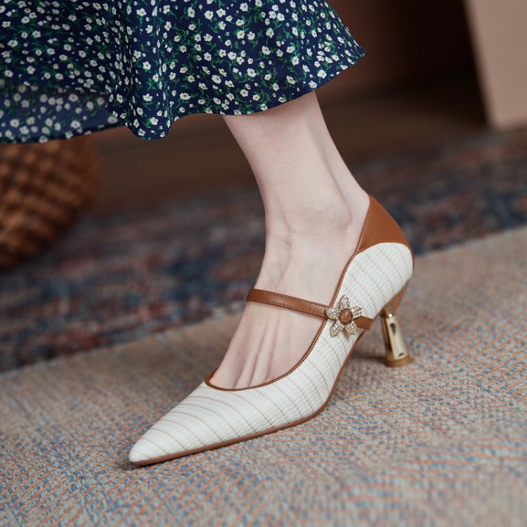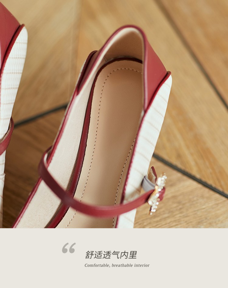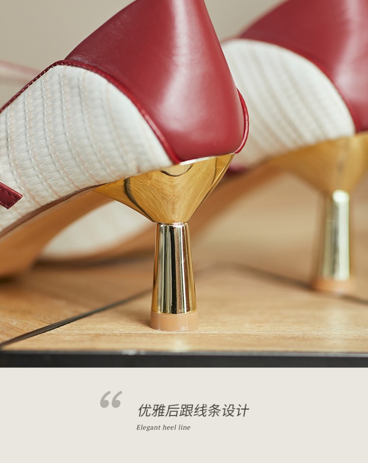 【预售5天】春季新款气质拼色尖头高跟鞋法式玛丽珍女鞋浅口细跟单鞋HBP&1387