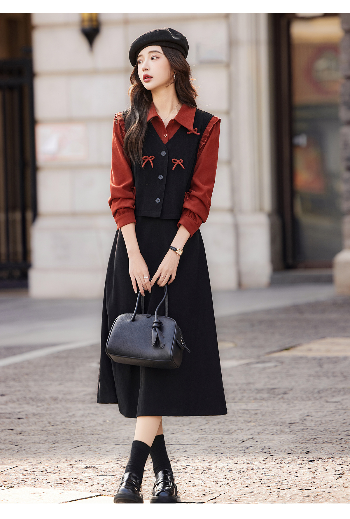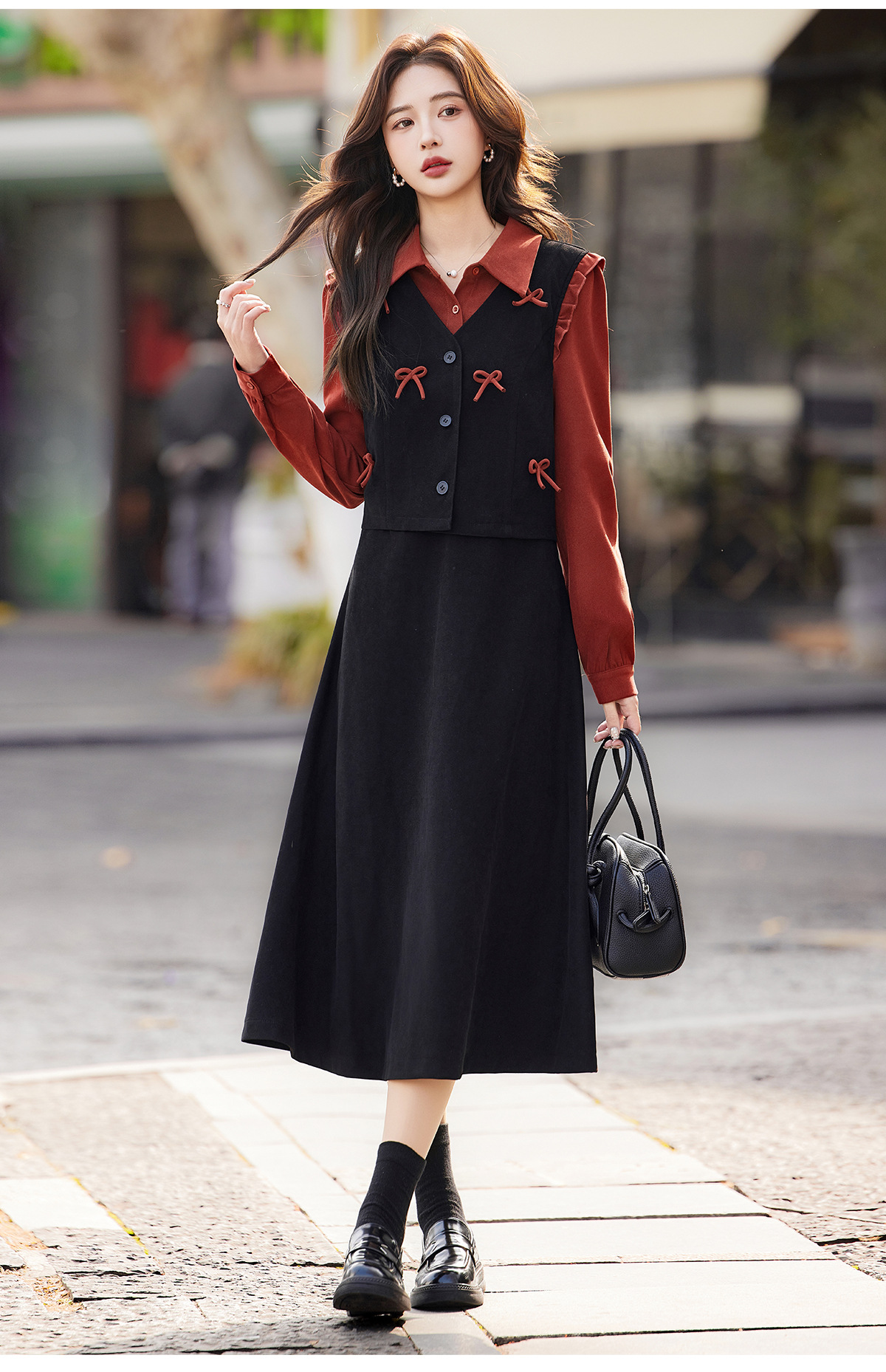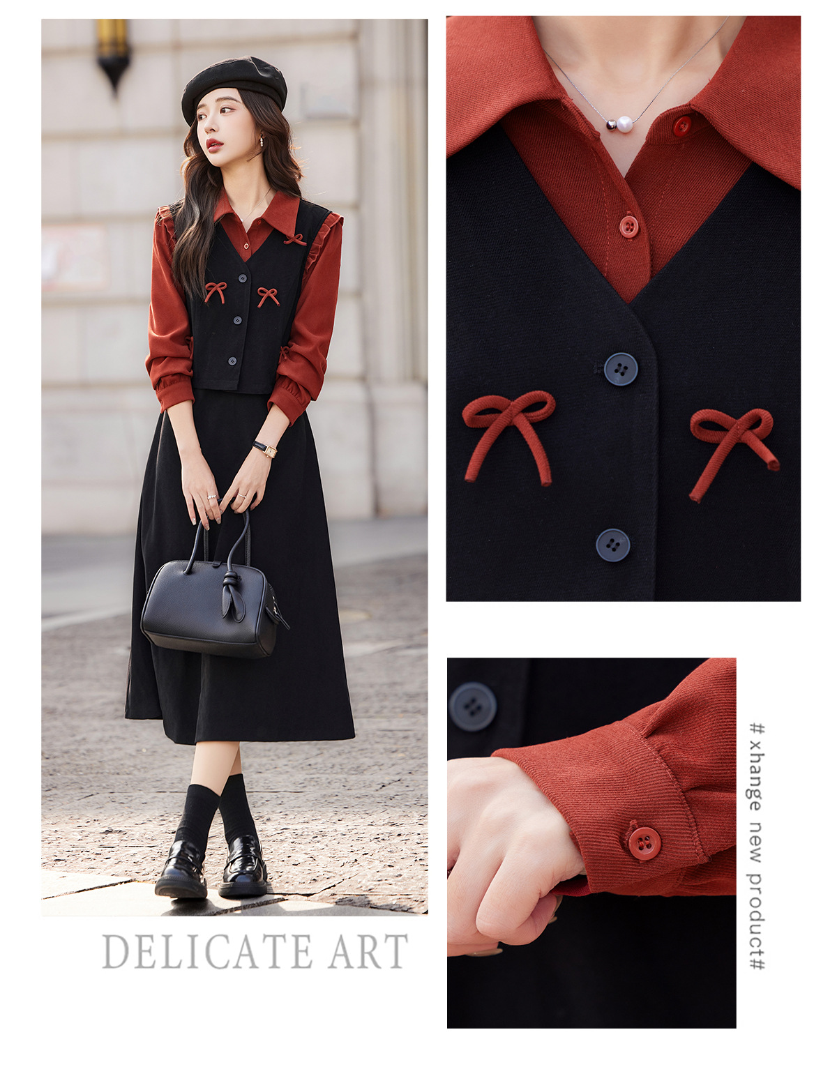 早春新款法式穿搭一整套连衣裙学院风气质减龄假两件裙子ZLF27112