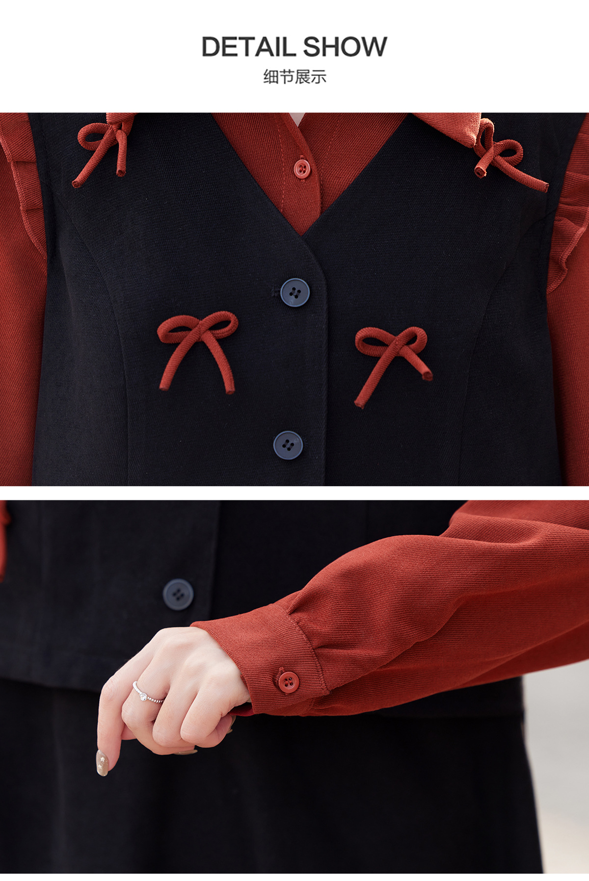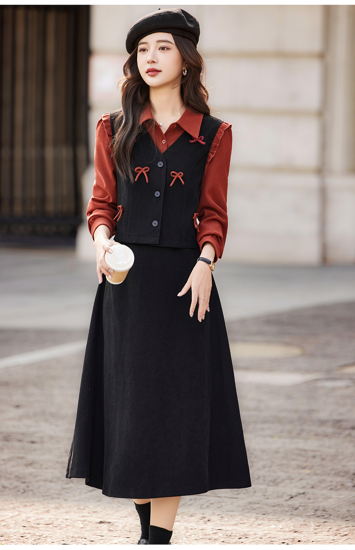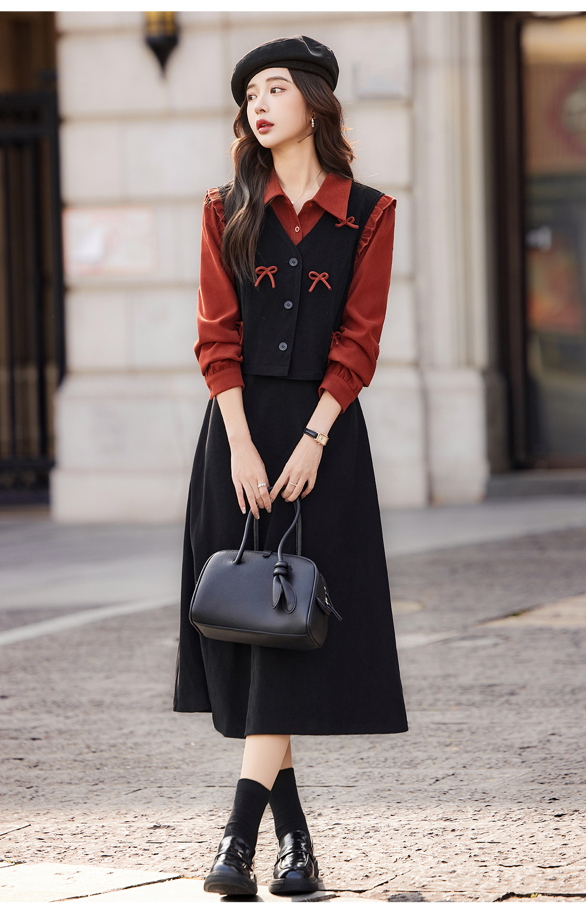 早春新款法式穿搭一整套连衣裙学院风气质减龄假两件裙子ZLF27112