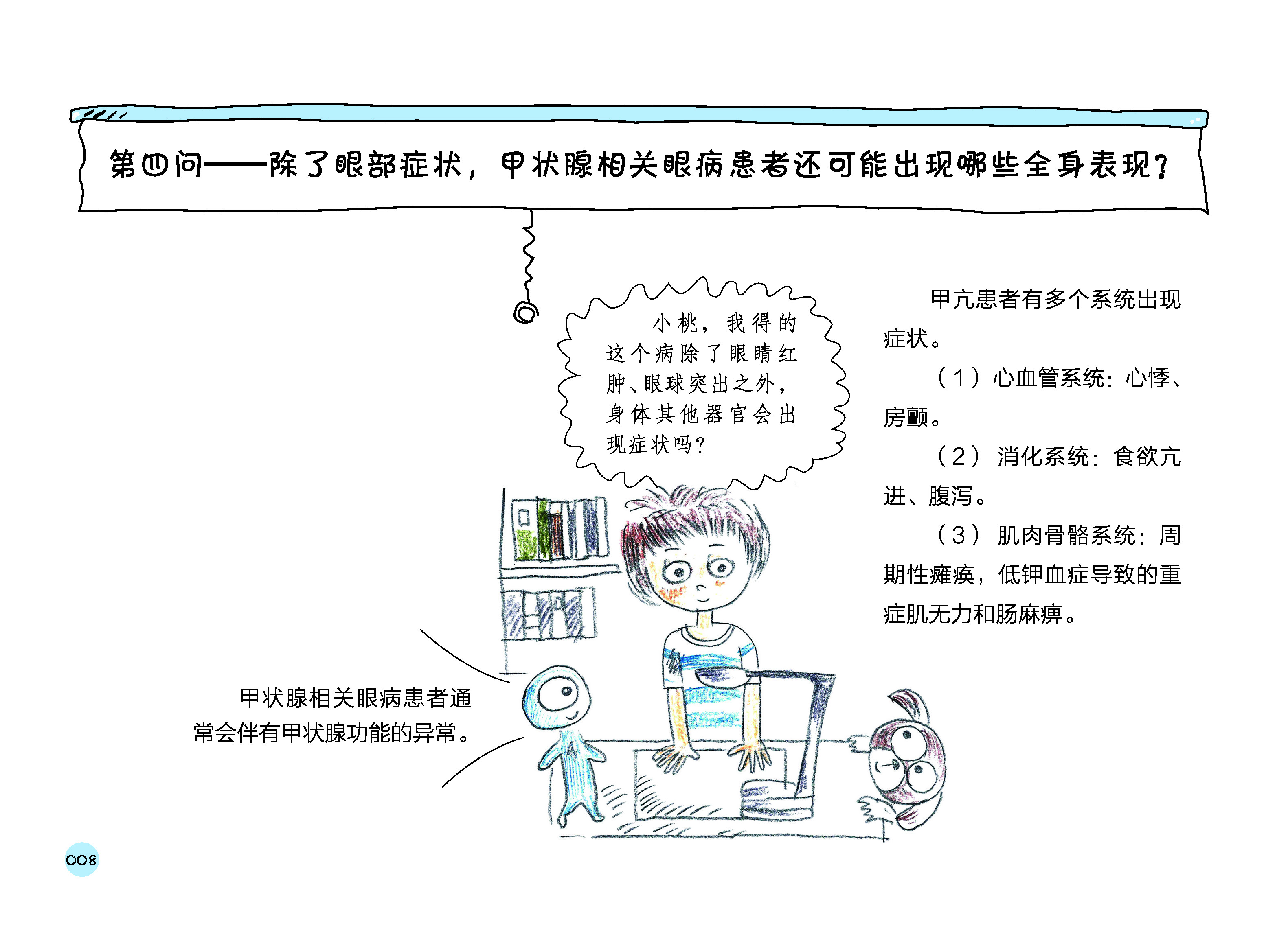 本书是一本科普类漫画读物,以100个问答展开对甲状腺相关眼病相关专业知识的讲解。文字通俗易懂,图文并茂,适合各年龄段人群阅读。