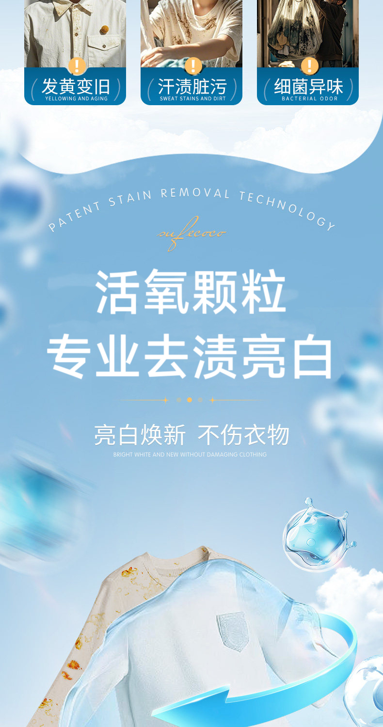 【POZTL 活氧颗粒去渍爆炸盐】550G一瓶,深入衣物纤维,分解顽固污渍,去黄增白,养护衣物~