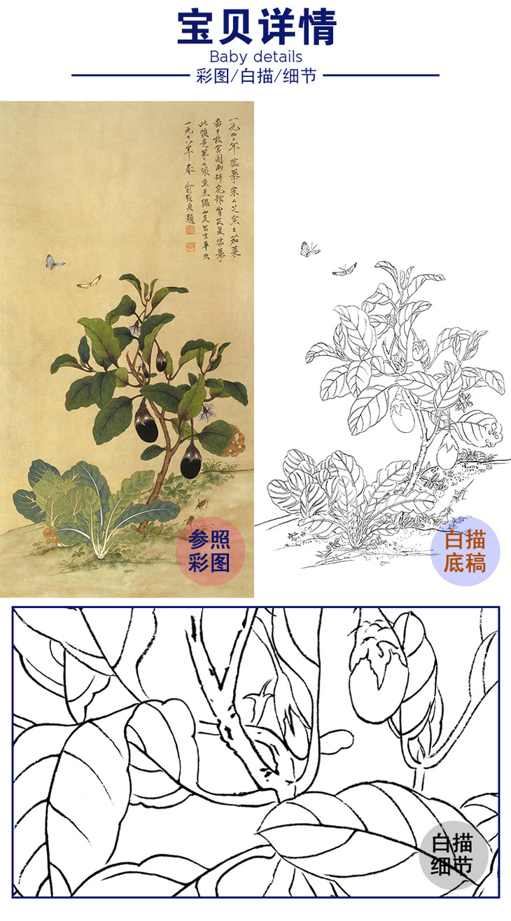 俞致贞工笔花鸟-茄菜图-JV06