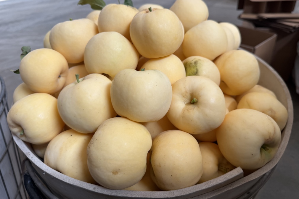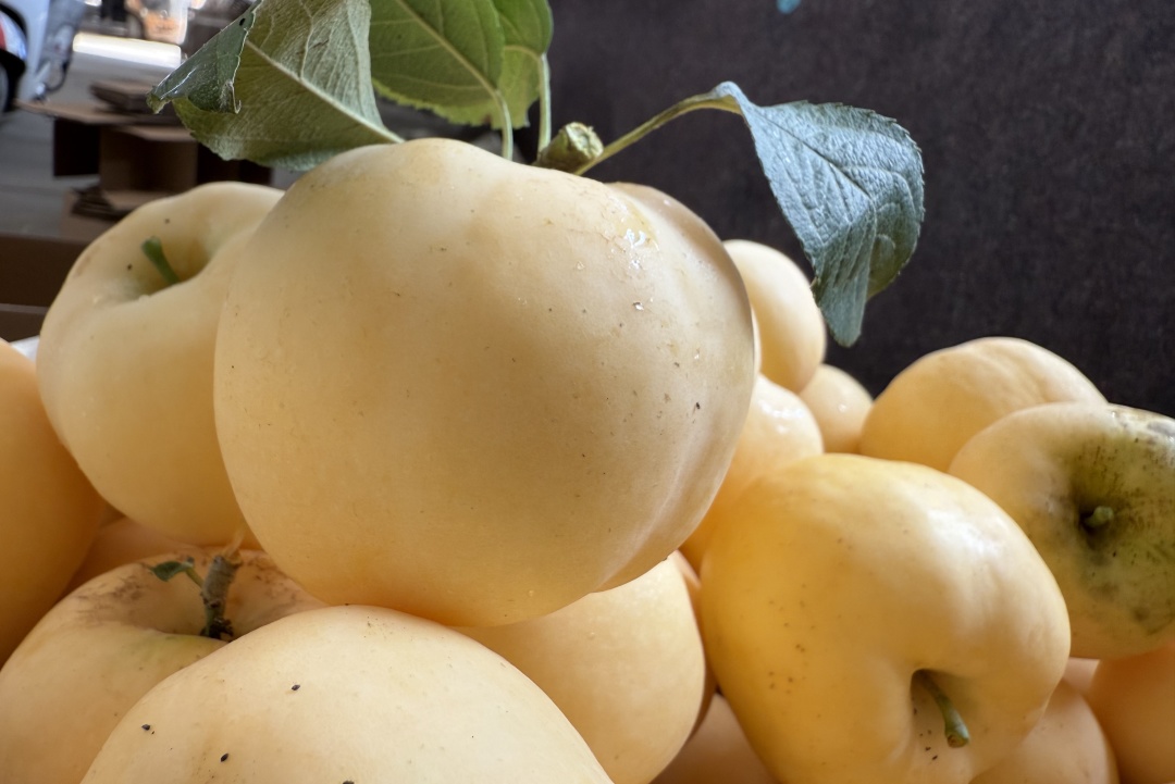 秦玉苹果是李立君这些年试种的新品种之一,产量很少,今年只够大家尝尝鲜。秦玉苹果香气令人愉悦,质地细脆微粉,无渣感,汁水丰富且甘甜,吃完有回甘。