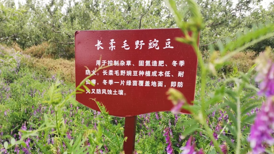 种植鼠茅草,野豌豆充当绿肥并控制杂草,无法控制杂草每年3~4次的割草将其覆盖在树根部,补充有机质,从而使得土壤疏松、团粒结构明显。