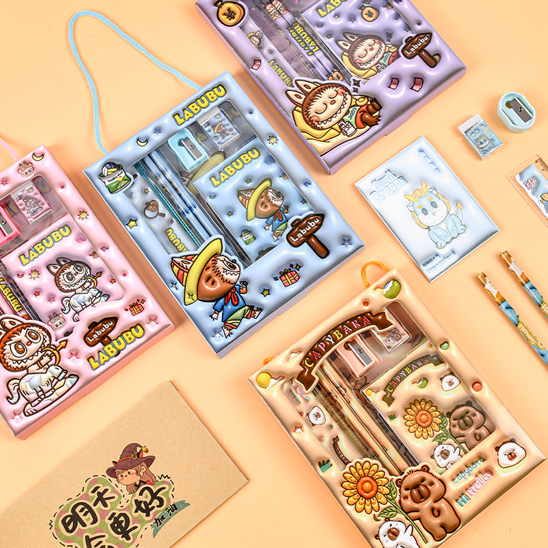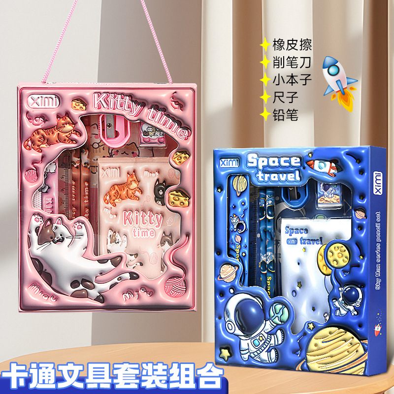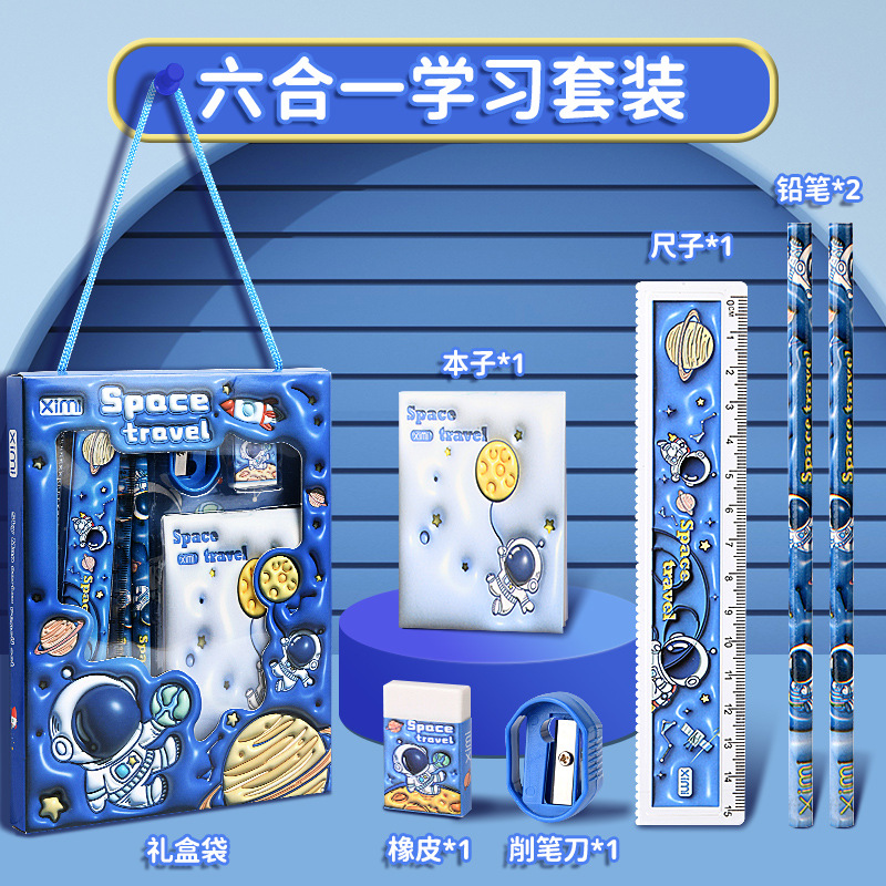儿童节礼物!【儿童文具套装,卡通设计超萌】儿童文具套装小礼物 卡通文具六件套 开学季学生铅笔套装-QQ
