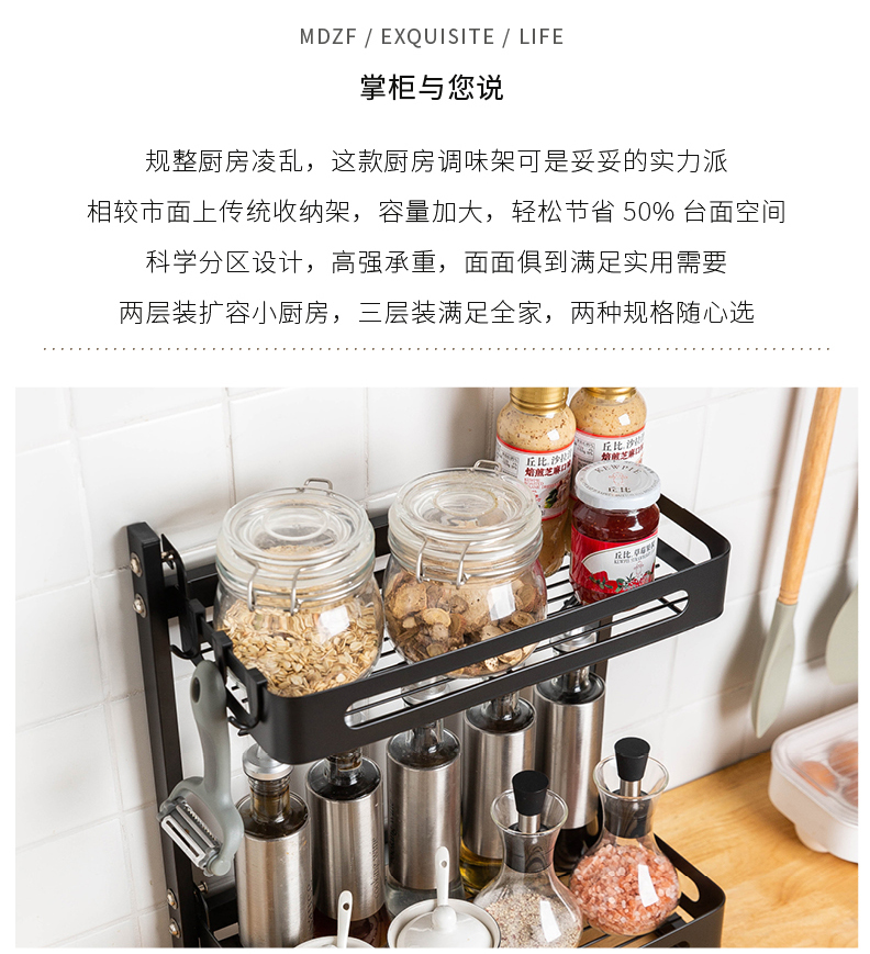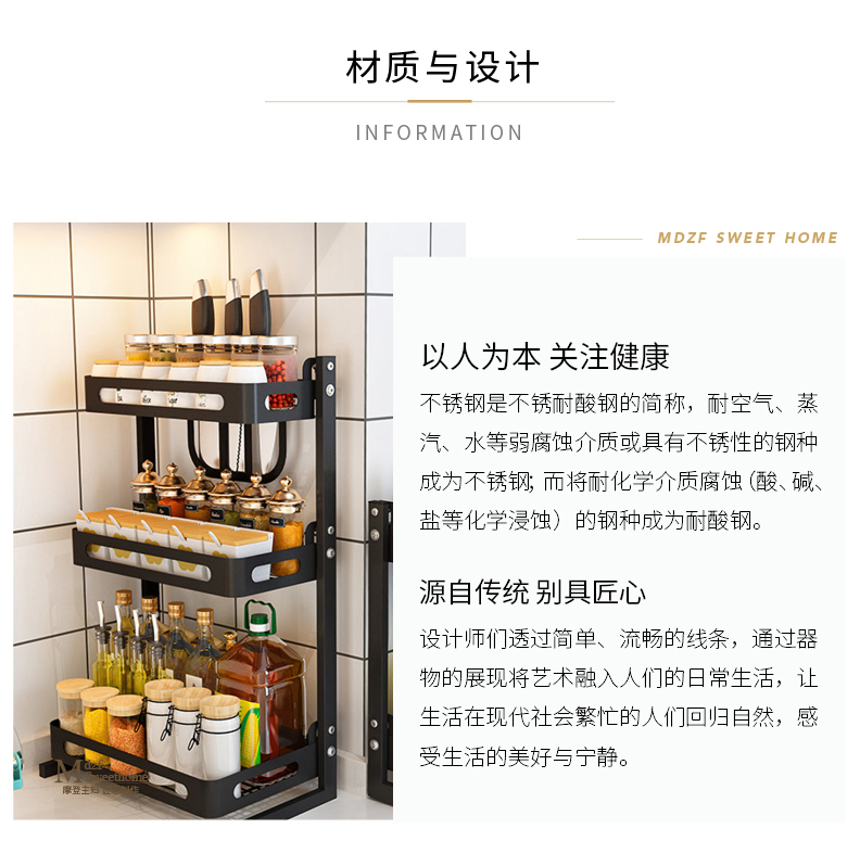 摩登主妇不锈钢厨房置物架台面调味瓶油盐酱醋收纳架多层调味料架