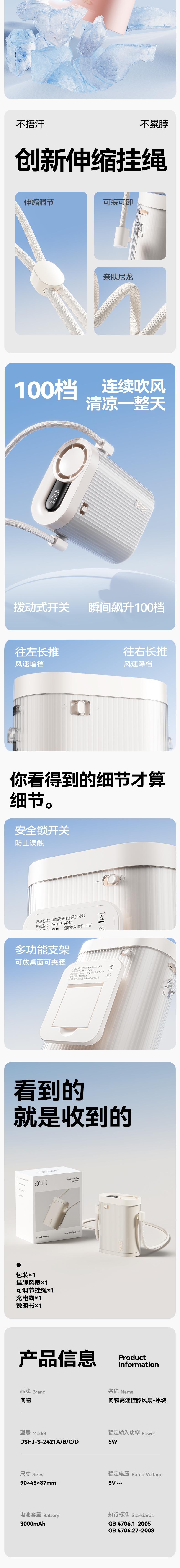 SOTHING向物 高速挂脖风扇-冰块5w容量3000mAh DSHJ-S-2421