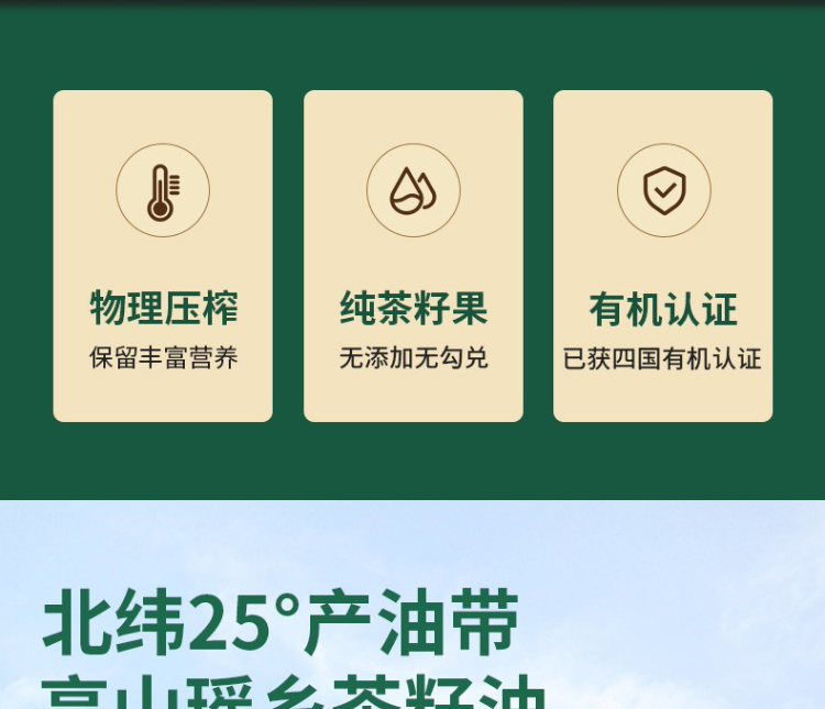 测评优品-25度有机油茶籽油 纯茶籽油 高端食用油 油脂新鲜 符合特级标准 烟点高 少油烟 味道清香 送礼佳品