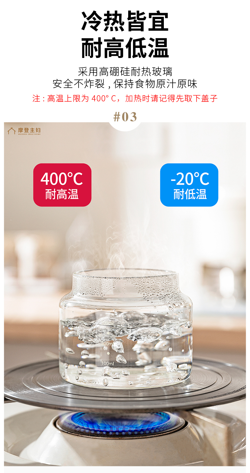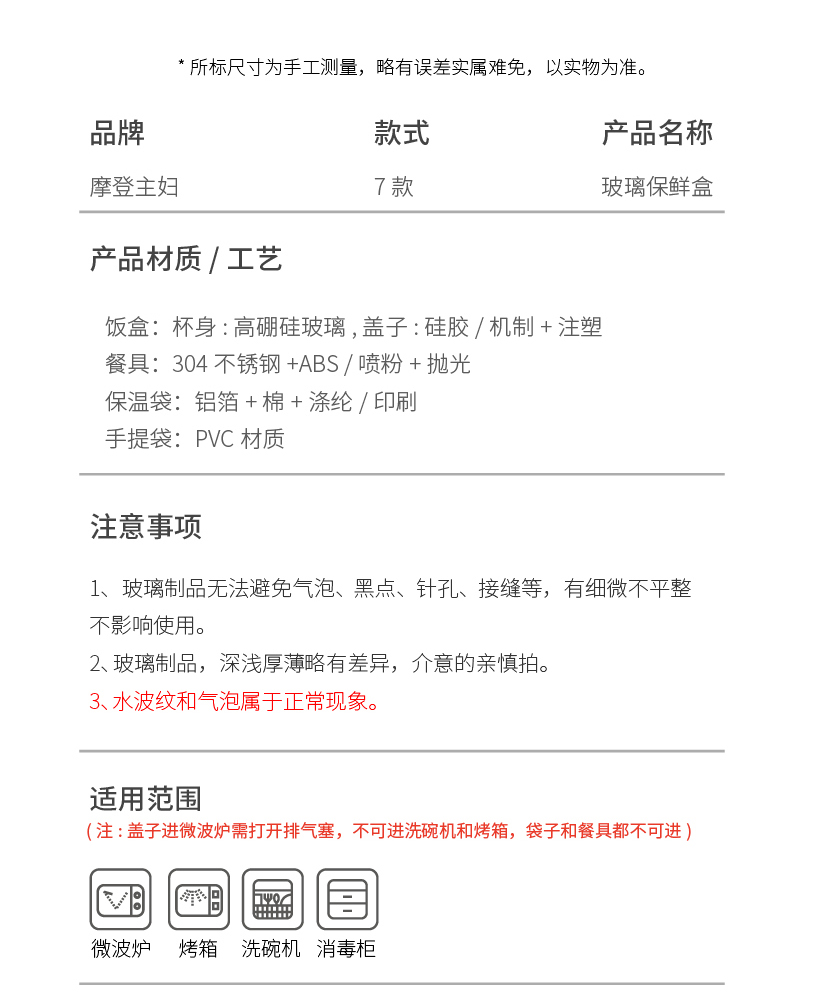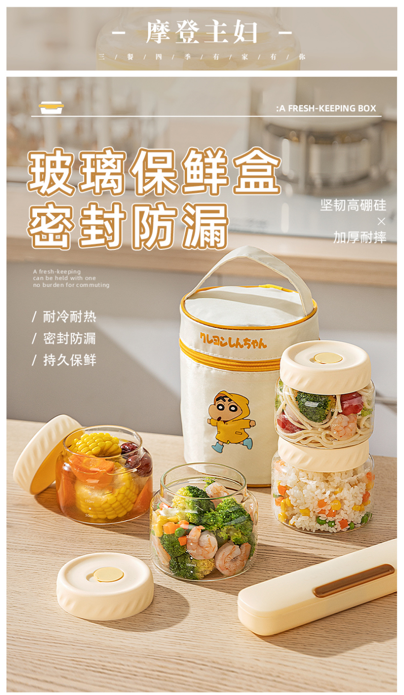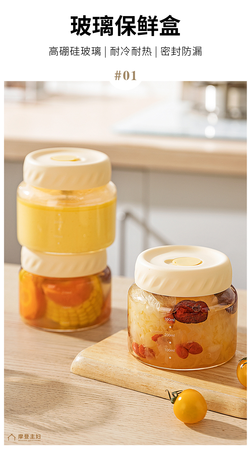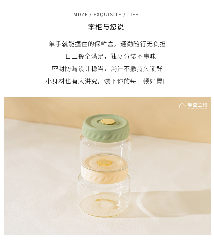 摩登主妇玻璃饭盒微波炉加热保鲜盒水果便当盒上班族带饭密封餐盒