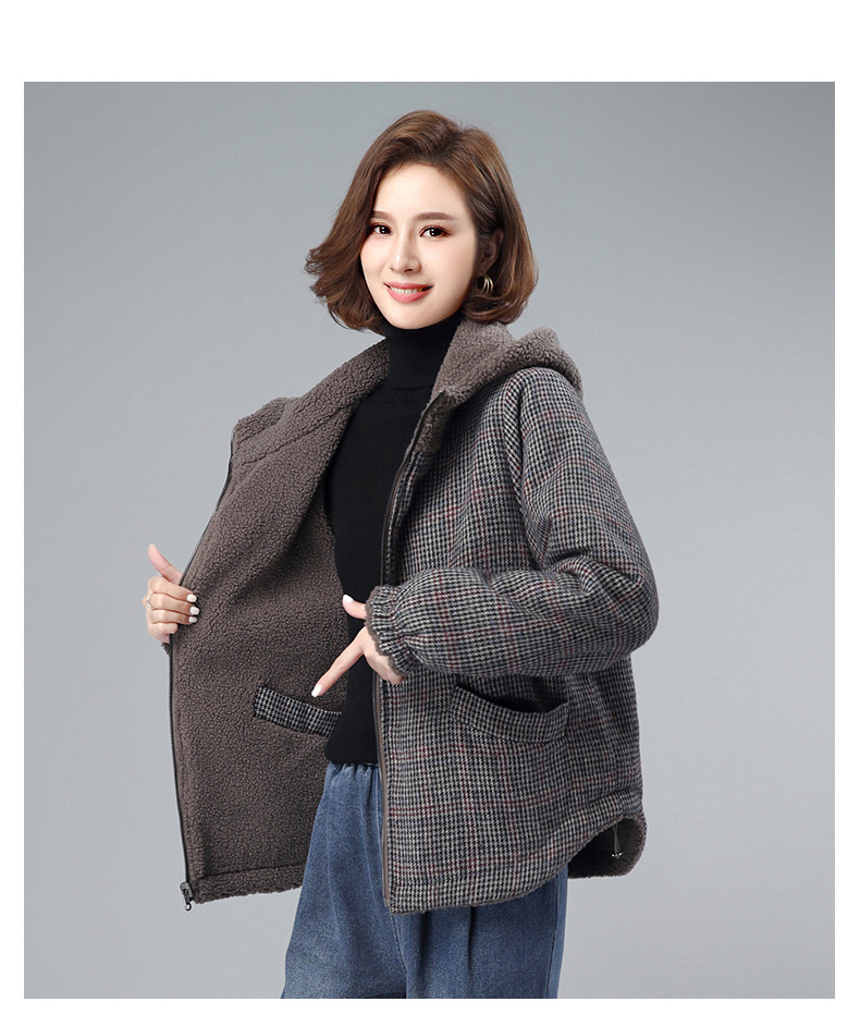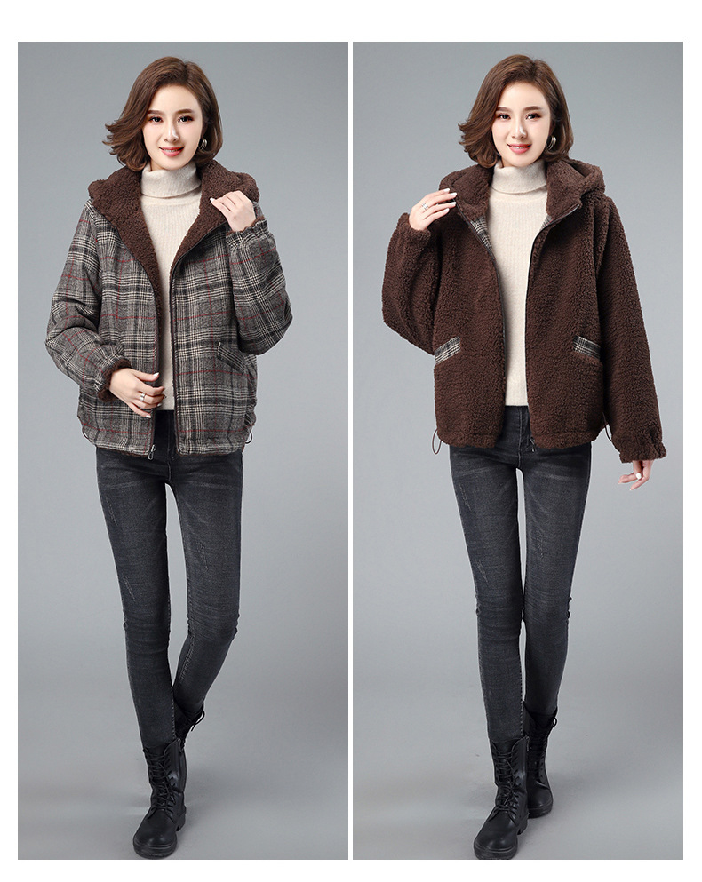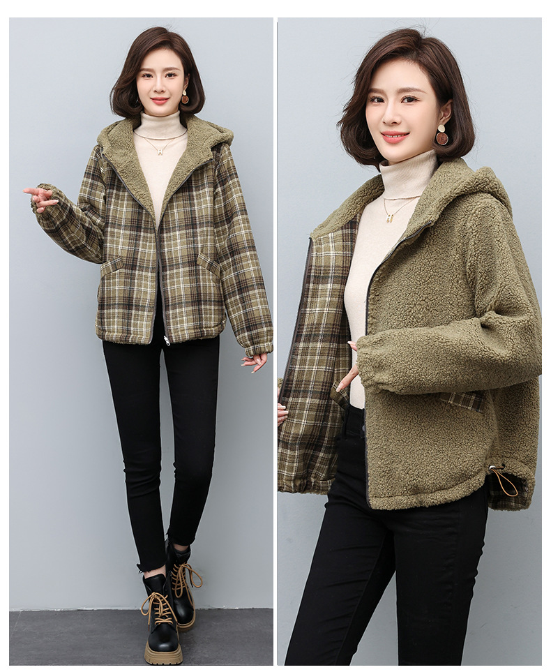 丁摩 双面穿连帽中长款宽松夹棉休闲棉衣棉服XN6625