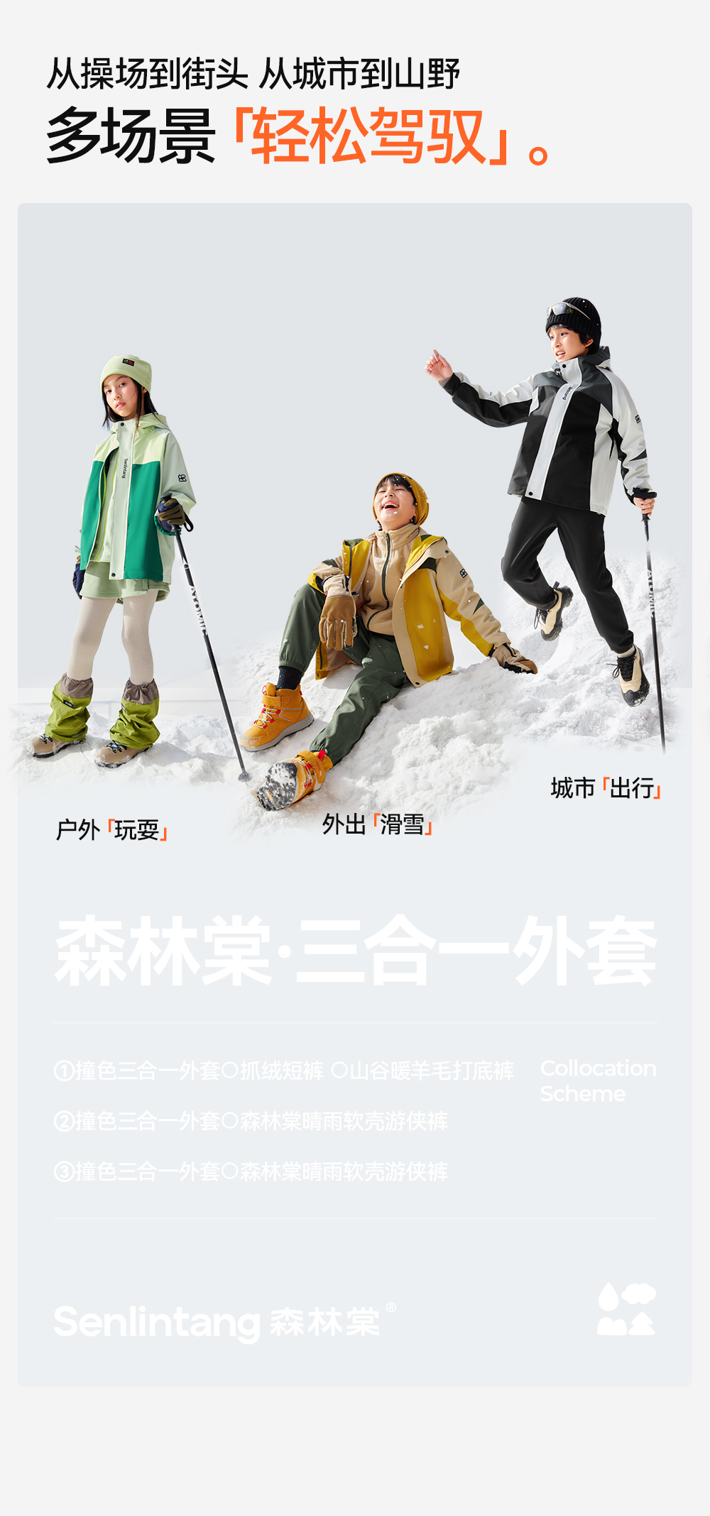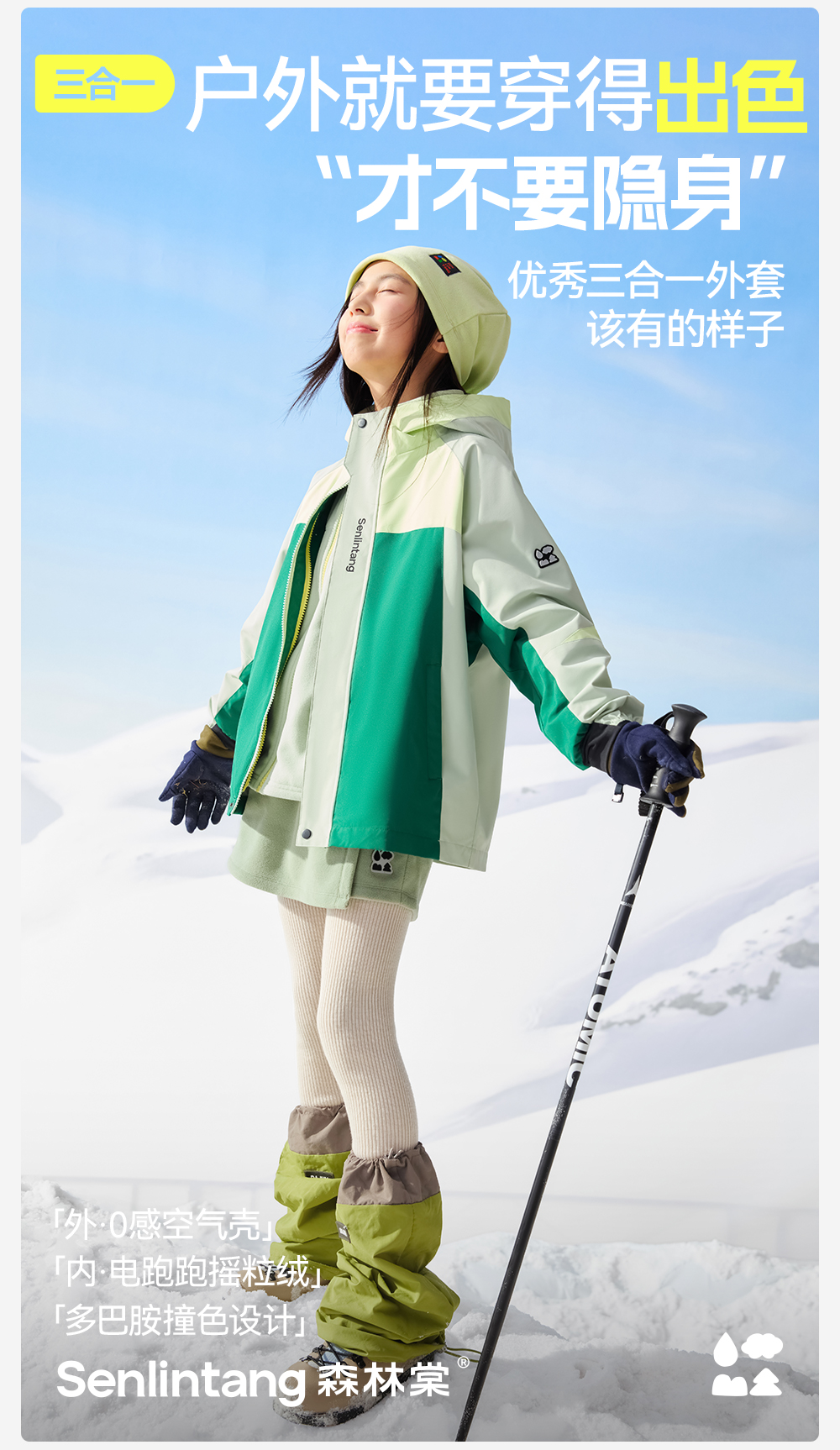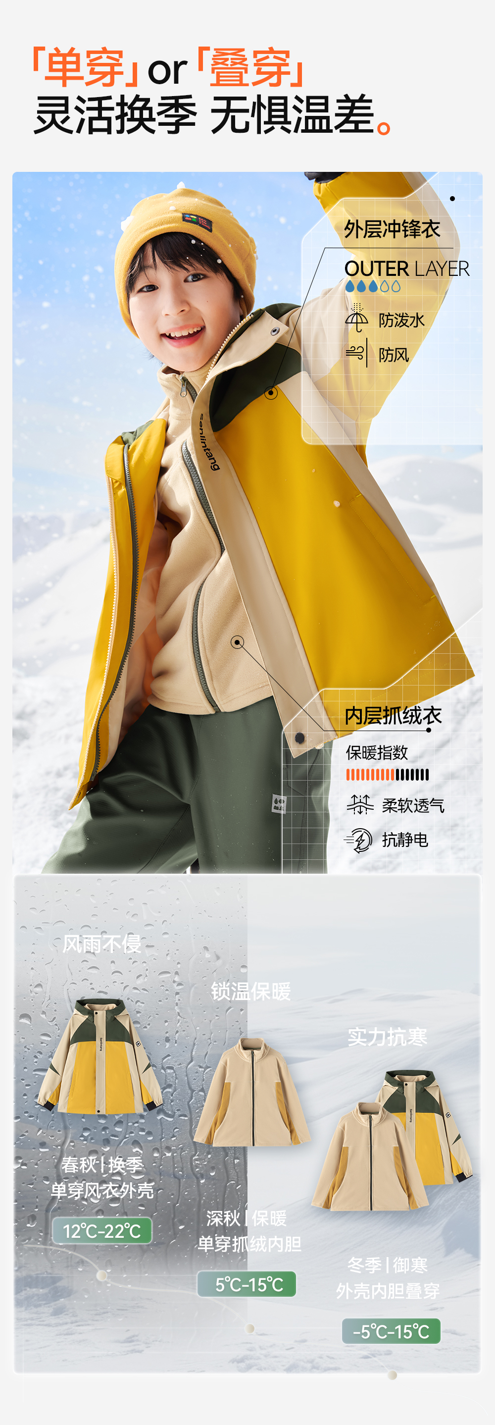 【撞色三合一外套】森林棠25秋冬新款防风儿童三合一风衣中大童外套61653014