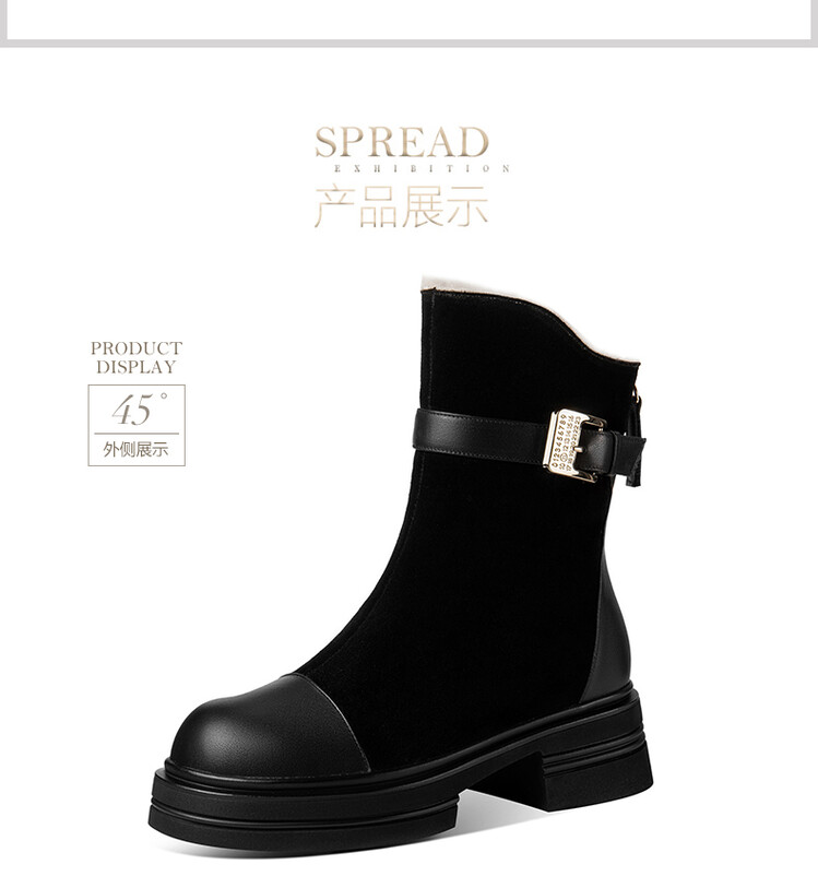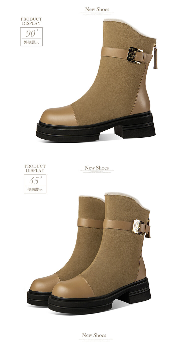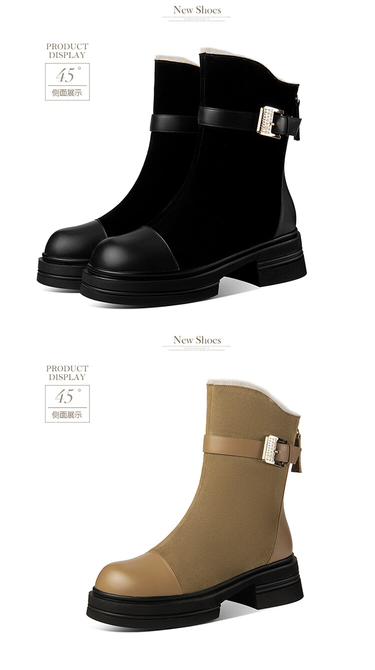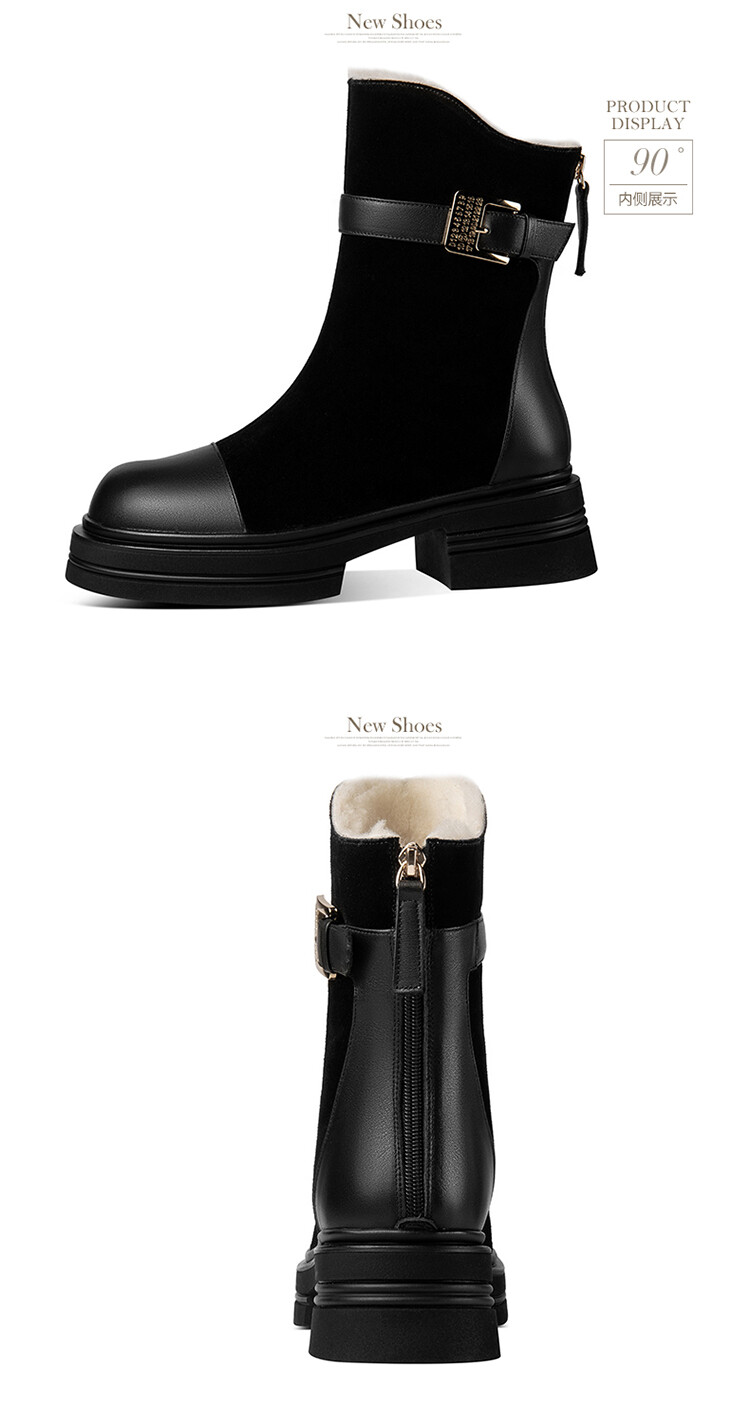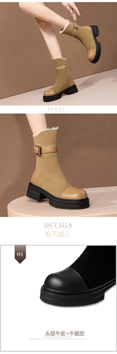 ★【鞋面材质】: 头层牛皮+牛翻皮皮毛一体