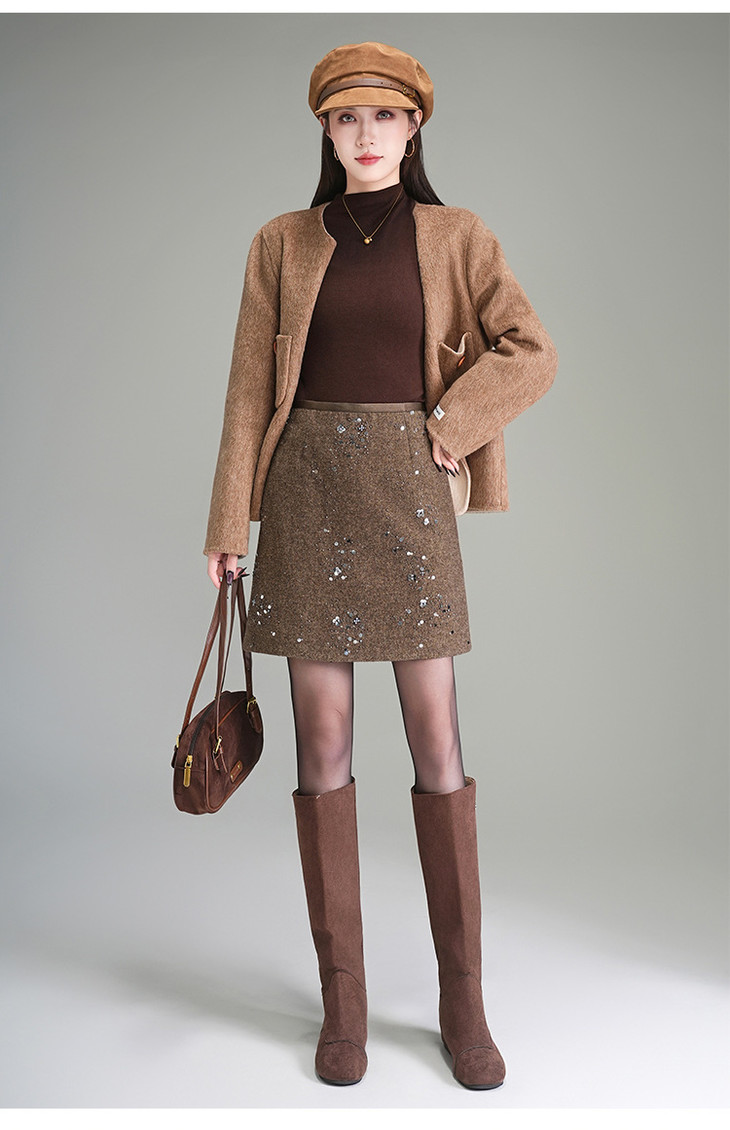 重工贴钻小香风洋气半身裙小个子高腰A字裙MYX95879 商品图4
