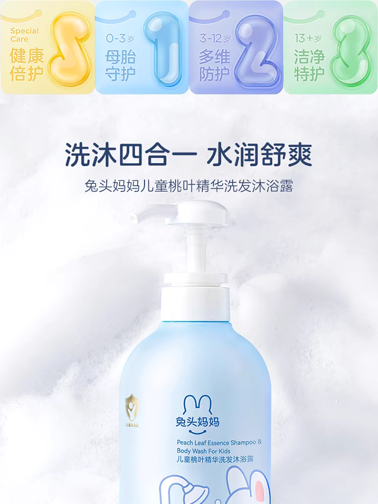 兔头妈妈儿童桃叶精华洗发沐浴露500g