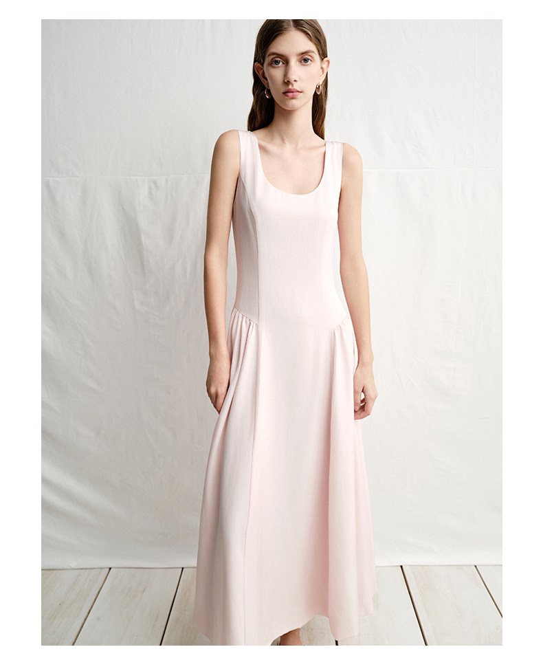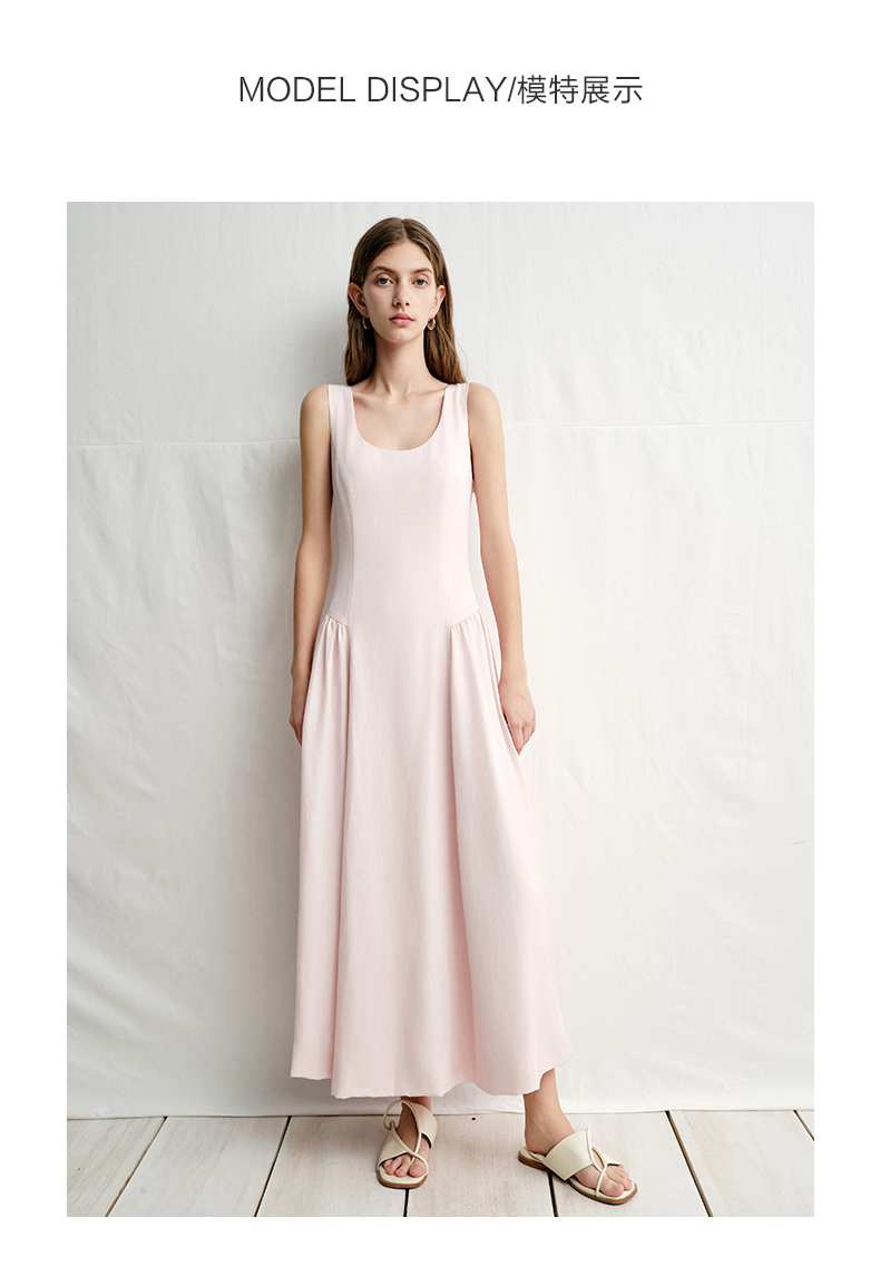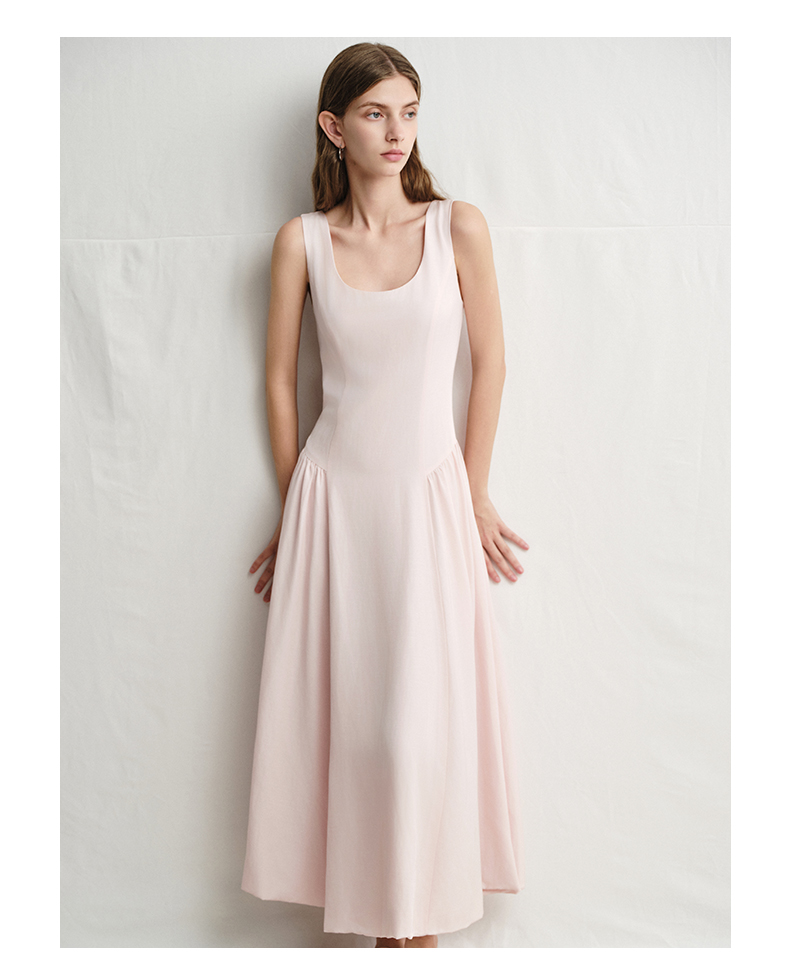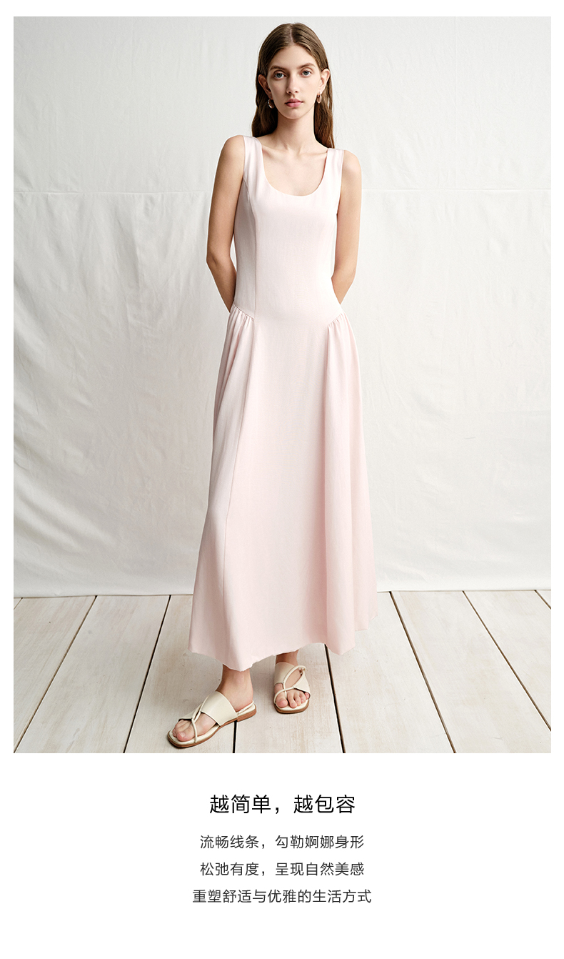 VIMAGE纬漫纪低腰压着长裙U型领显瘦宽肩带连衣裙2025夏季新款V2377904