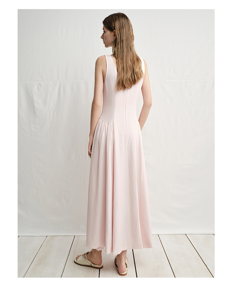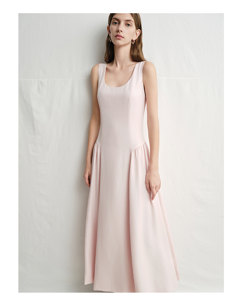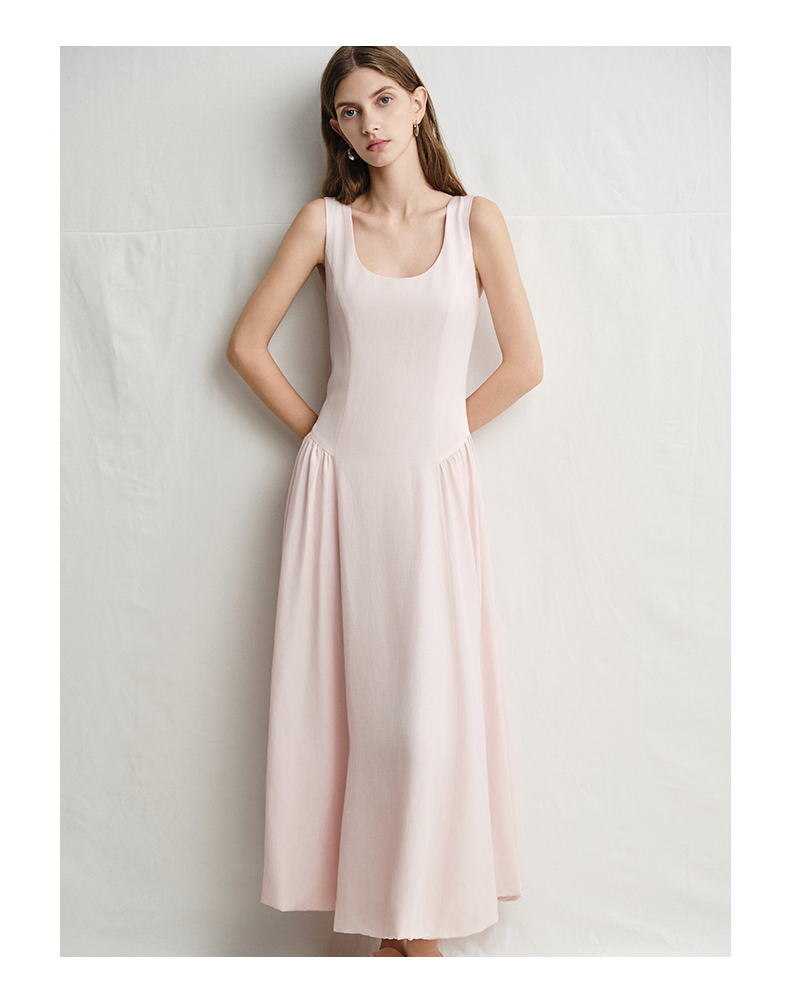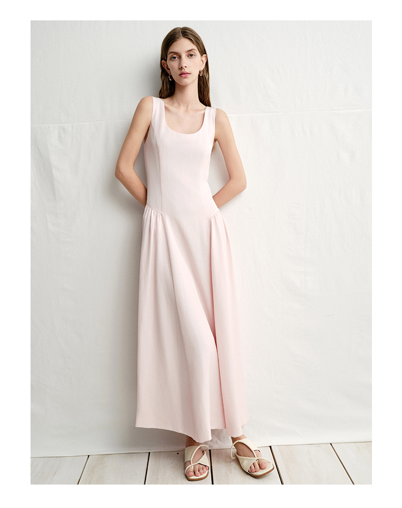 VIMAGE纬漫纪低腰压着长裙U型领显瘦宽肩带连衣裙2025夏季新款V2377904