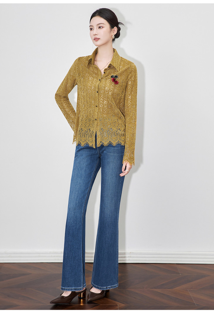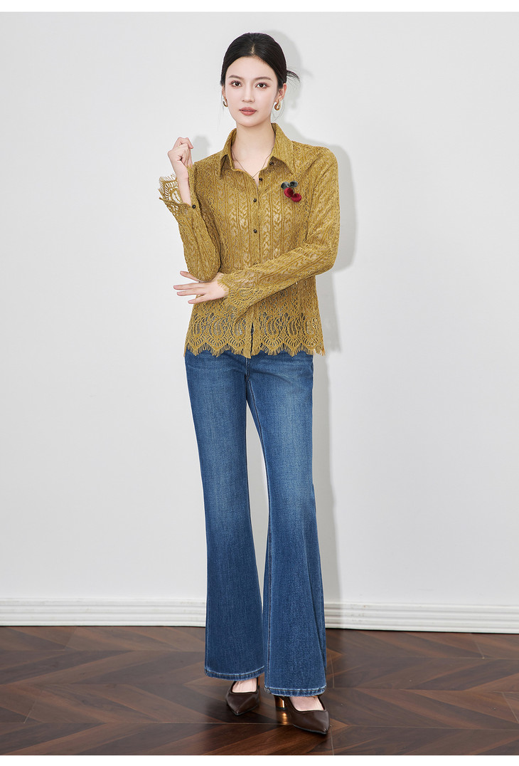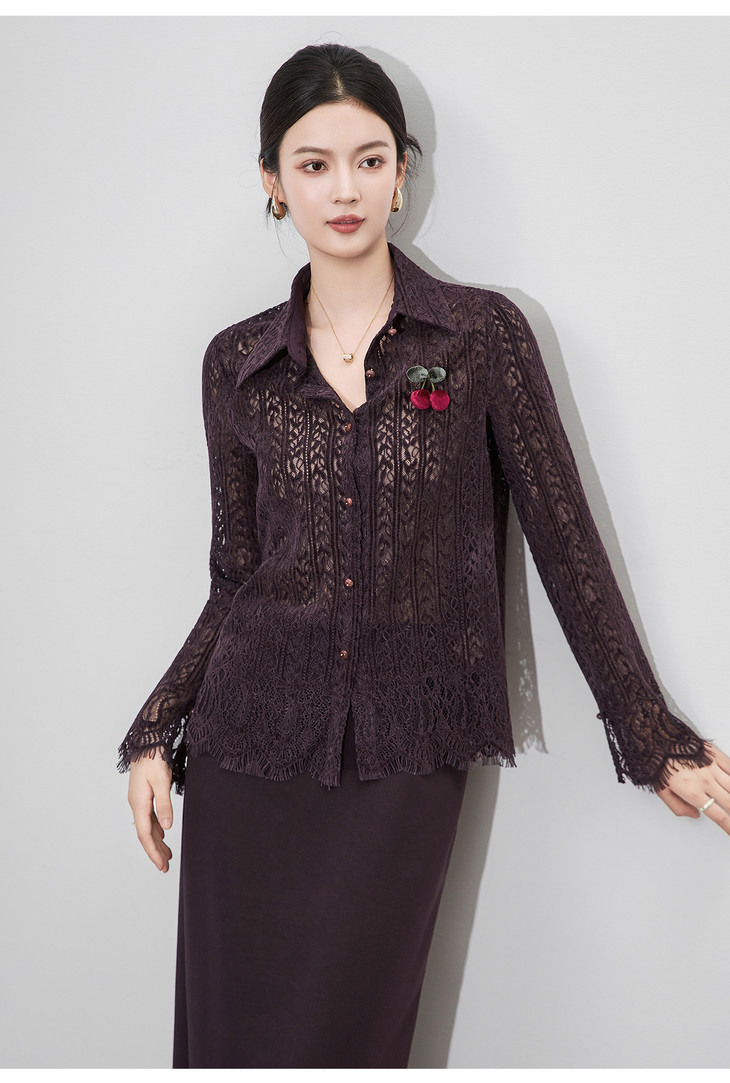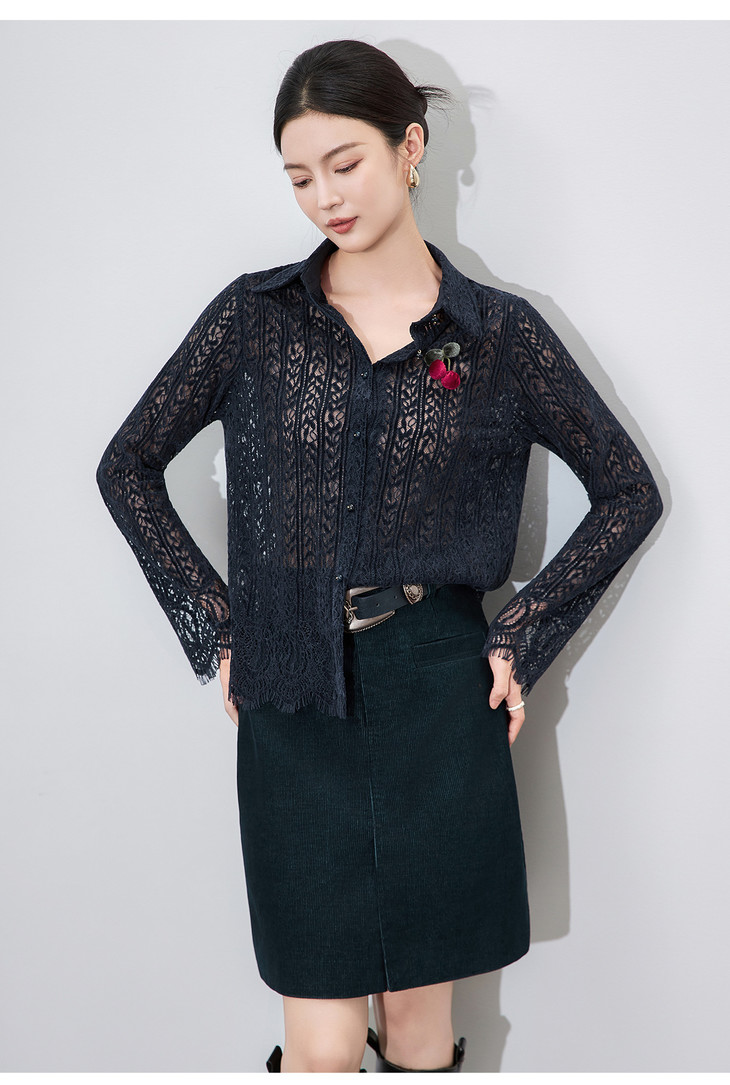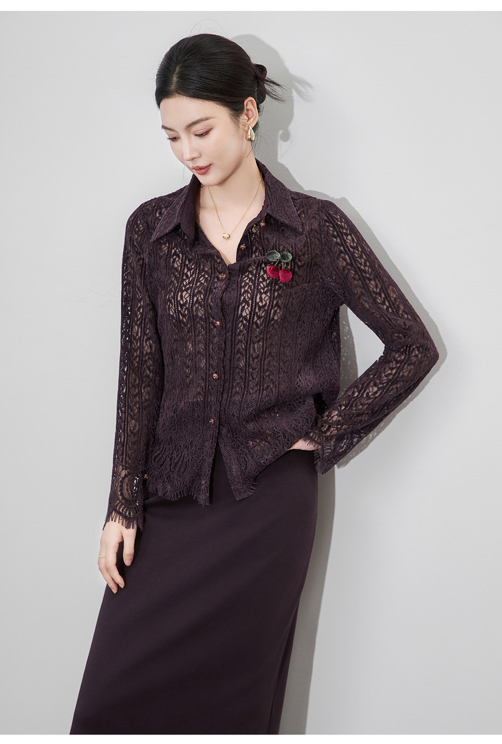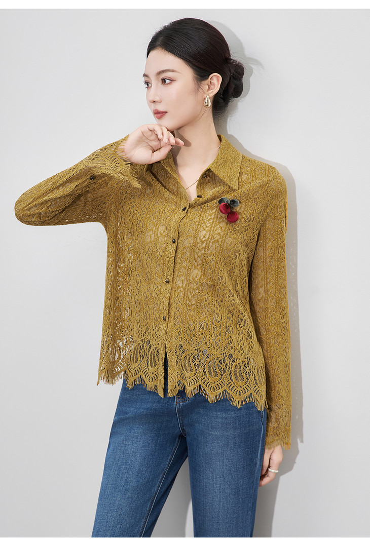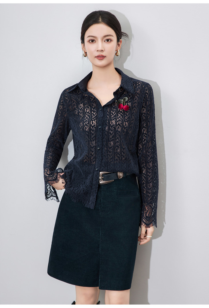 轻奢高品质立体雪尼尔蕾丝衬衫,打底上衣镂空刺绣显瘦WLZD-2512105