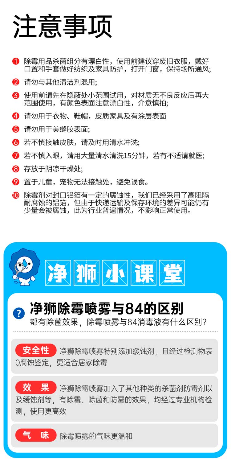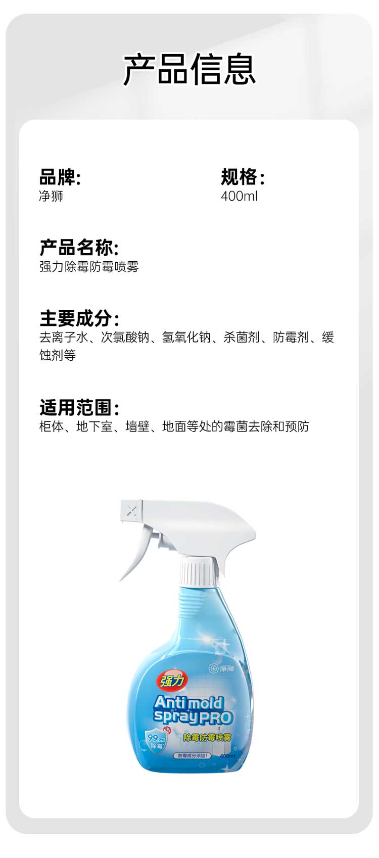 【除霉防霉 居家安心】净狮除霉喷雾 精准除霉 持久防护 温和无毒 居家适用 400ml/瓶