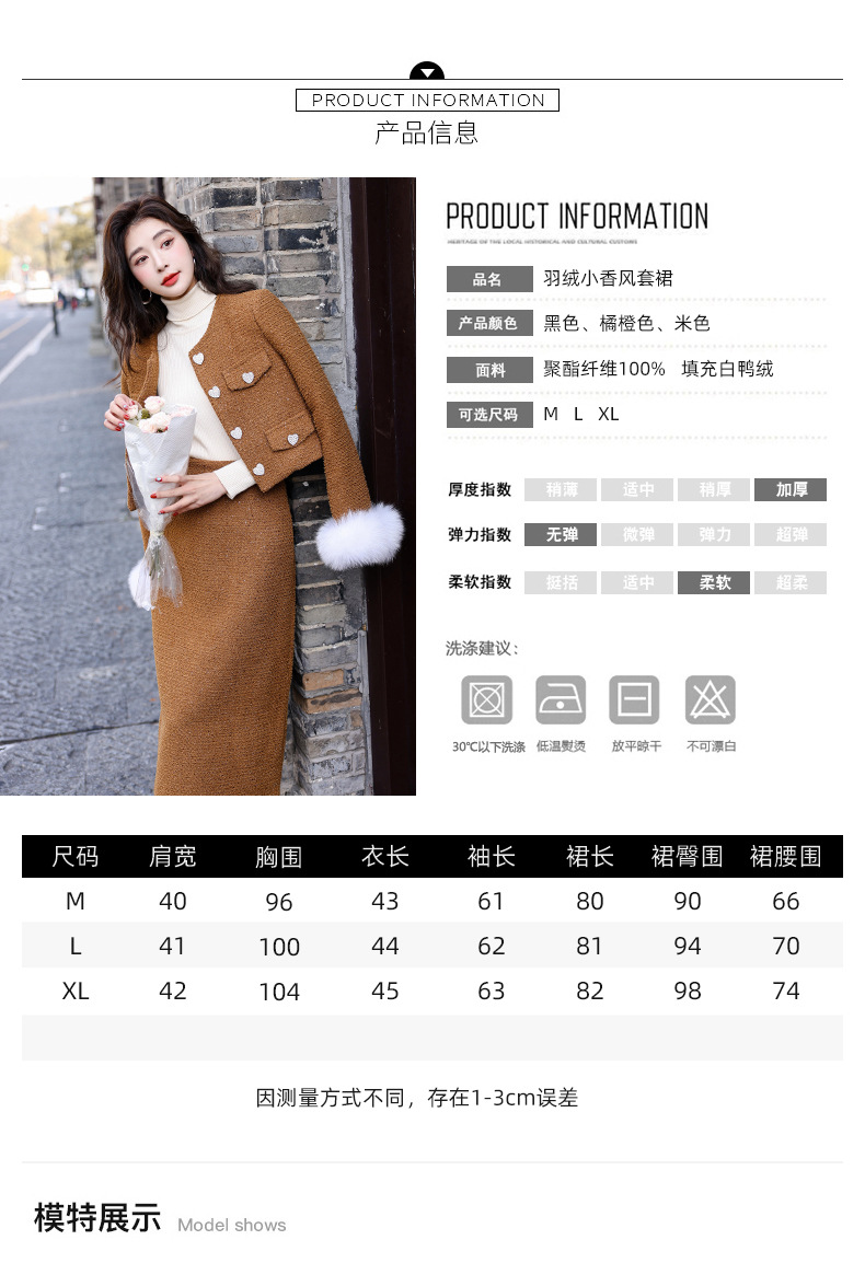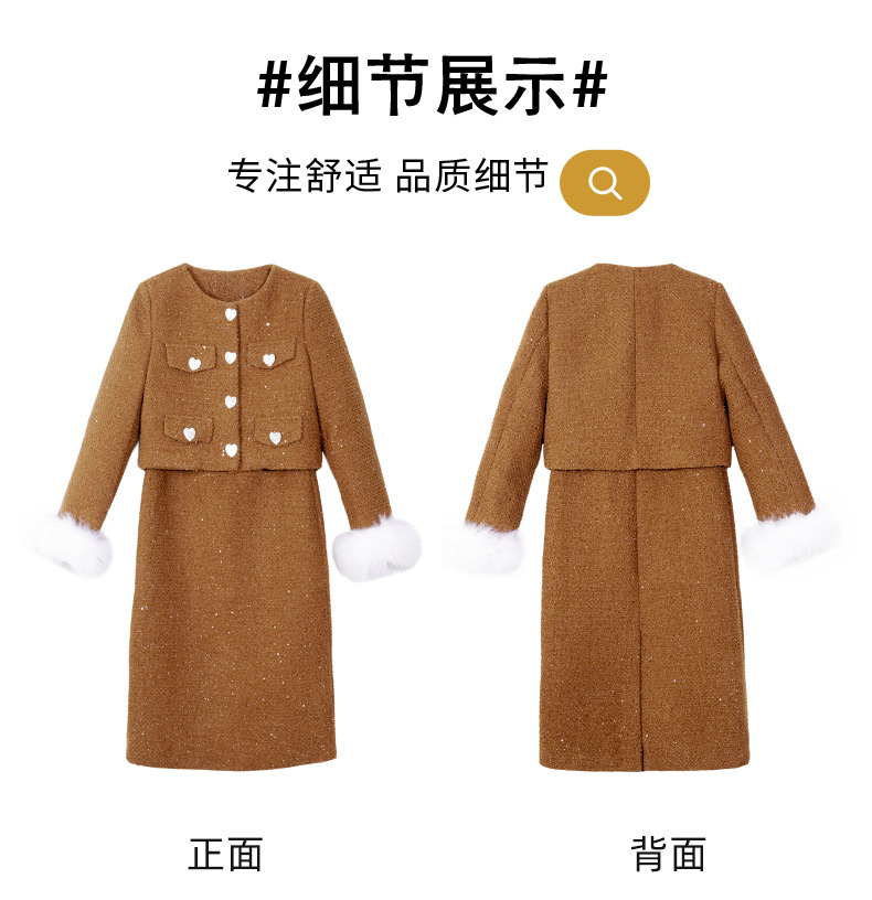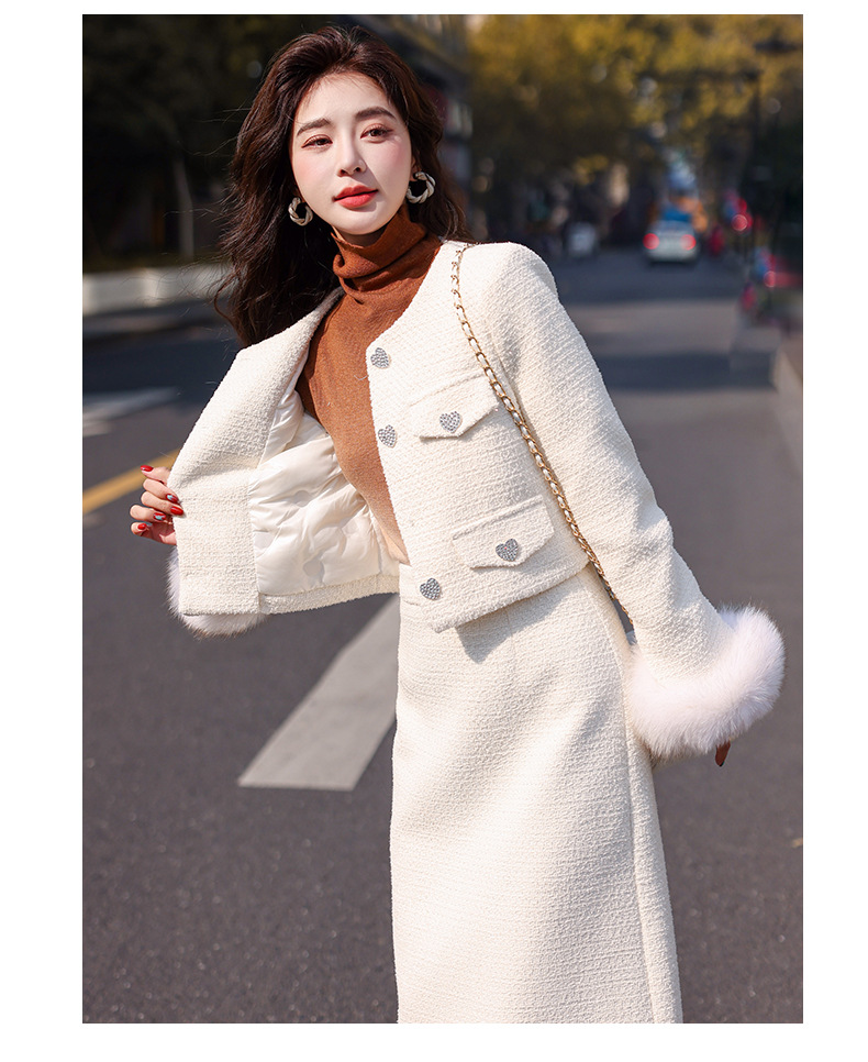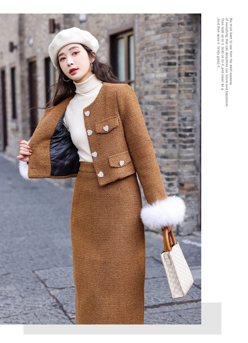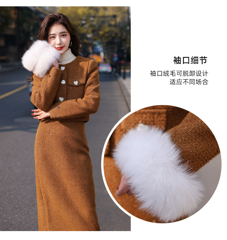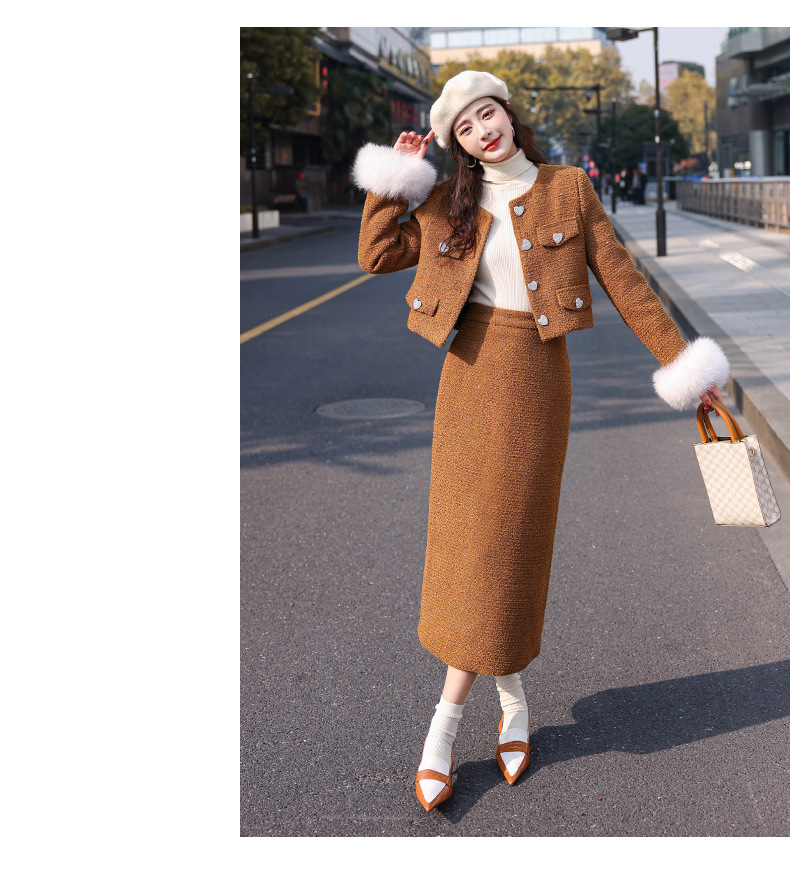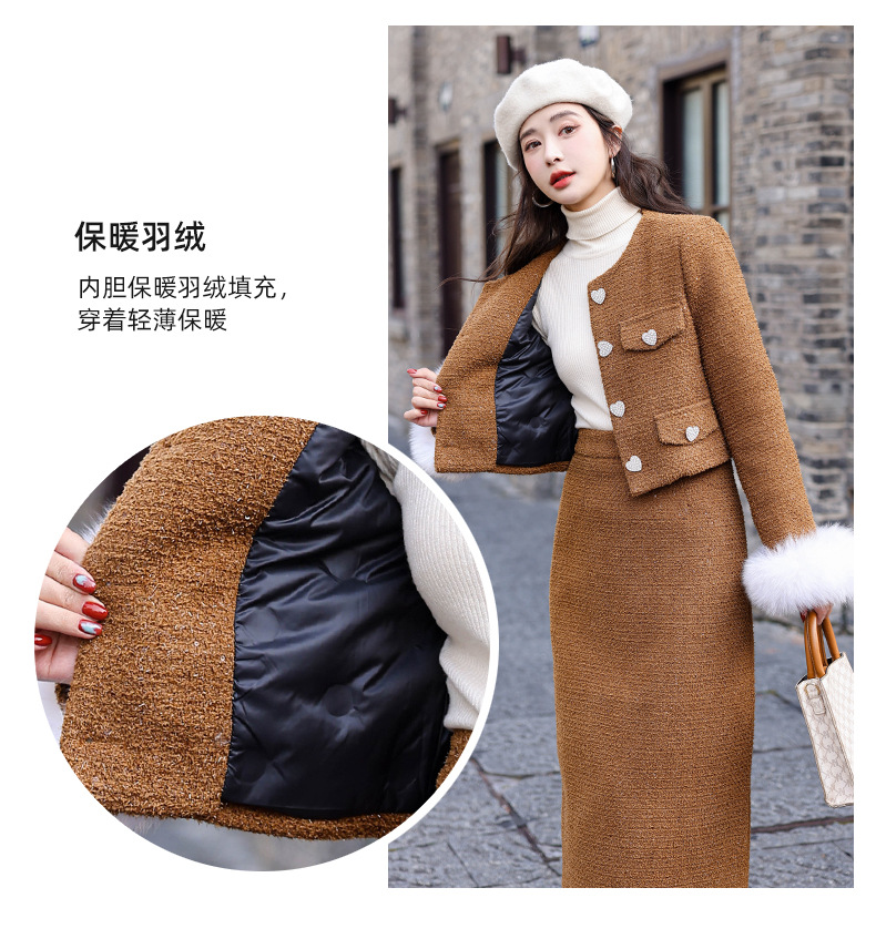 HR SNX2893小香风时尚套装裙气质毛呢子羽绒外套半身裙两件套 商品图4