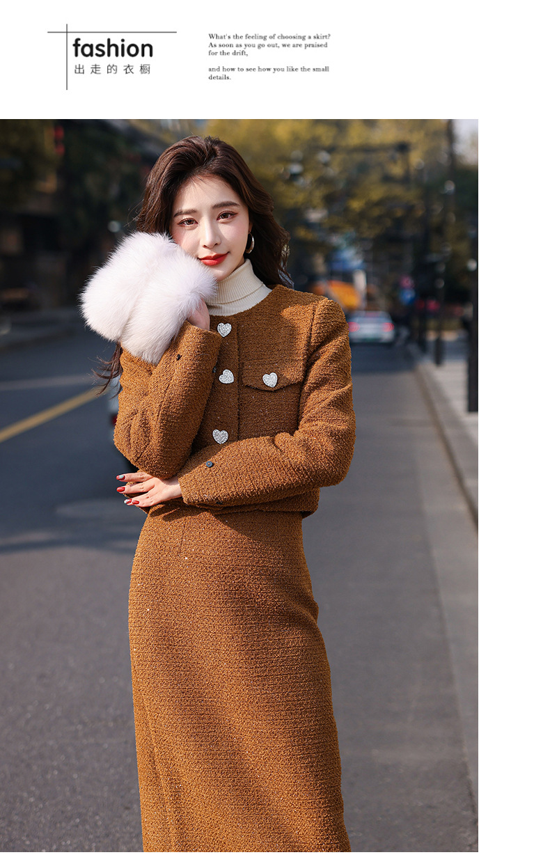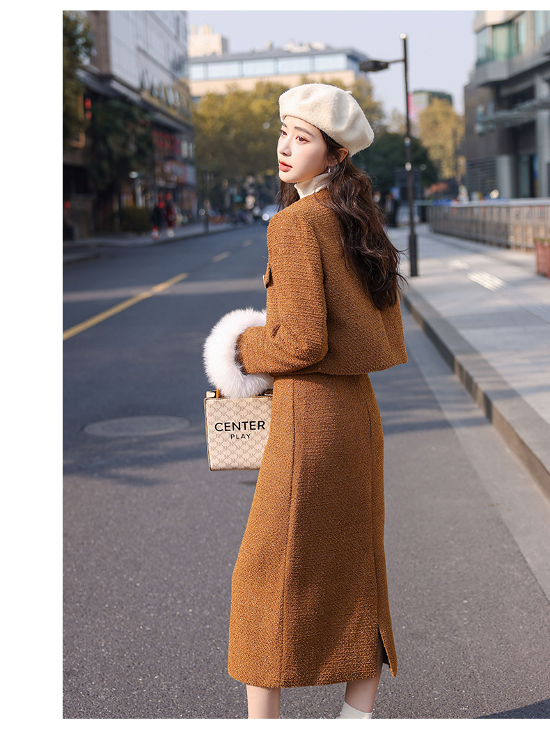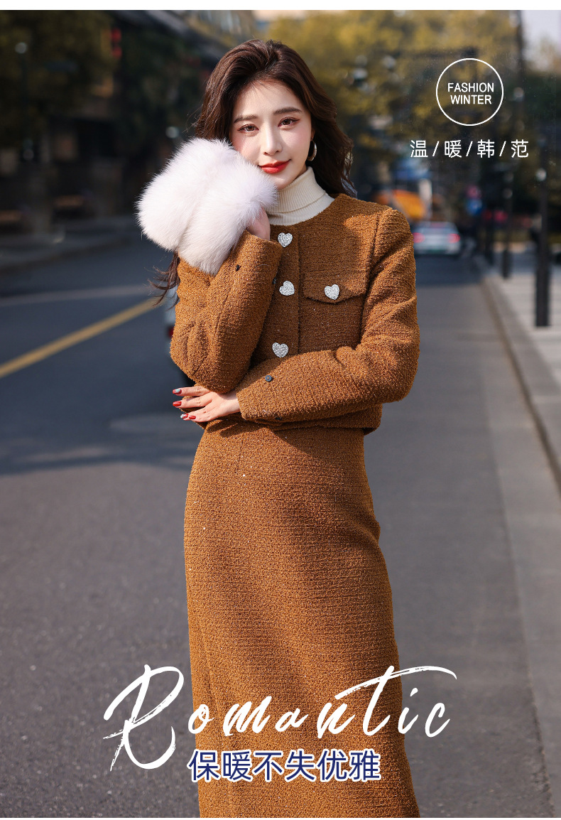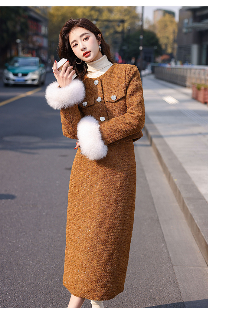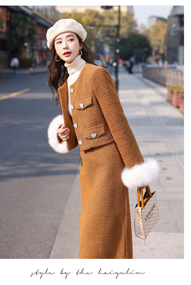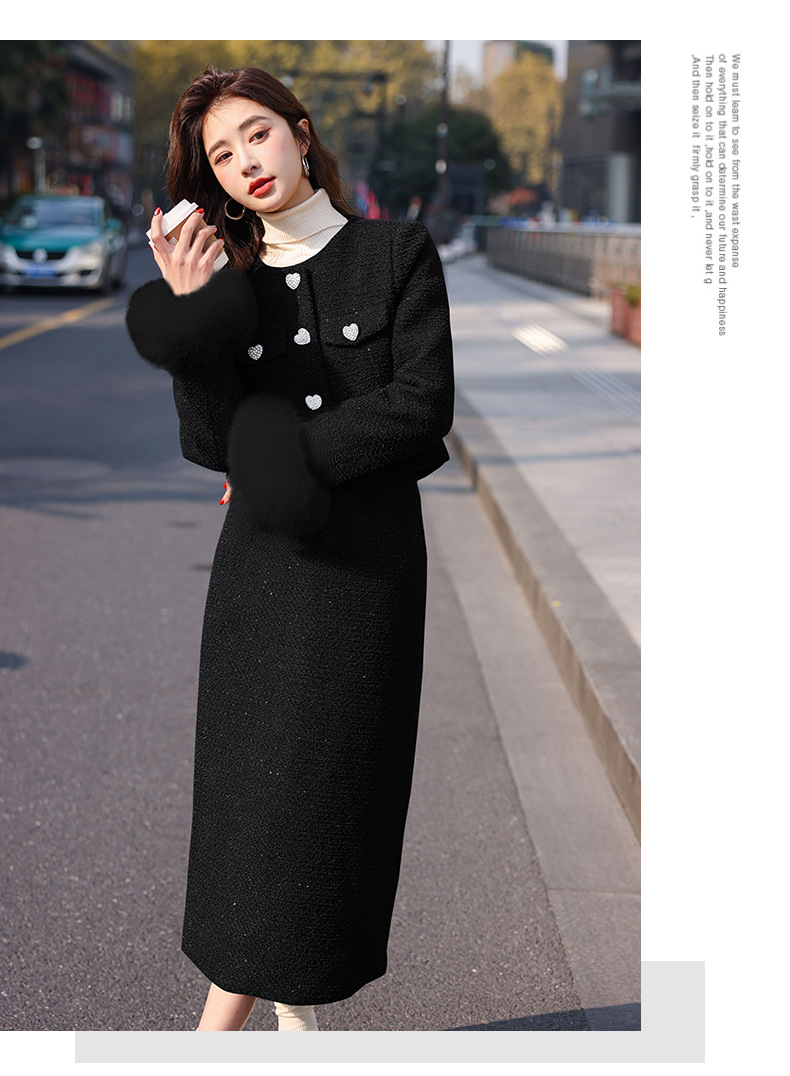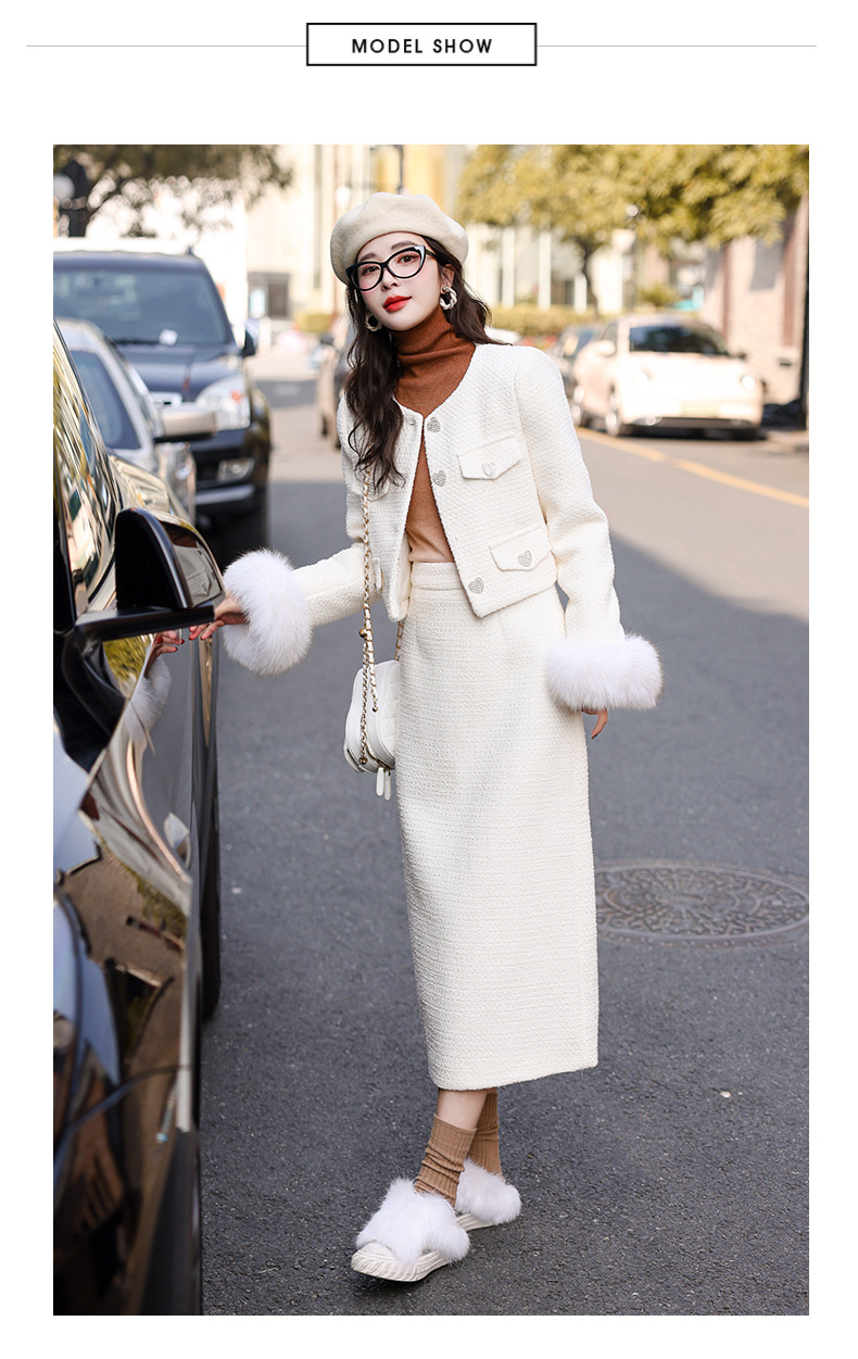 HR SNX2893小香风时尚套装裙气质毛呢子羽绒外套半身裙两件套 商品图4