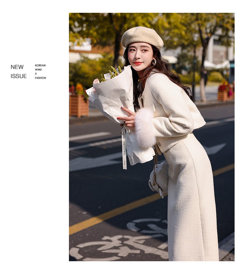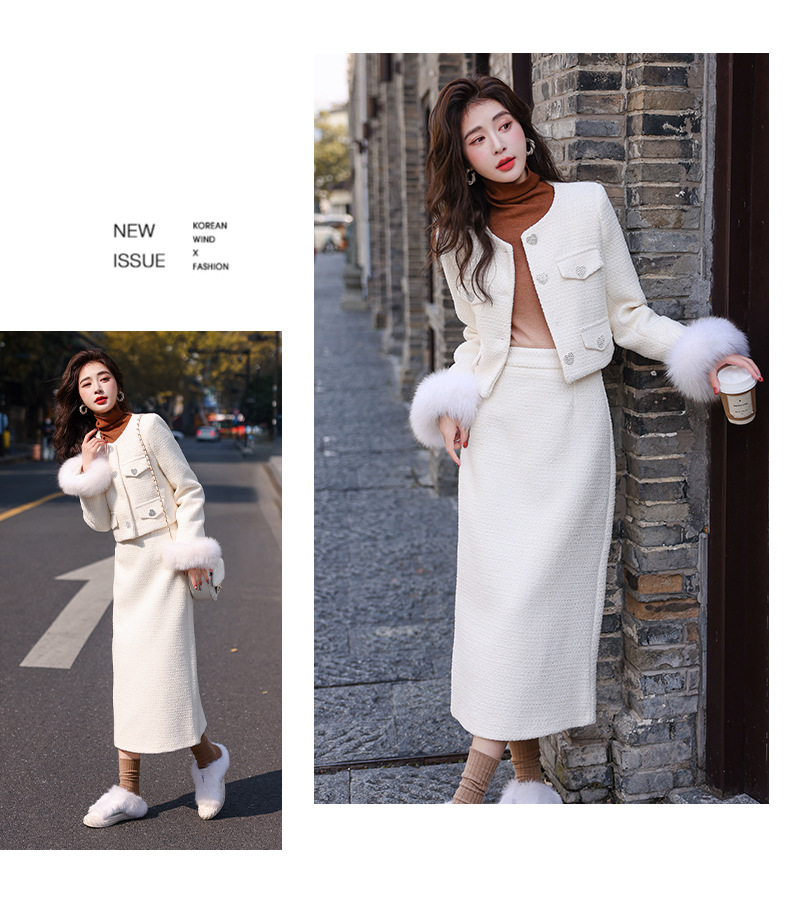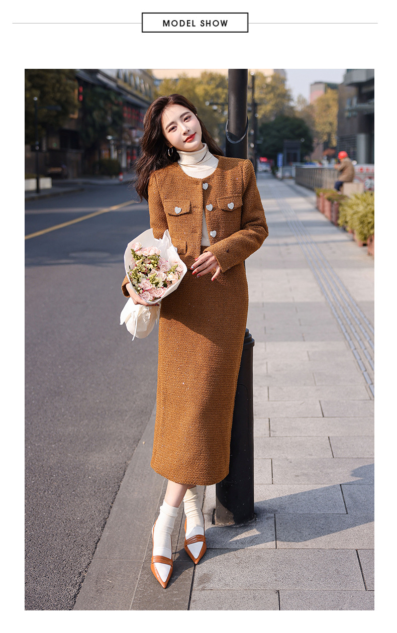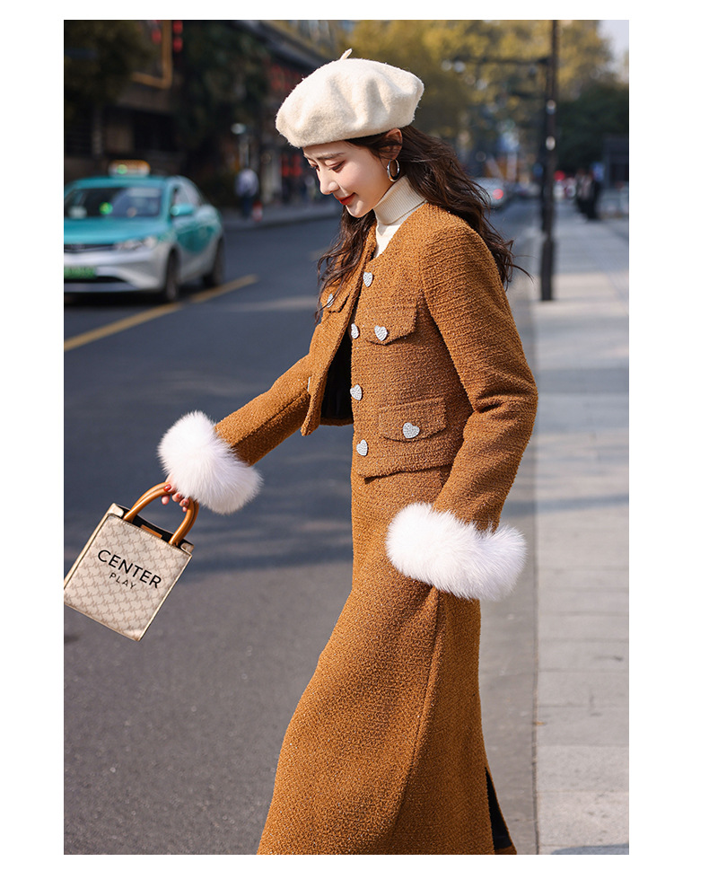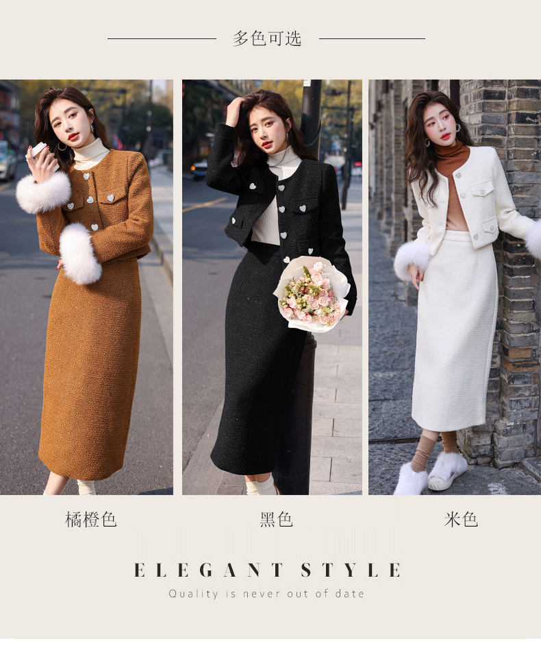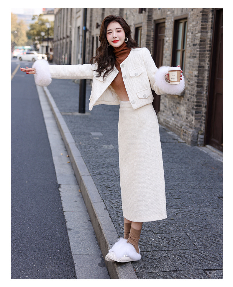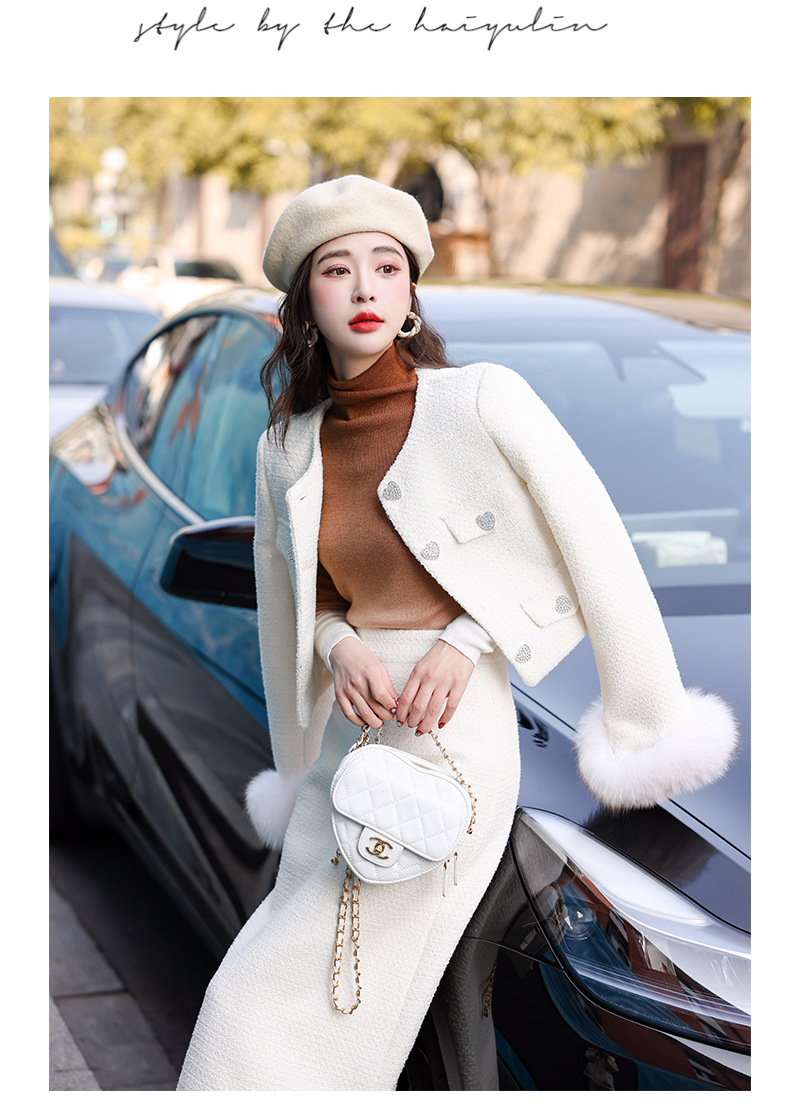 HR SNX2893小香风时尚套装裙气质毛呢子羽绒外套半身裙两件套 商品图4