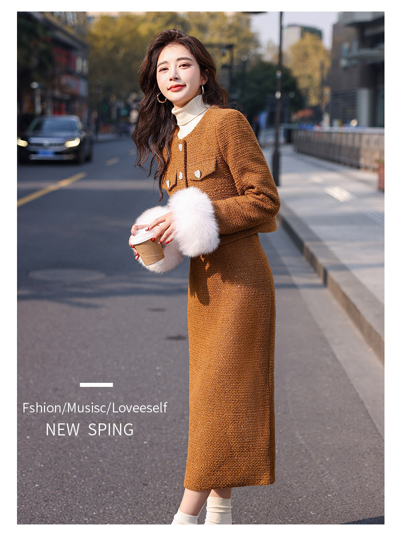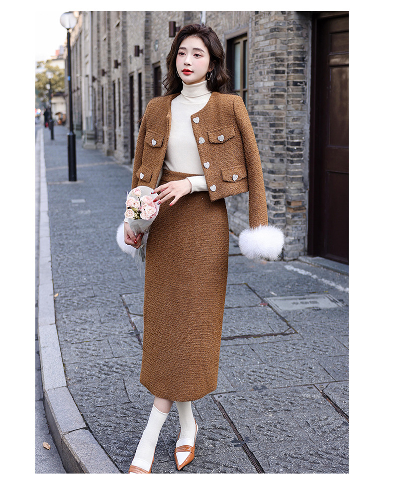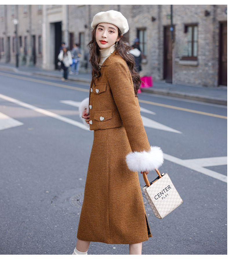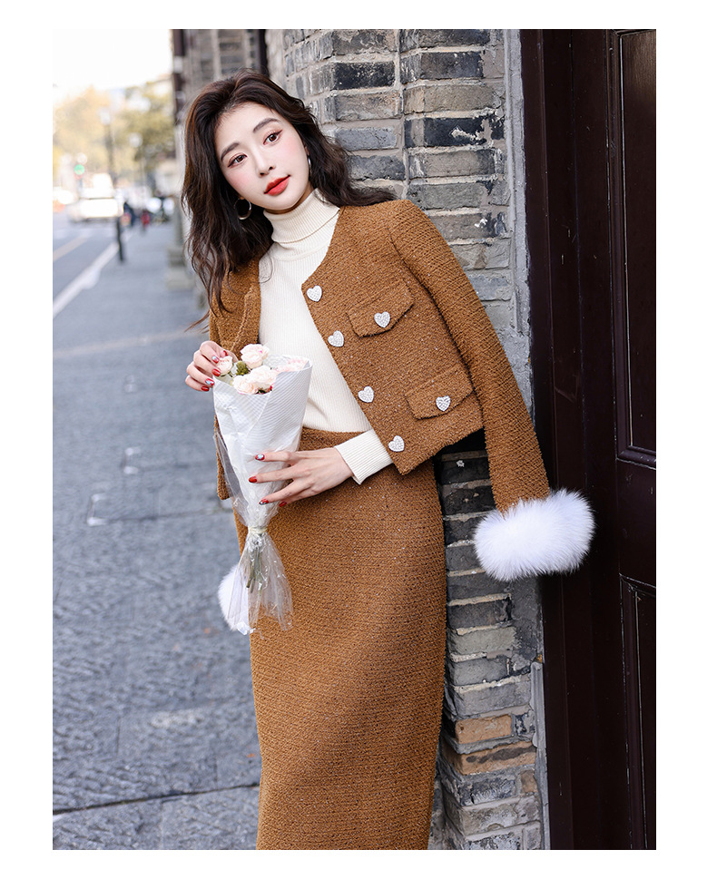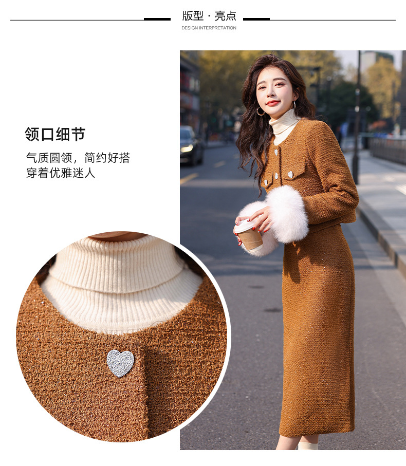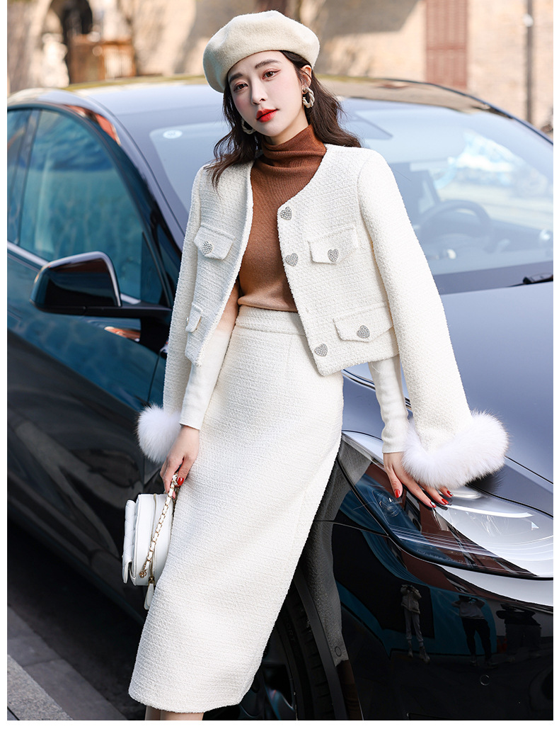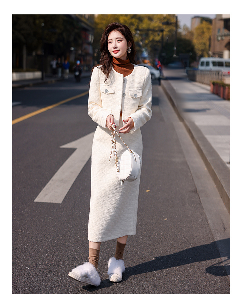 HR SNX2893小香风时尚套装裙气质毛呢子羽绒外套半身裙两件套 商品图4