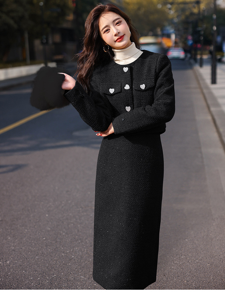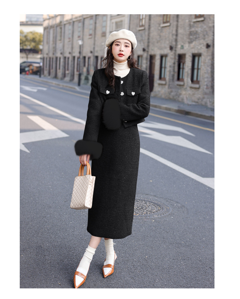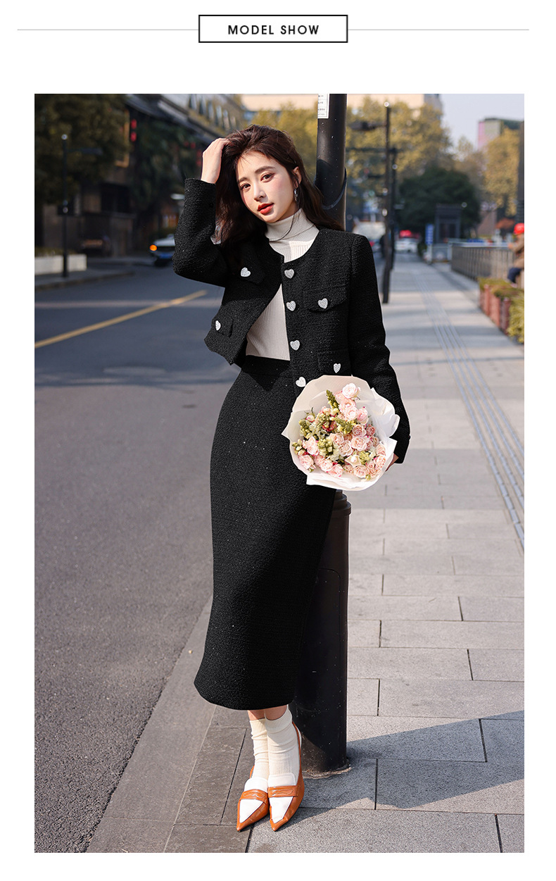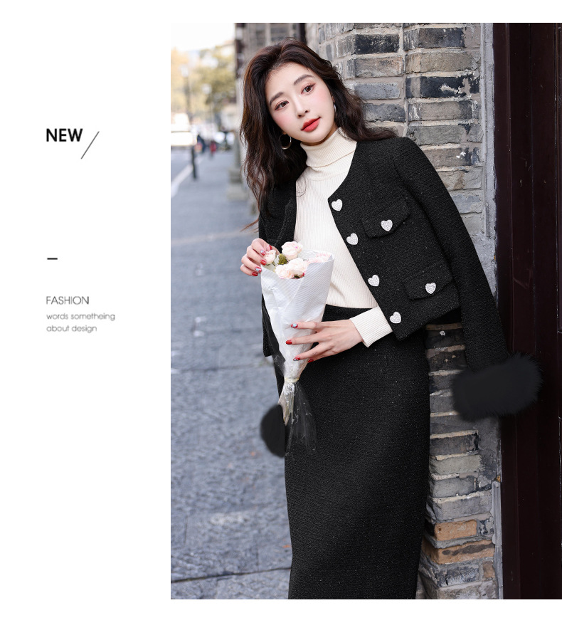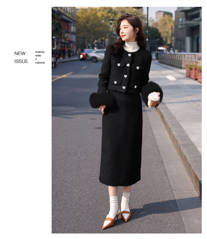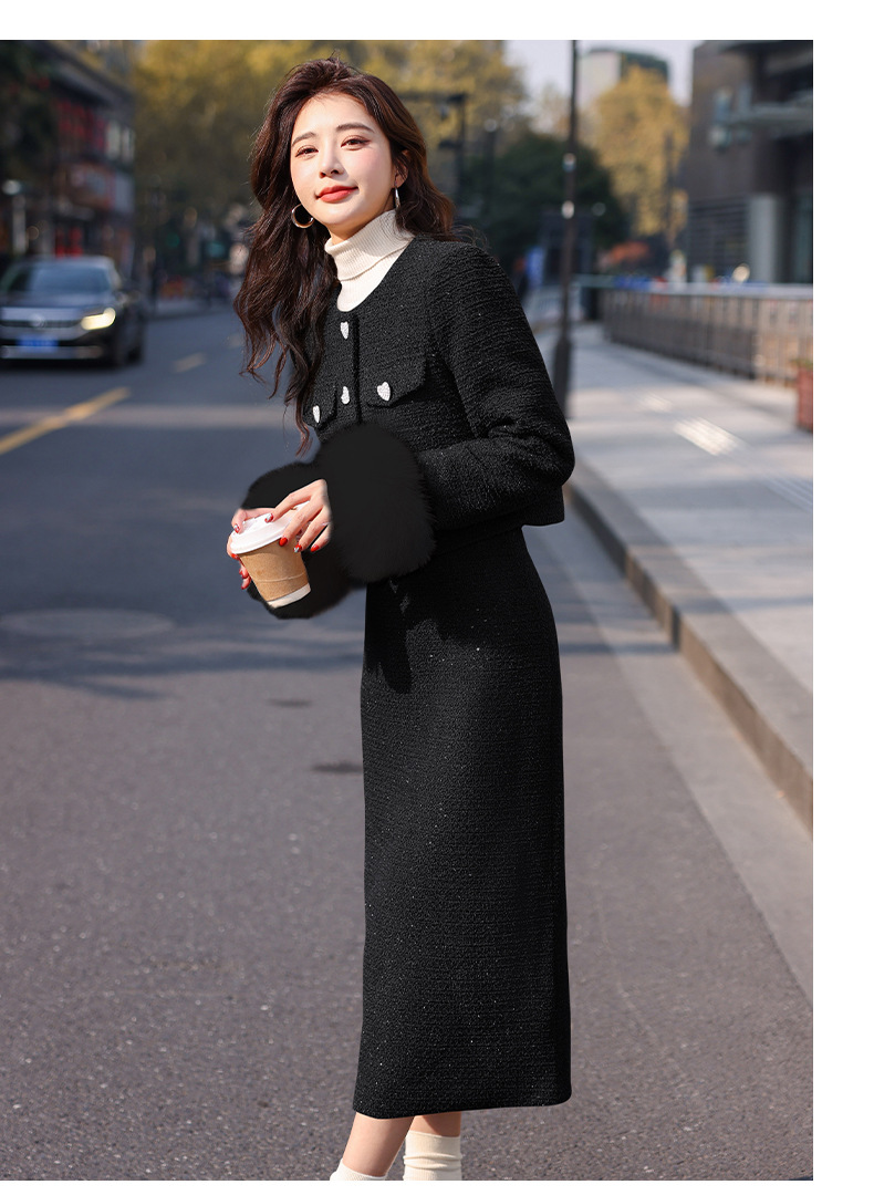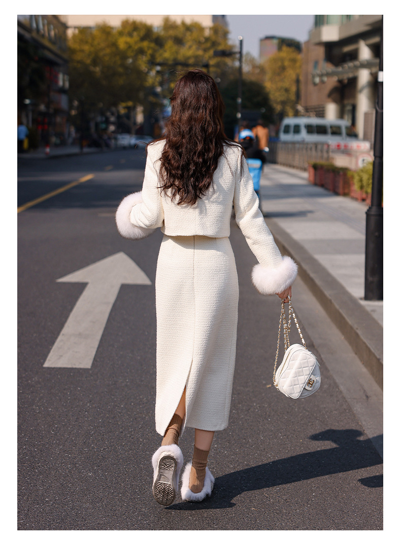 HR SNX2893小香风时尚套装裙气质毛呢子羽绒外套半身裙两件套 商品图4
