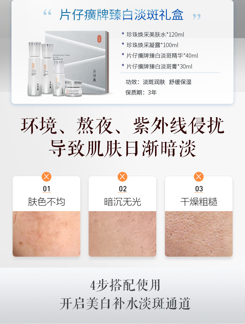片仔癀牌臻白淡斑礼盒4件套(亮肤水+凝露+精华液+臻白膏)