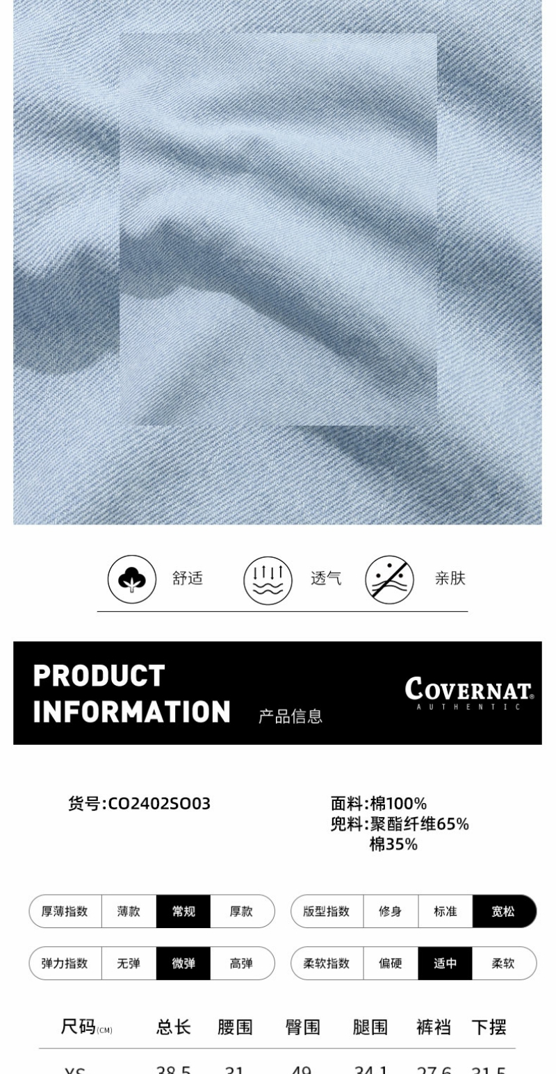 Covernat韩国潮牌休闲纯棉舒适宽松情侣男女同款牛仔短裤春夏CO2402SO03