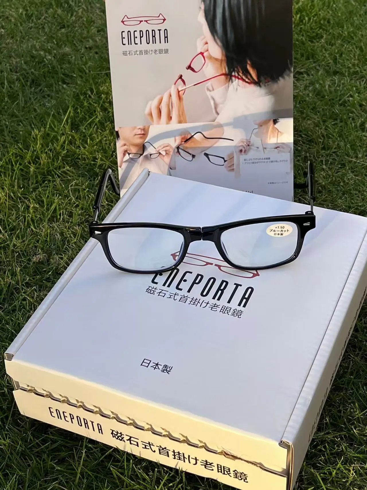某猫原价199开团只要59,ENEPORTA磁吸分体围脖式老花镜 日本原装进口 磁吸挂脖 防蓝光防辐射 耐造折不断 送礼送到爹妈心坎上基地直邮