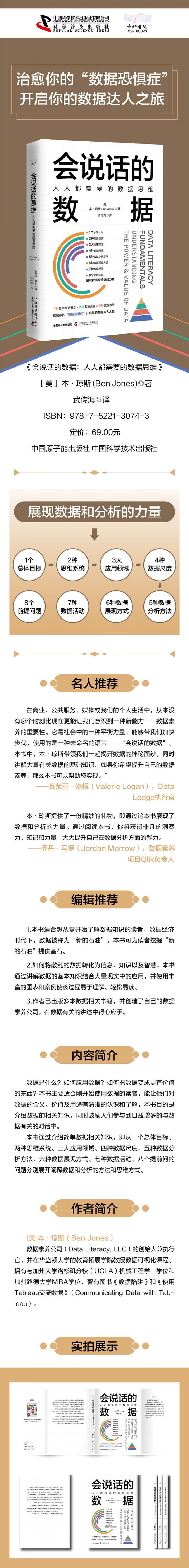 本·琼斯,著,[美]本·琼斯(Ben Jones)数据素养公司(Data Literacy, LLC)的创始人兼首席执行官,并在华盛顿大学的教育拓展学院教授数据可视化课程。拥有与加州大学洛杉矶分校(UCLA)机械工程学士学位和加州路德大学MBA学位,著有图书《数据陷阱》和《使用Tableau交流数据》(Communicating Data with Tableau)。