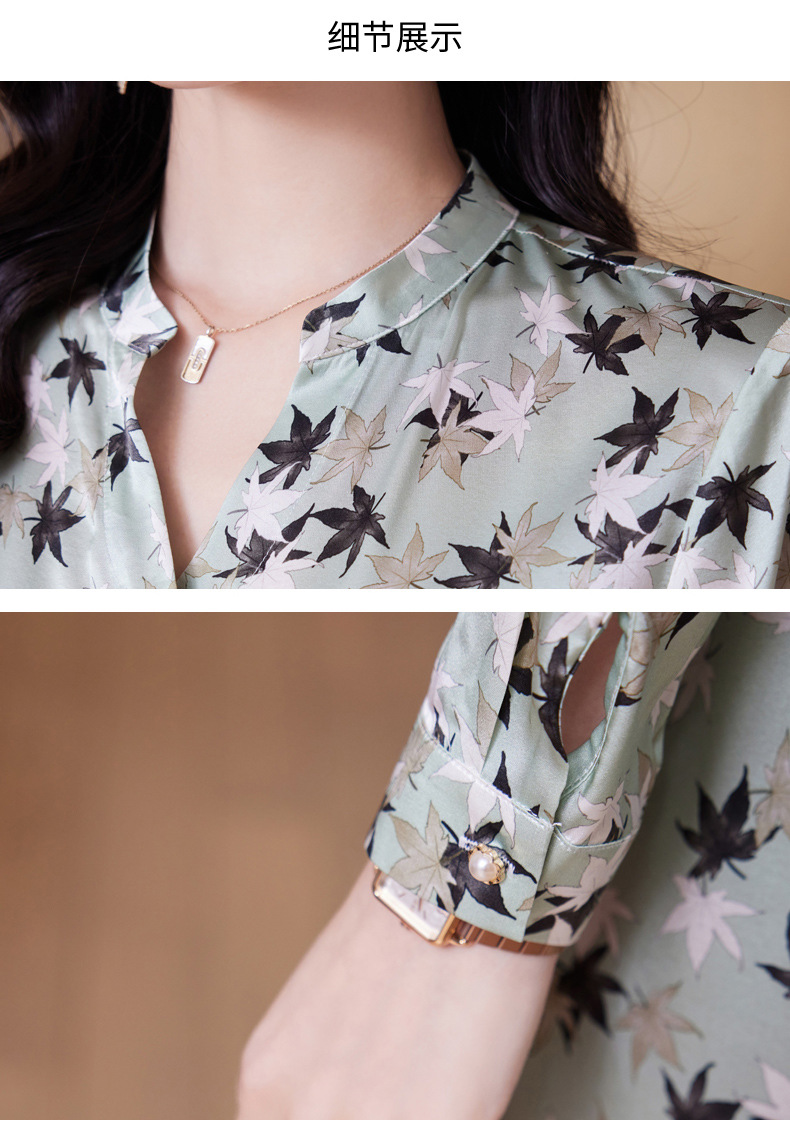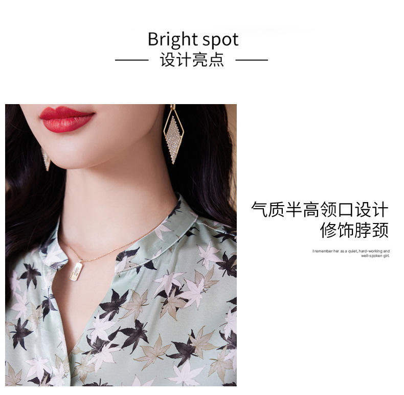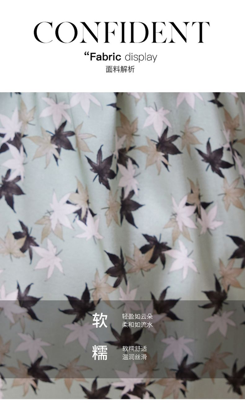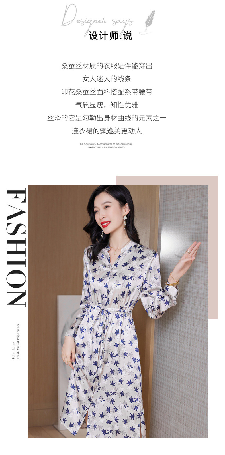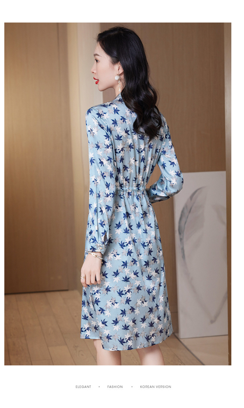 ASE-9516温柔风长袖真丝连衣裙春装女2023新款枫叶系带收腰显瘦桑蚕丝