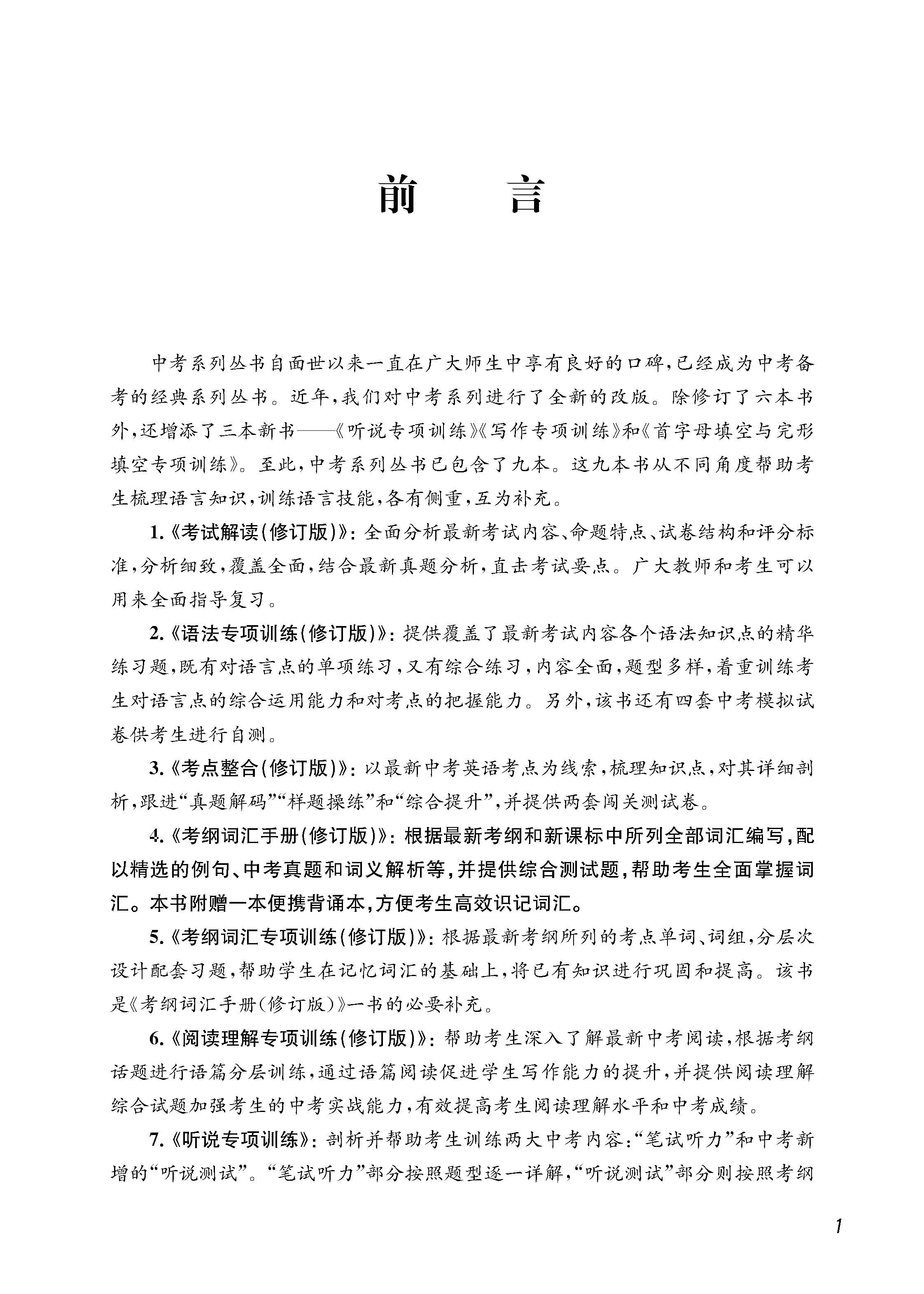 上海市初中毕业统一学业考试(中考) | 考纲词汇手册 / 听说专项训练 / 阅读理解专项训练 / 语法专项训练 / 考纲词汇专项训练 / 考试解读 / 写作专项训练 / 考点整合 / 模拟试卷A&B
