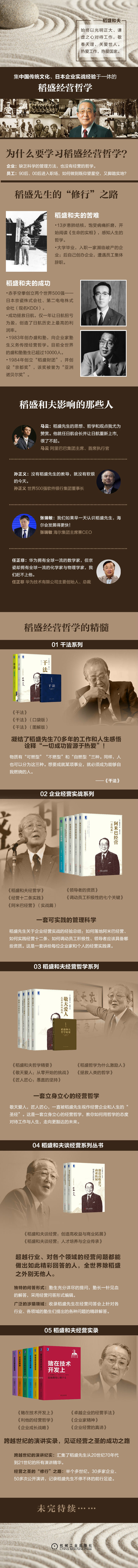 稻盛说,博览群书不如精读一书。我想,为了丰富知识,我们可以浏览群书,但作为经营者,我首先推荐精读稻盛先生的书,包括《活法》《干法》《阿米巴经营》,以及介绍实际经营案例的《稻盛和夫谈经营》。因为超越行业、能对各种经营问题做出如此精彩回答的人,全世界除稻盛之外别无他人。如果你在自己的经营或人生中有什么困惑的话,你也可以读一读这本书,相信你一定会获得有益的启迪。