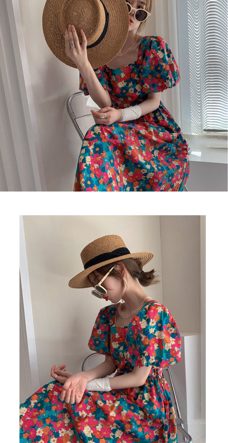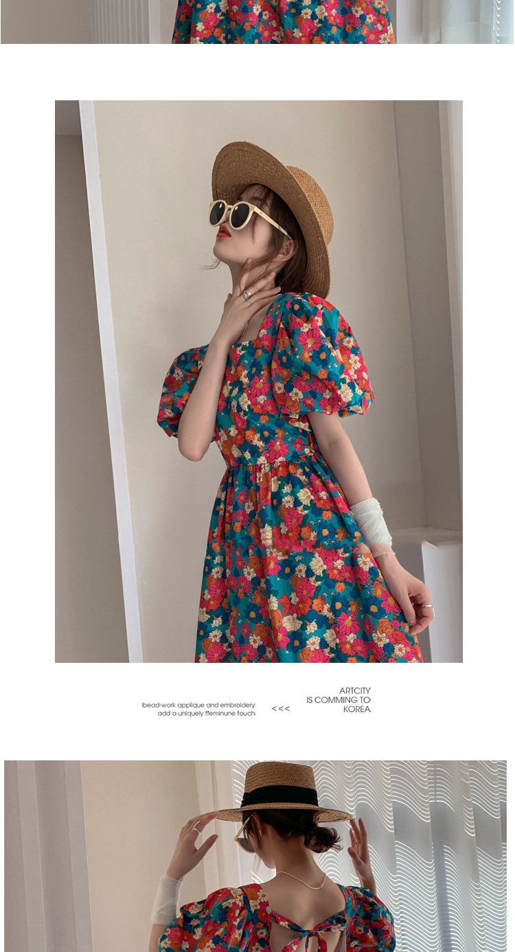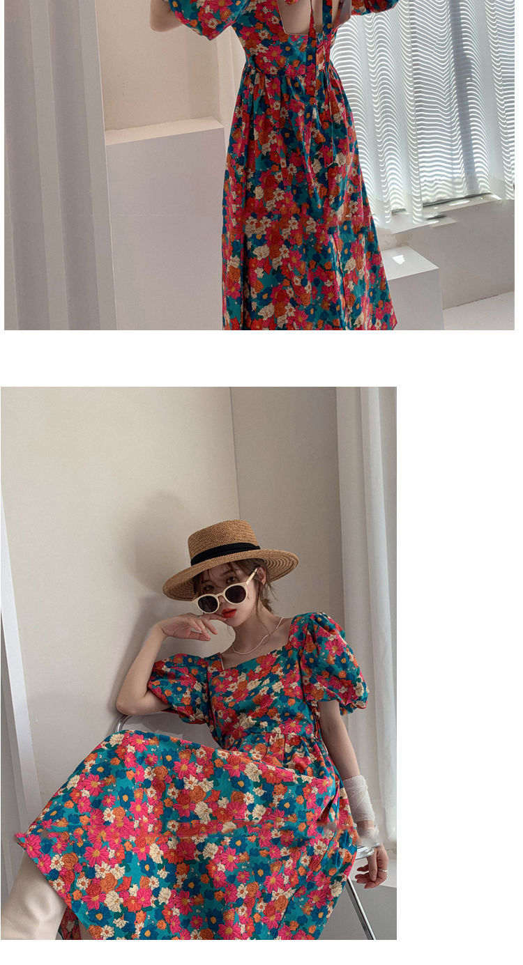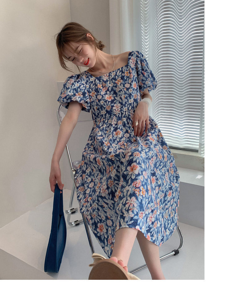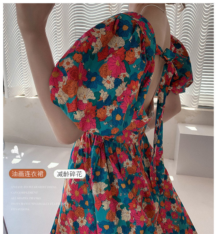 裙子女夏2022新款大码女装胖妹妹油画碎花裙子初恋复古温柔连衣裙