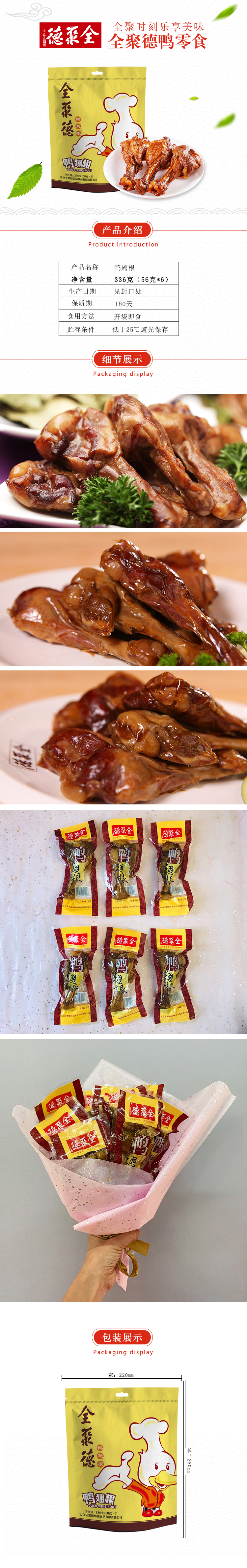 【全聚德鸭翅根】56g*6袋 独立包装 鸭肉零食 鸭翅根