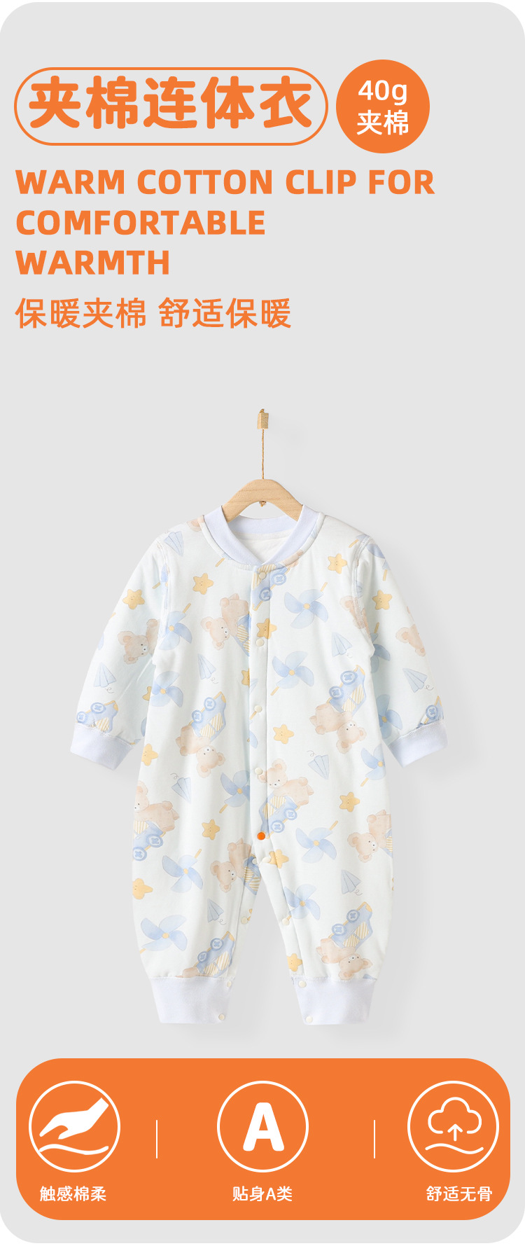 【保暖夹棉,舒适保暖】安阳婴童装婴幼儿a类连体衣 宝宝秋冬款40克无骨夹棉爬服 婴儿衣服-QQ