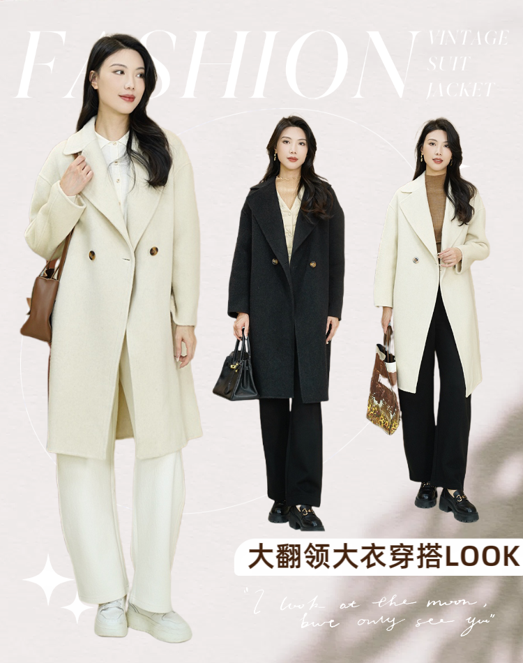 M1 臣禾 大翻领落肩袖中长款大衣 JZ244080775