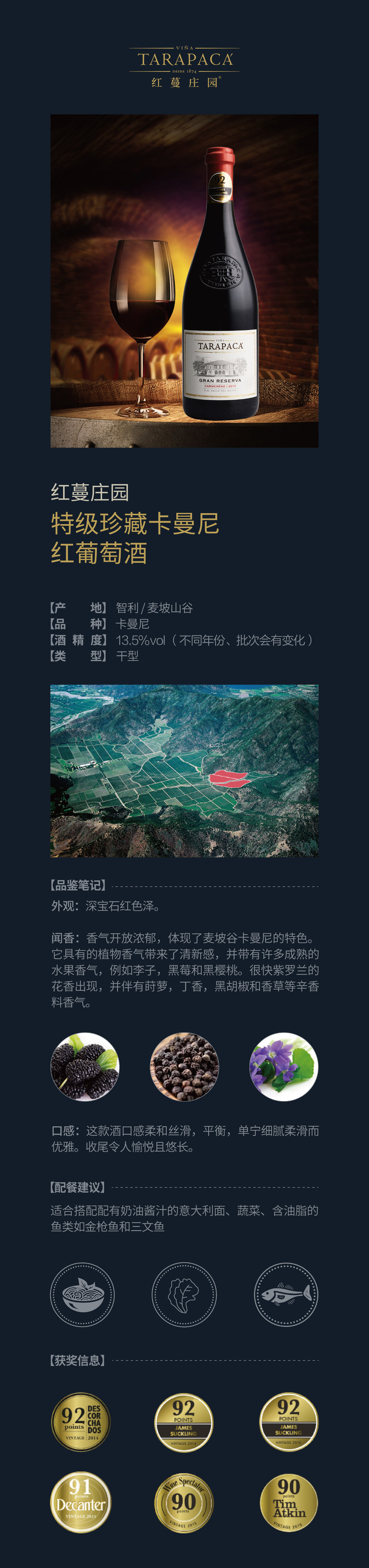 红蔓庄园特级珍藏卡曼尼红葡萄酒6瓶装750ml