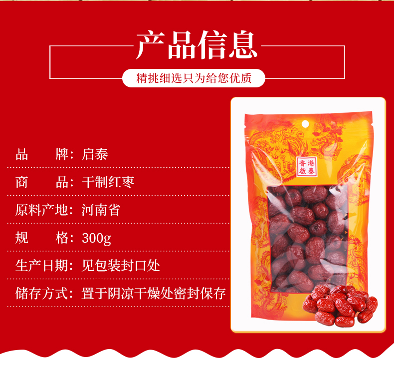 香港啟泰红枣300g免洗即食红枣 果干零食 干货 红枣干煮粥煲汤泡水食材 红枣枸杞桂圆茶 红枣