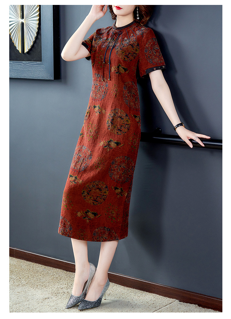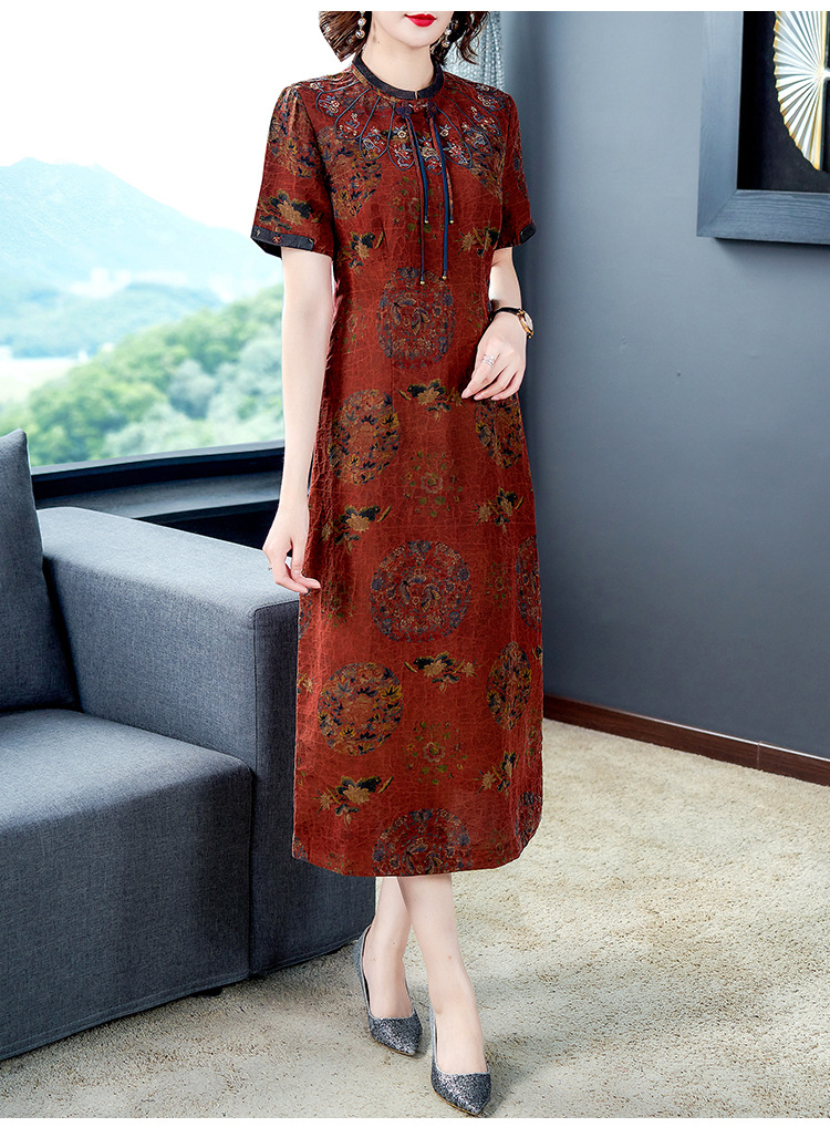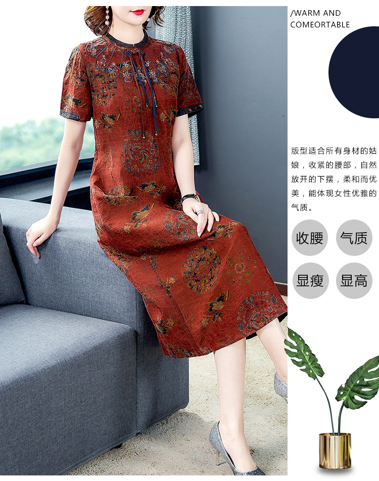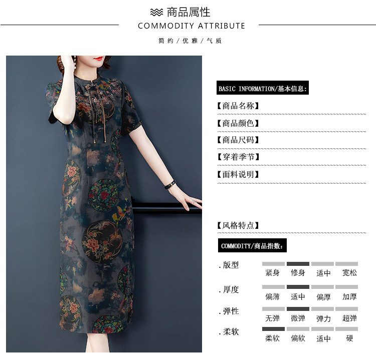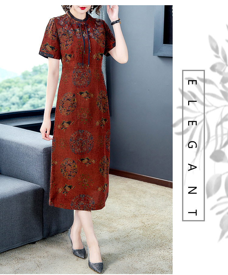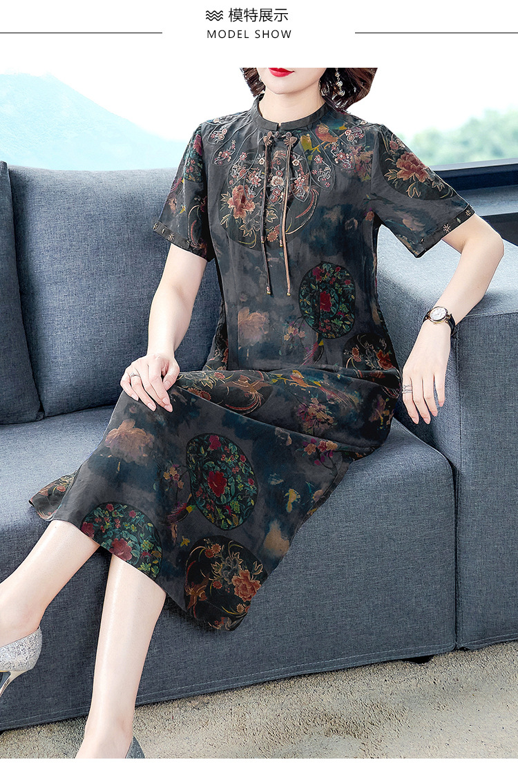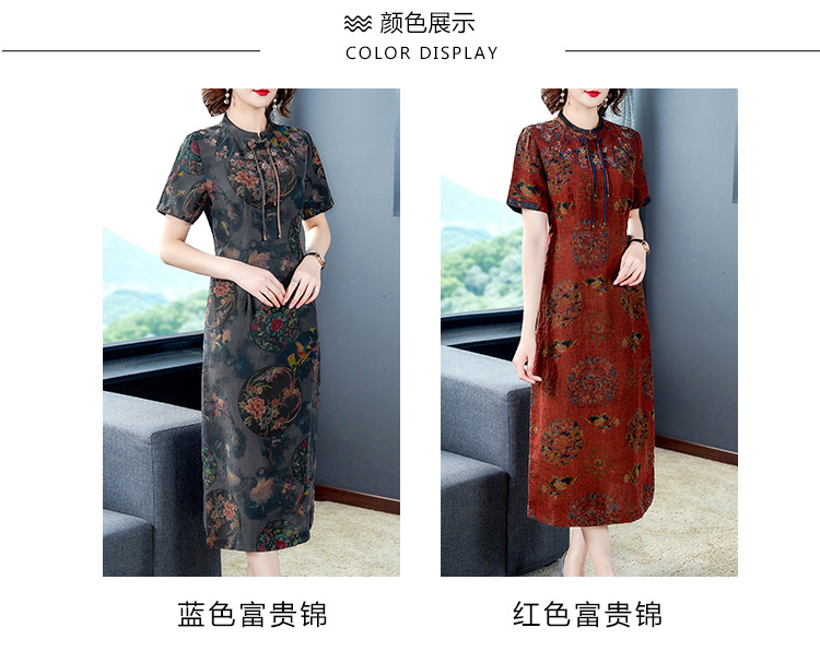 AHM-nry7205仿真丝旗袍新款时尚气质优雅大码妈妈装