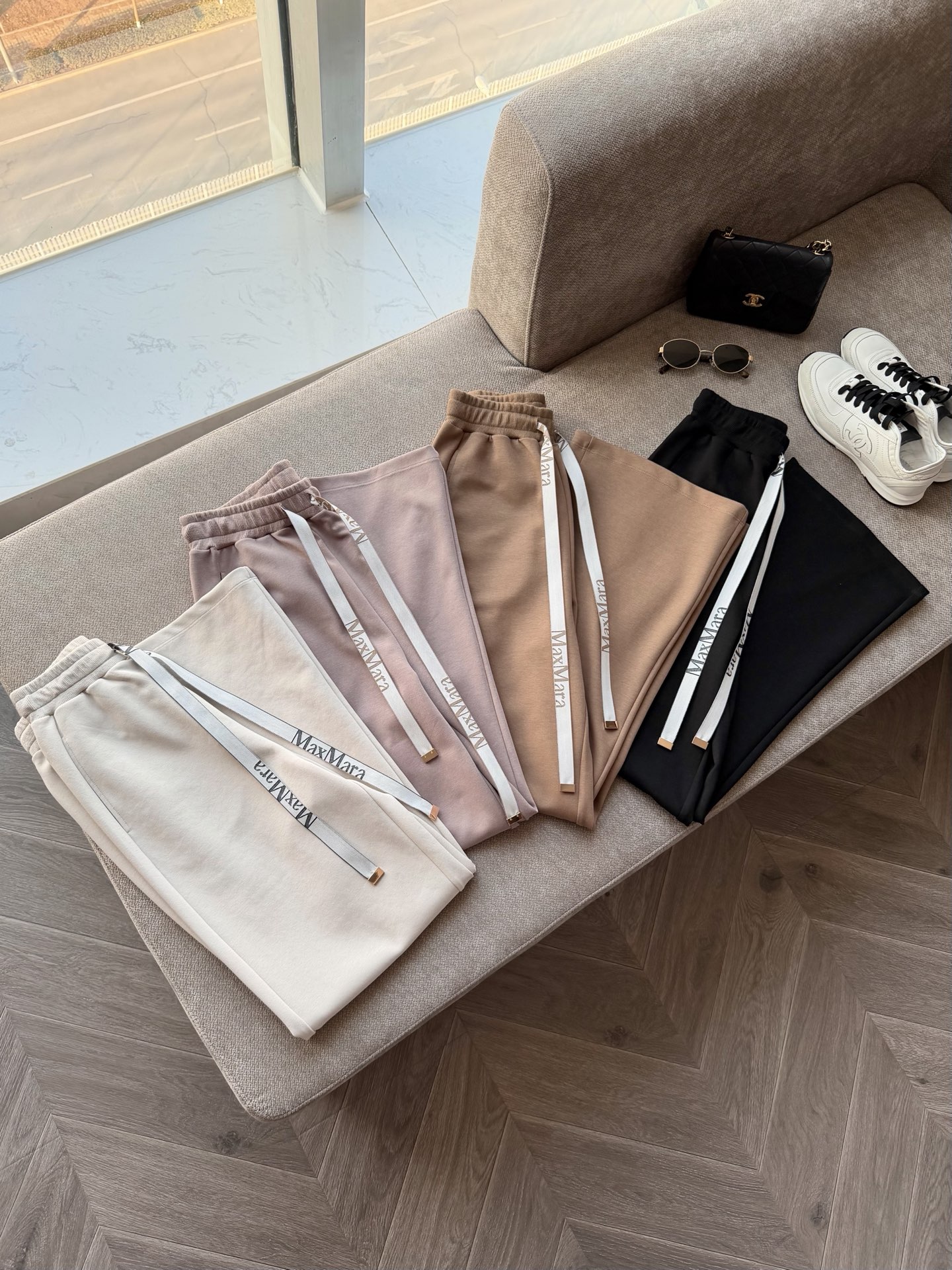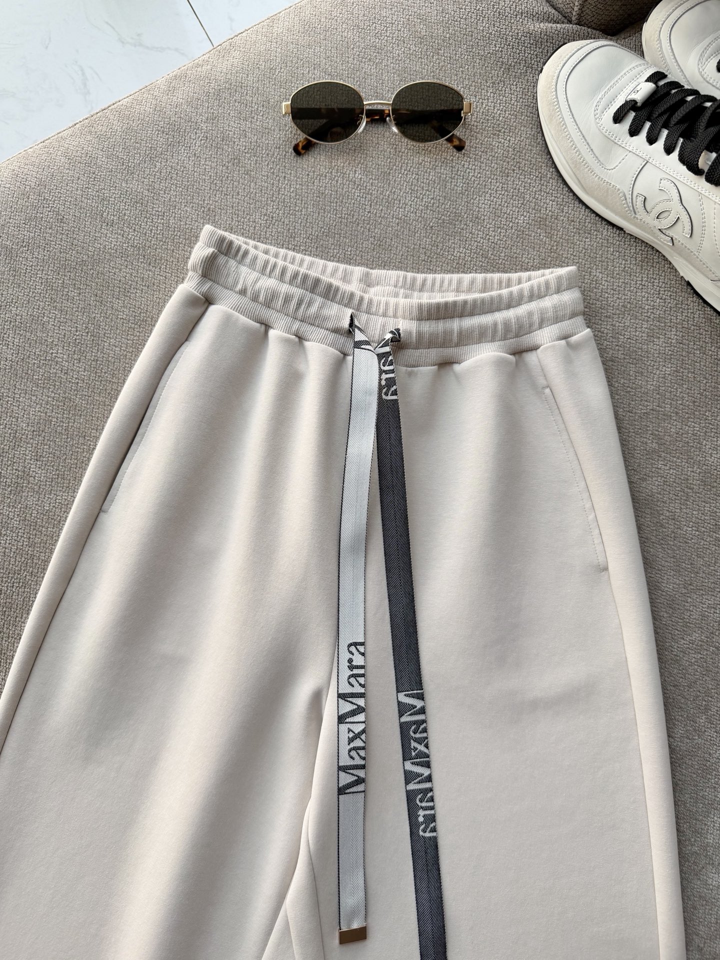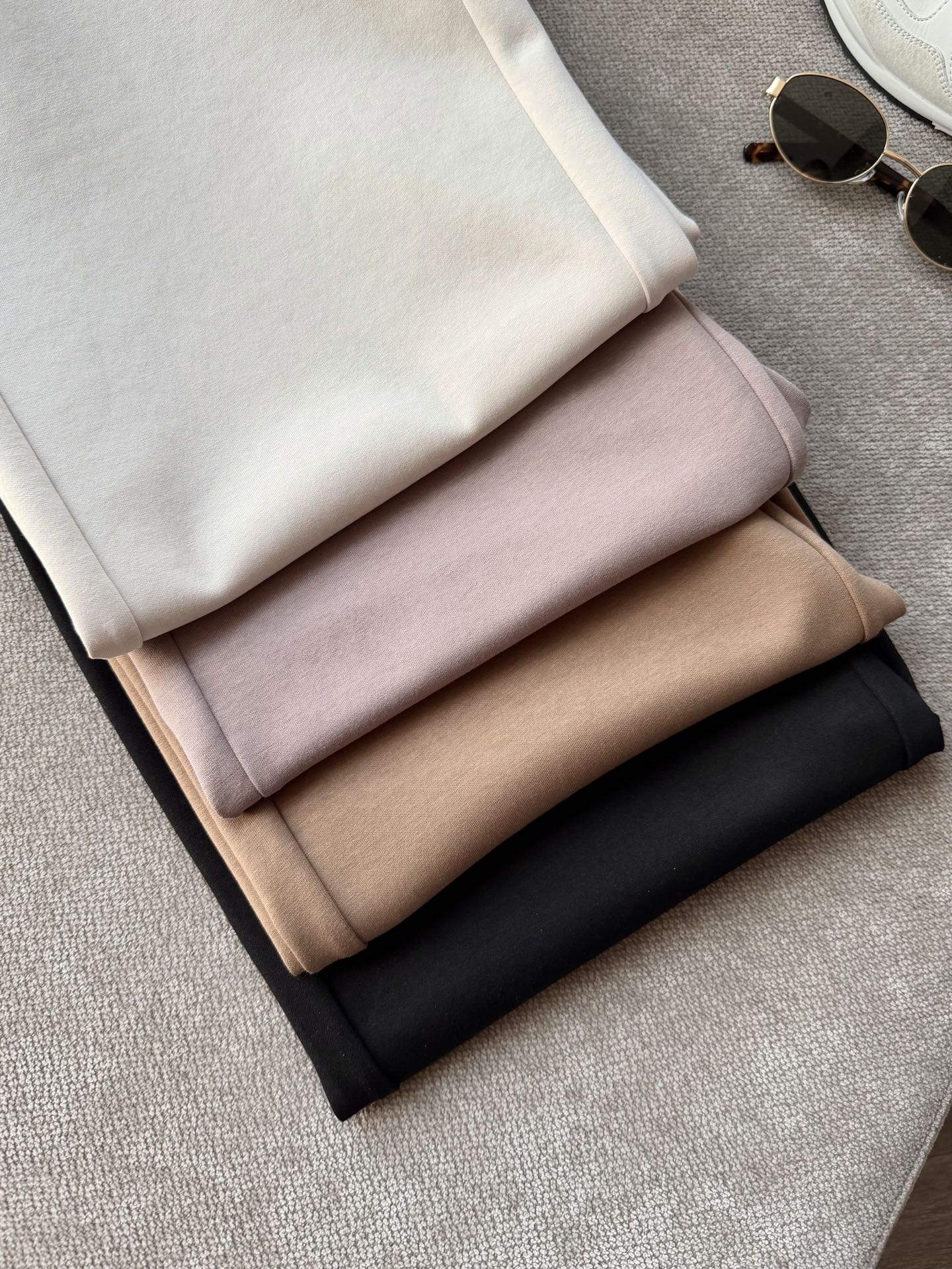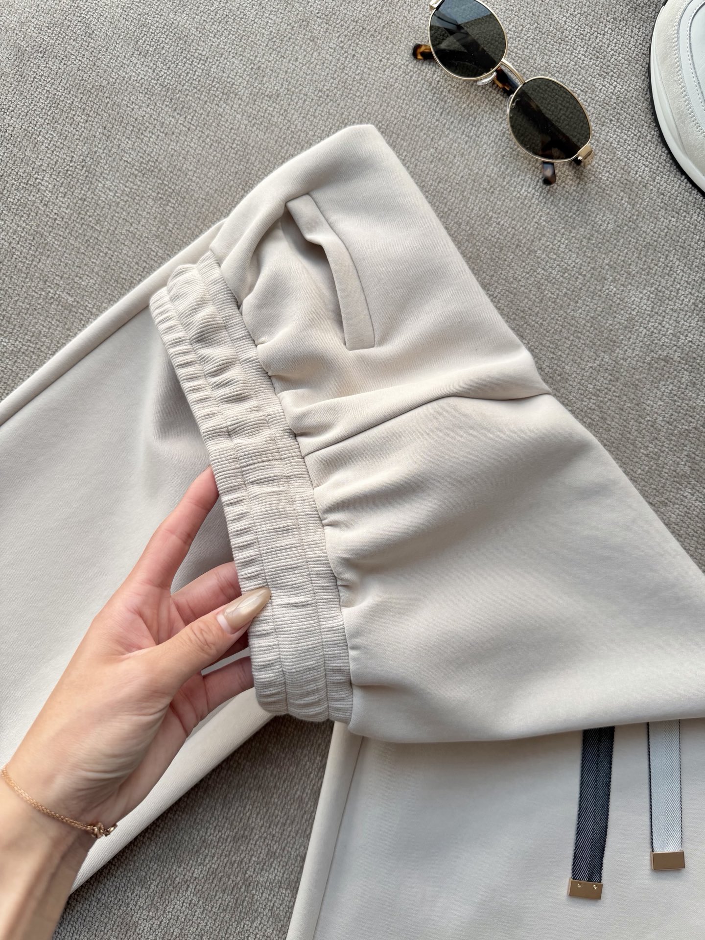 现在季节搭配休闲鞋➕T恤或者卫衣,都能轻松拿捏,即使白色也不会显胖说的就是这个面料和裤型,